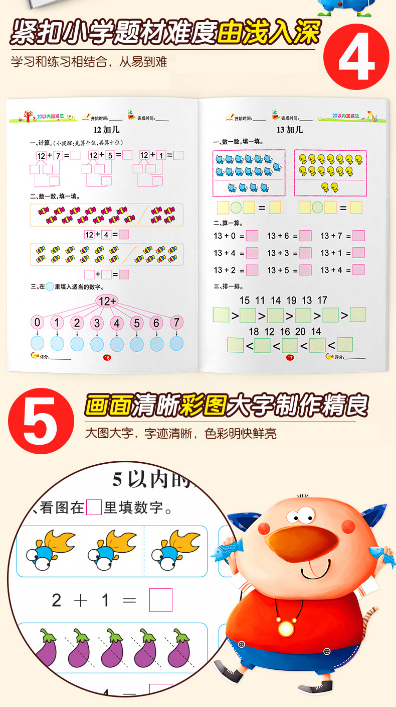 멍청한 곰 취학 전 수학 추가 및 뺄셈 운동 책 5-100 이내