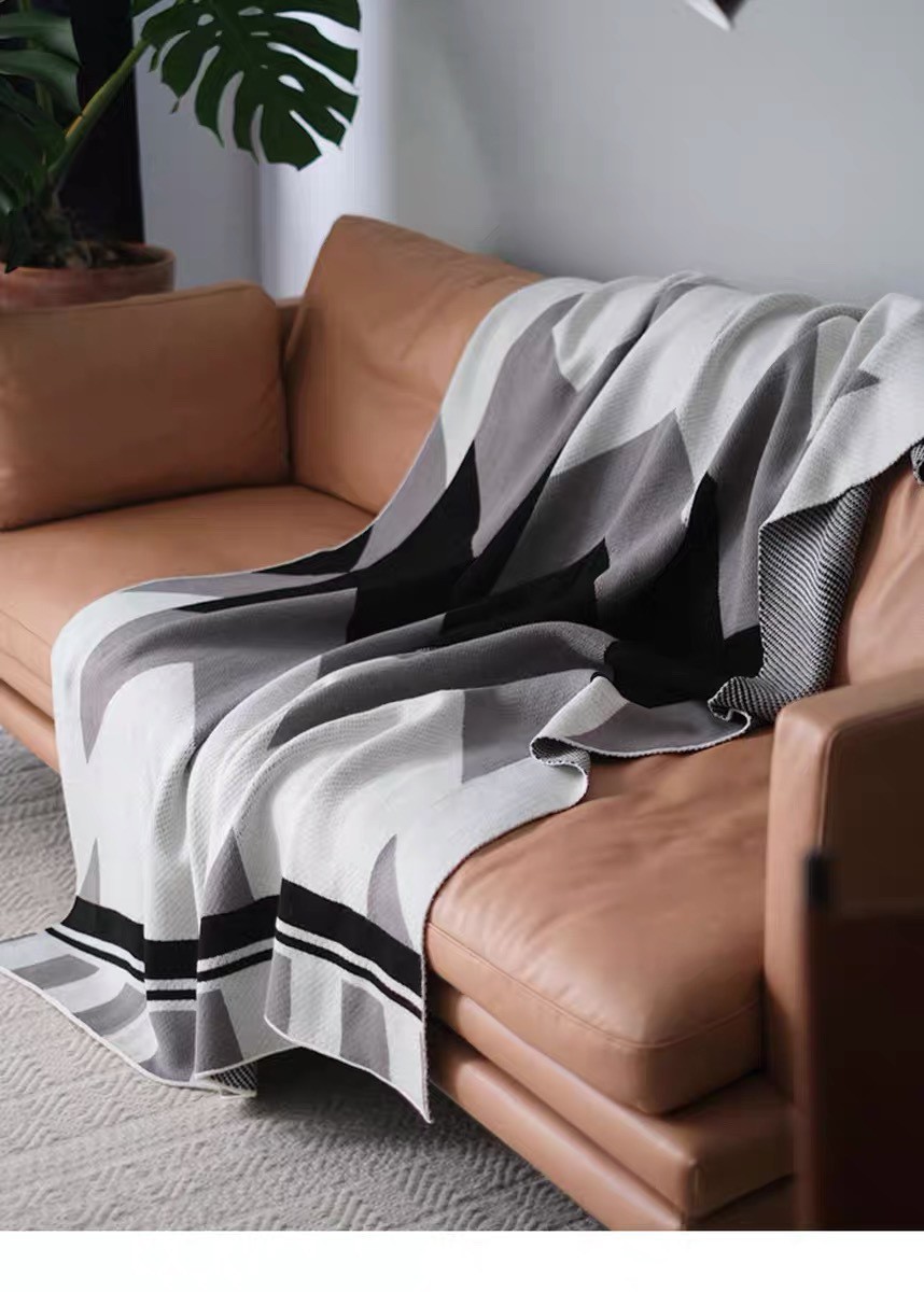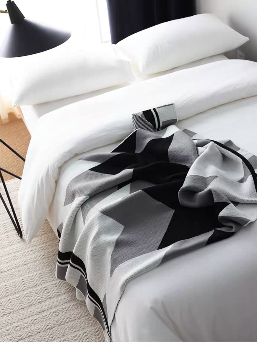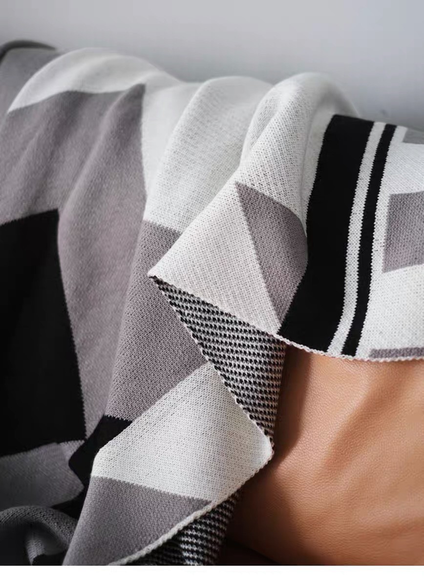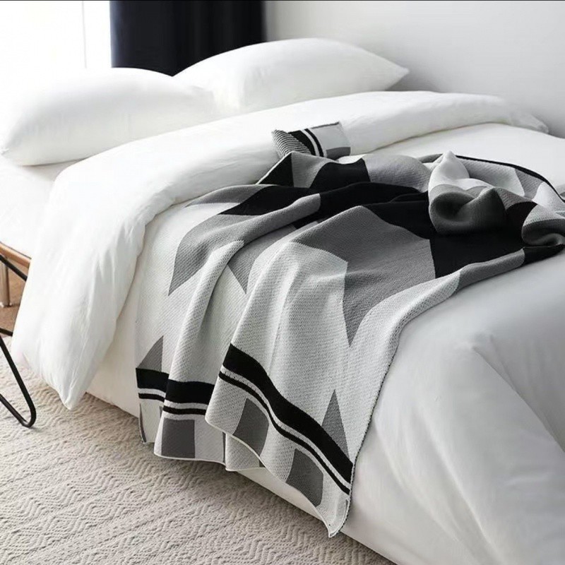 북유럽 심플 스타일 기하학적 흑백 회색 니트 울 소파 캐주얼 장식 커버 담요 에어컨 담요 낮잠 두꺼운 담요