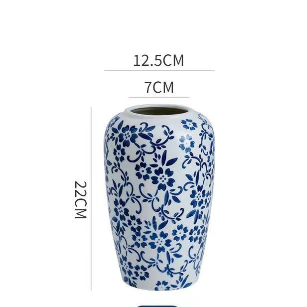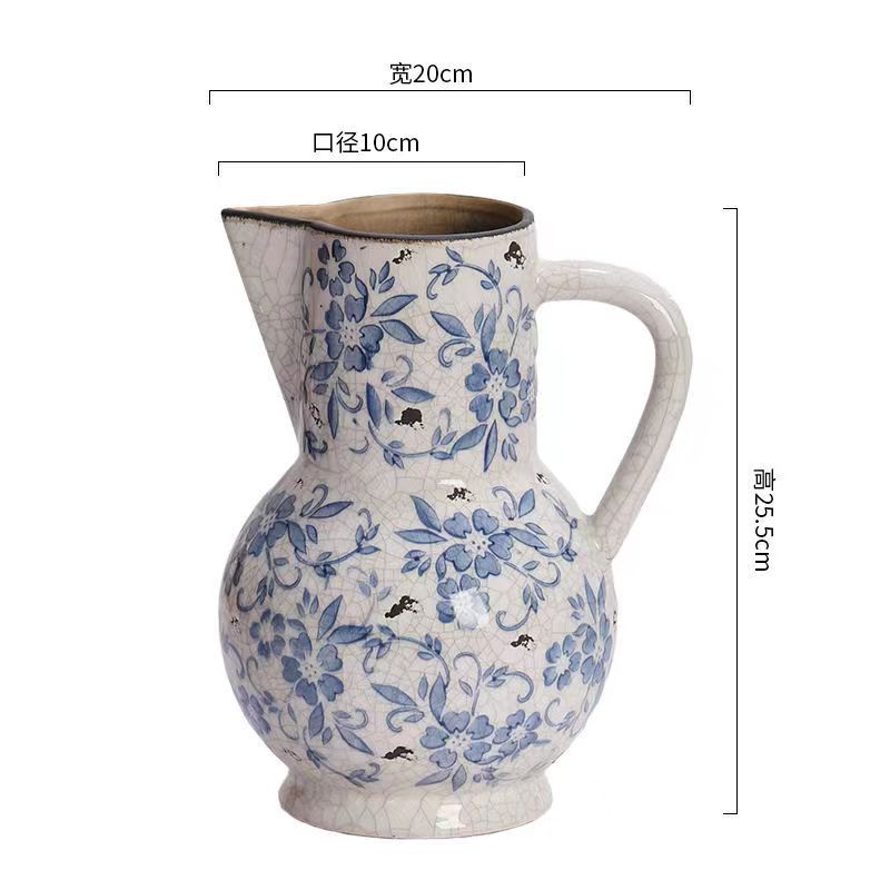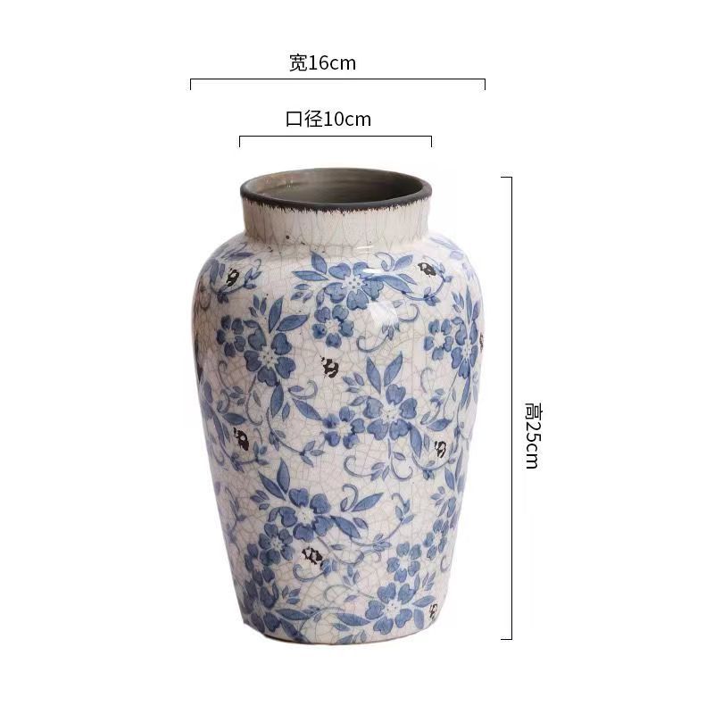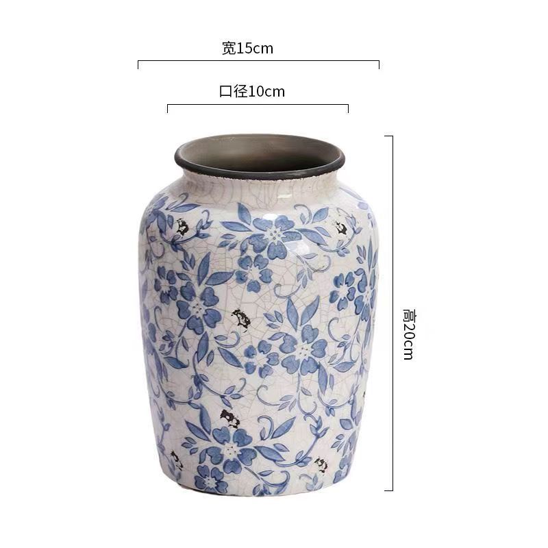 빈티지 얼음 균열 파란색과 흰색 도자기 꽃병 미국 세라믹 홈 장식 꽃병스토어 가기