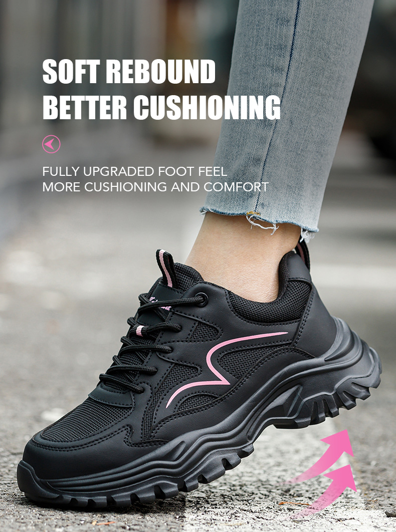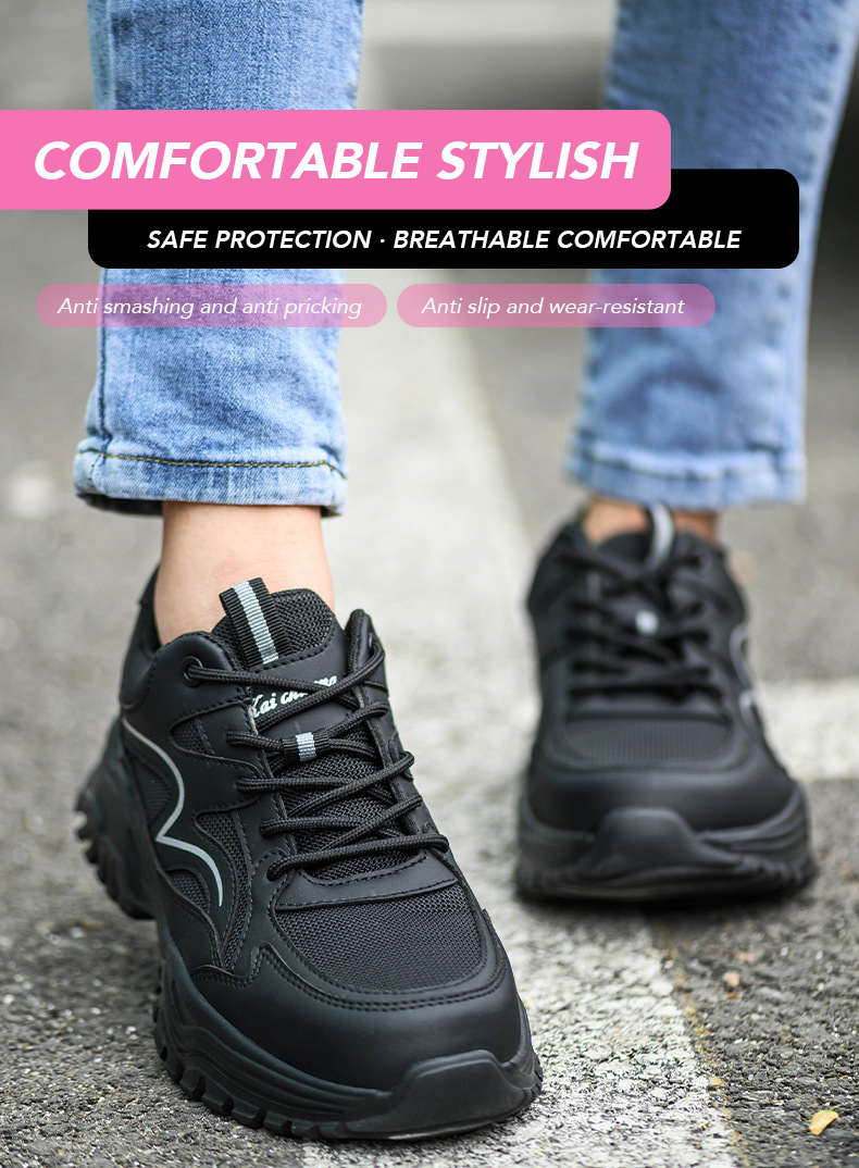 국경 간 여성의 새로운 미끄럼 방지 노동 보호 신발 플라이 짠 통기성 안티 스매싱 안티 스매싱 웨어 내마모성 작업 신발스토어 가기