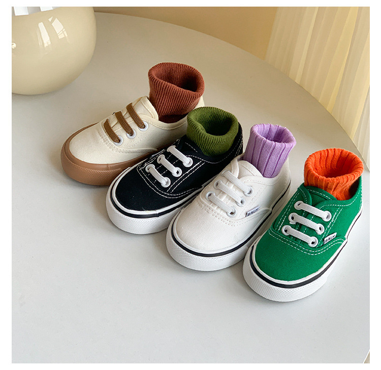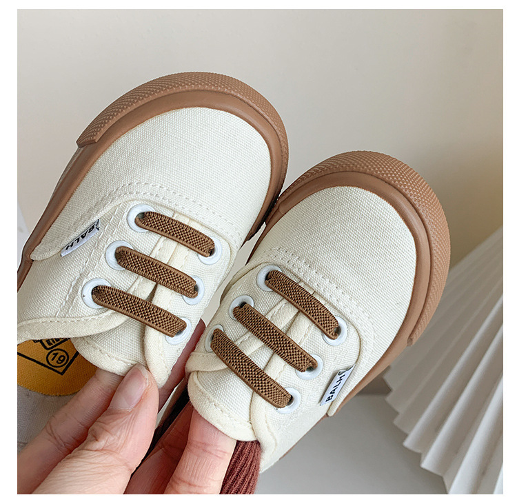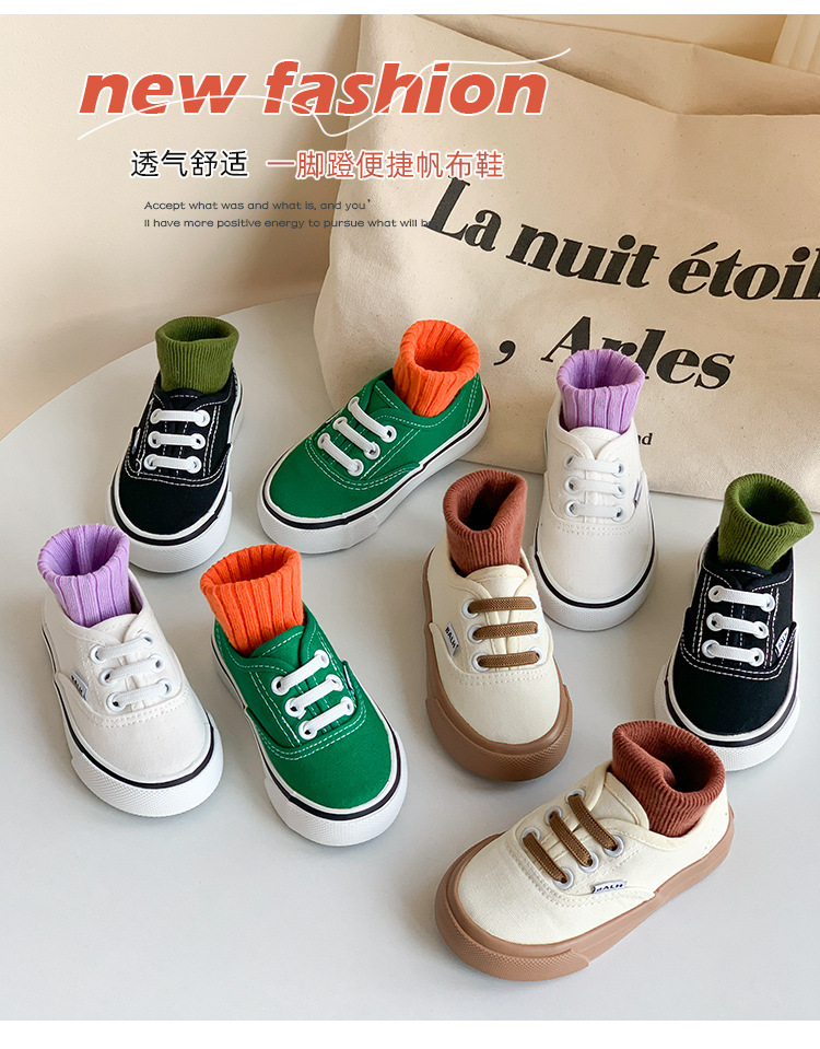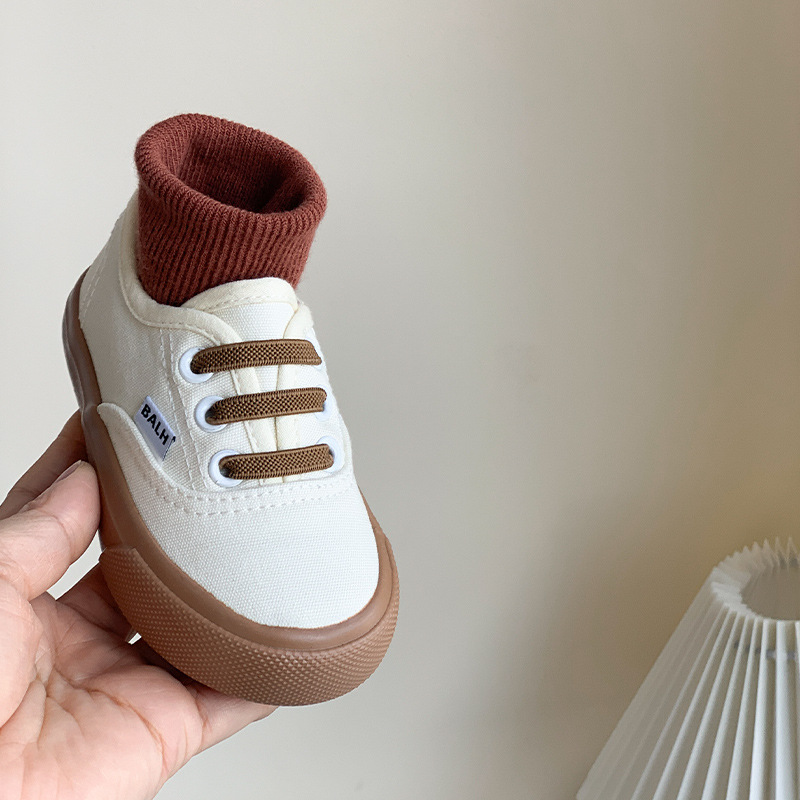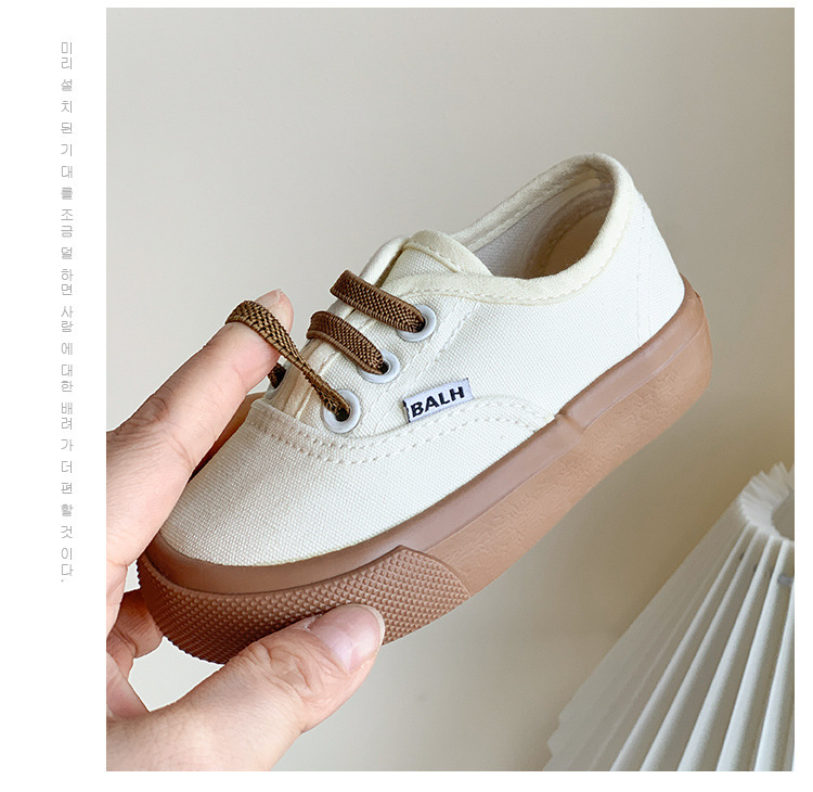 한국식 아기 캔버스 신발 봄과 가을 새로운 어린이 슬립 온 캐주얼 신발 소년 소녀 보드 신발 유치원 흰색 신발스토어 가기