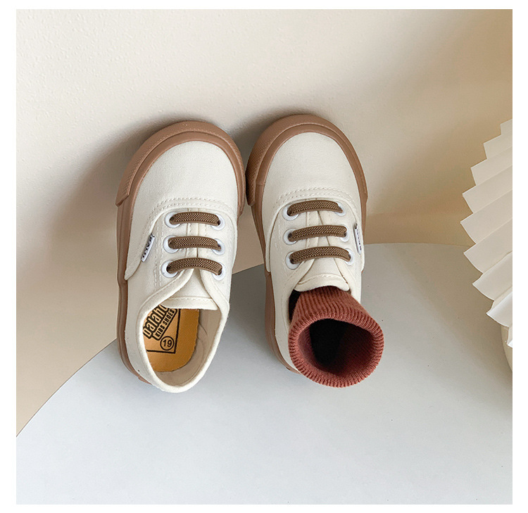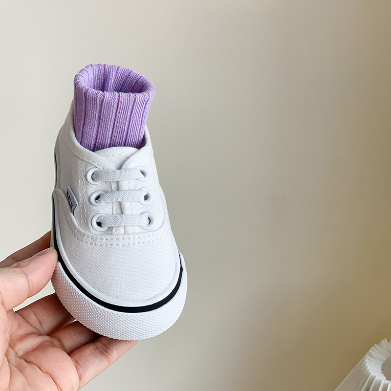 한국식 아기 캔버스 신발 봄과 가을 새로운 어린이 슬립 온 캐주얼 신발 소년 소녀 보드 신발 유치원 흰색 신발