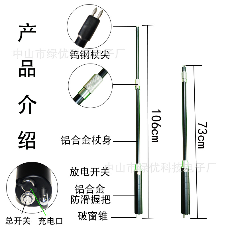 야외 여행 트레킹 스틱, 전기 충격 알루미늄 합금 트레킹 스틱, 확장 가능한 스틱, 도매 경량
