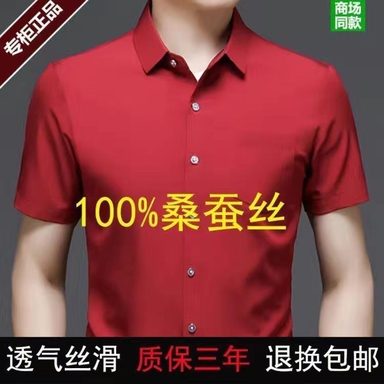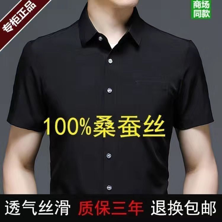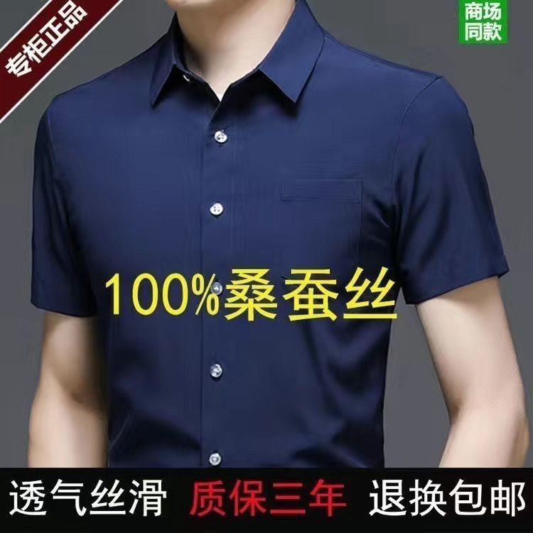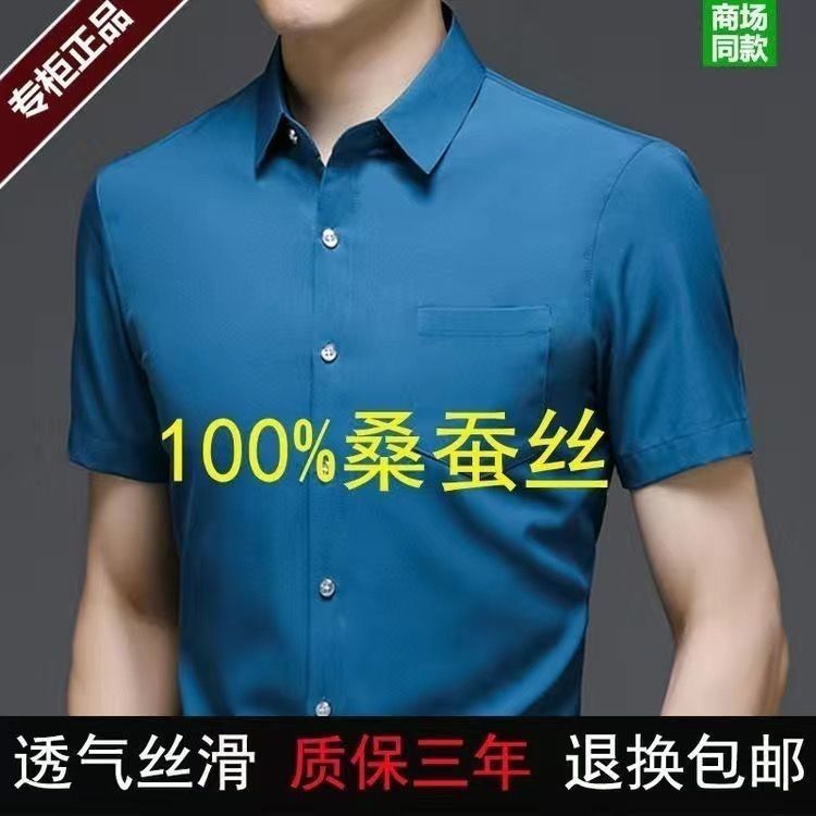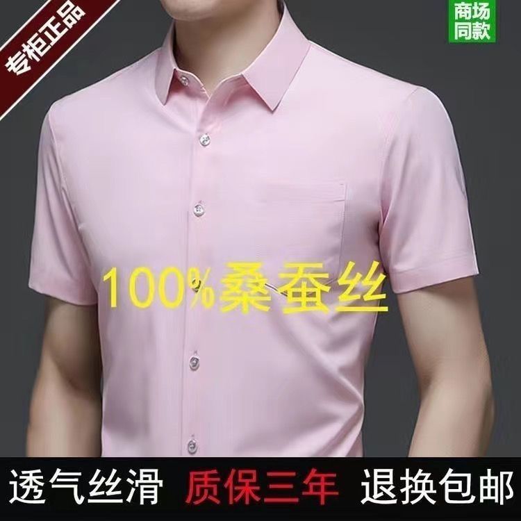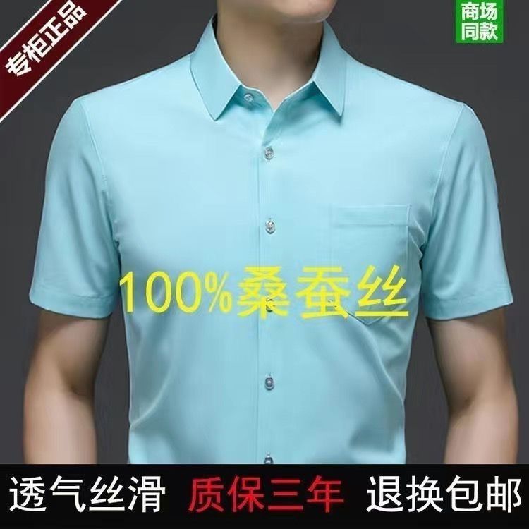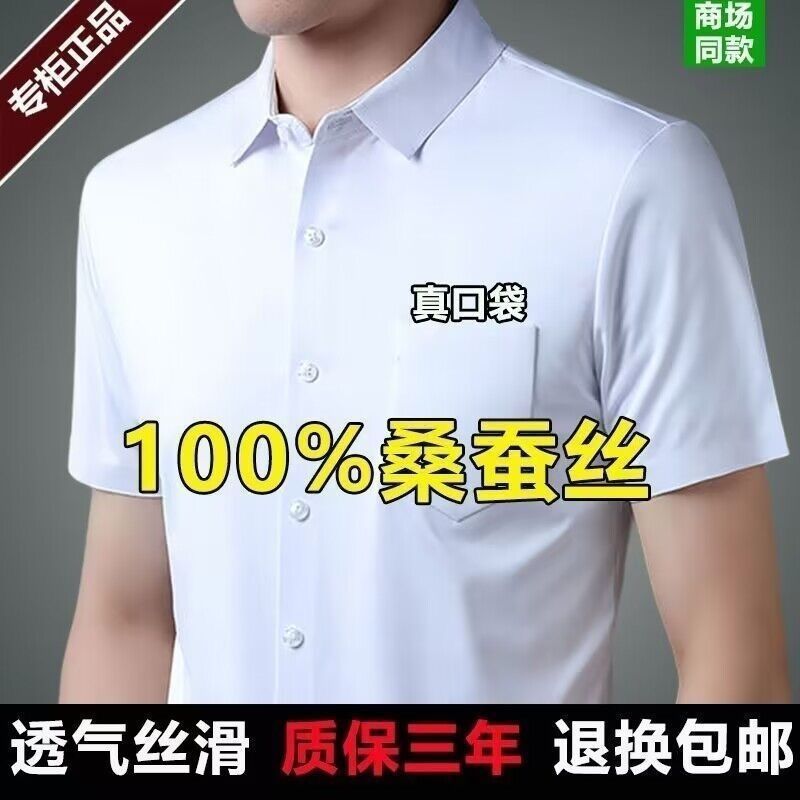 깨진 크기 특별 제공 남성용 반팔 셔츠 하이 엔드 뽕나무 실크 단색 캐주얼 의류 비 다림질 질감 셔츠 화이트 리 가오스토어 가기