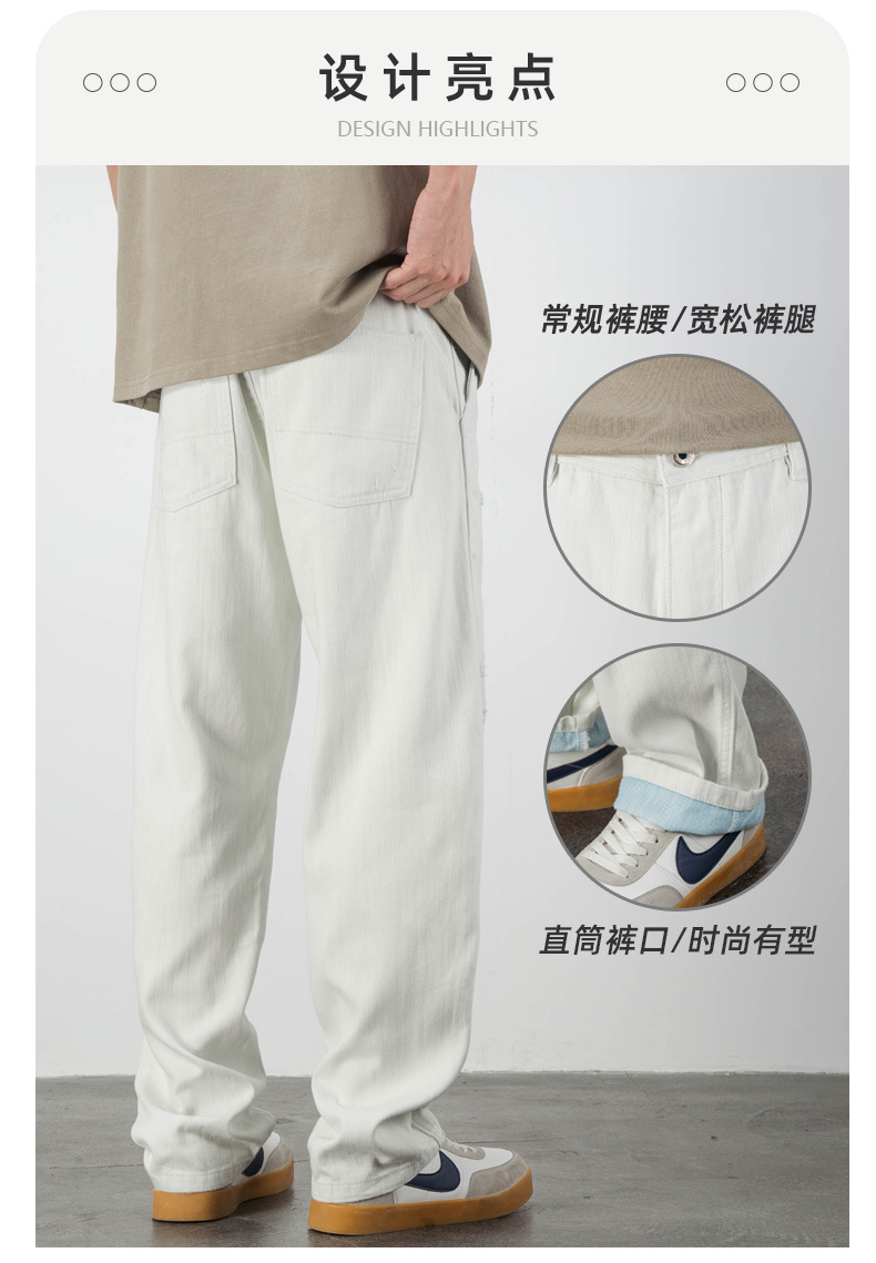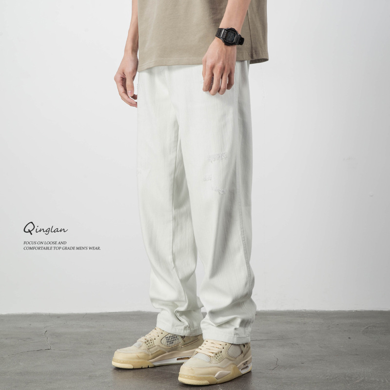 화이트 청바지 남자 와이드 레그 Dagging 유행 캐주얼 올 매치 바지 남자 스트레이트 루즈 하이 엔드 스프링 얇은 바지스토어 가기