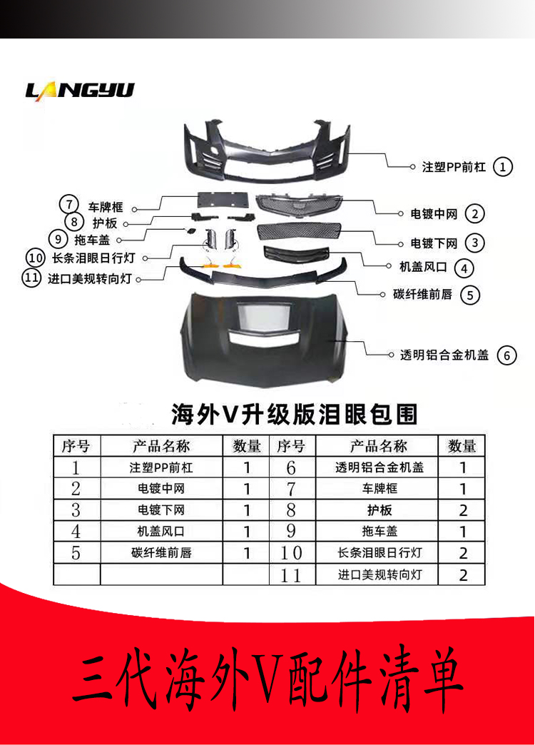 • 3세대 V+탄소섬유 프론트 립+알루미늄 합금 오픈 머신 커버, 화물 착불