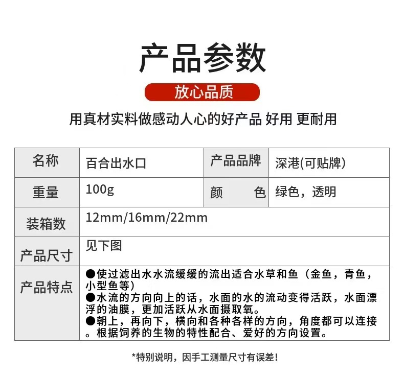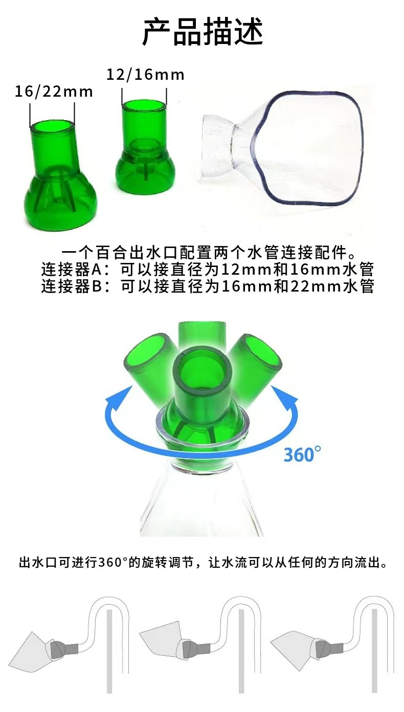경적 출구 백합 입 자연 흐름 출구 12/16mm 인터페이스 수족관 물고기 탱크 필터 액세서리스토어 가기