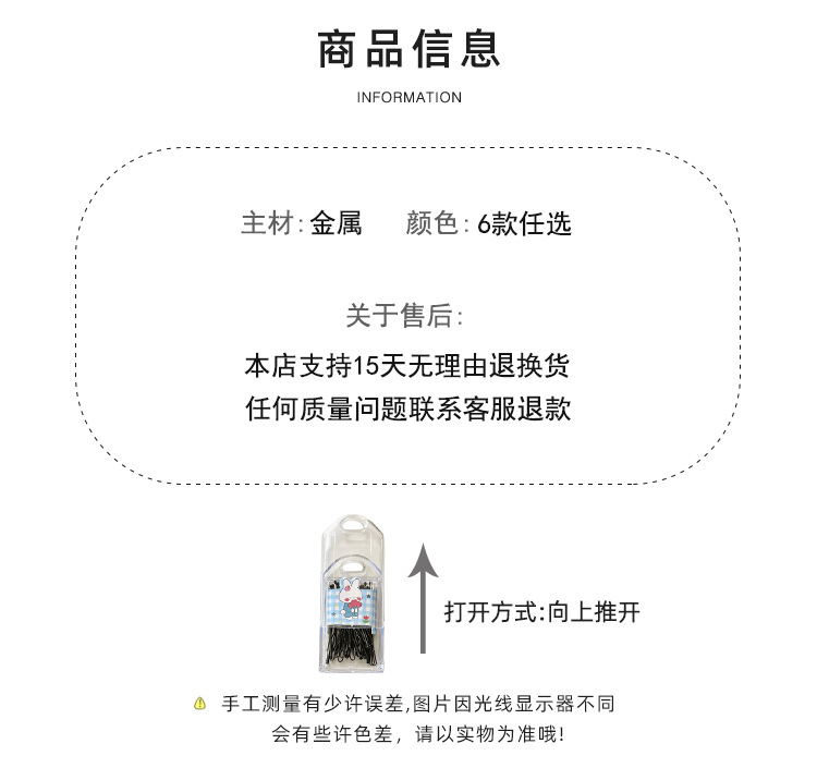 블랙 U 자형 클립 헤어 클립 핀 두꺼운 헤어핀 볼 헤드 고정 U 자형 클립 합금 사이드 클립 헤드스토어 가기