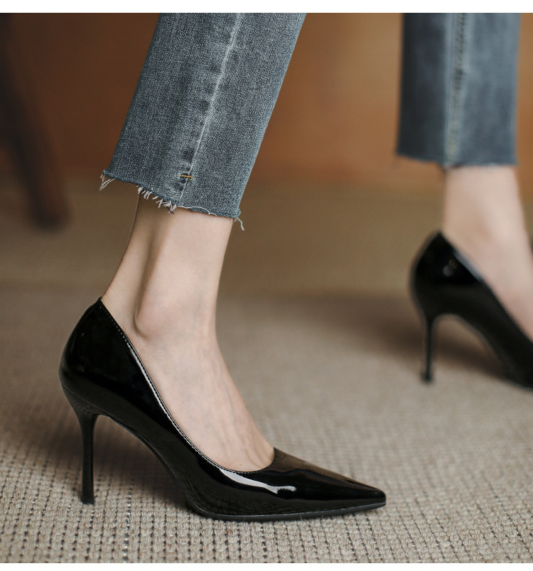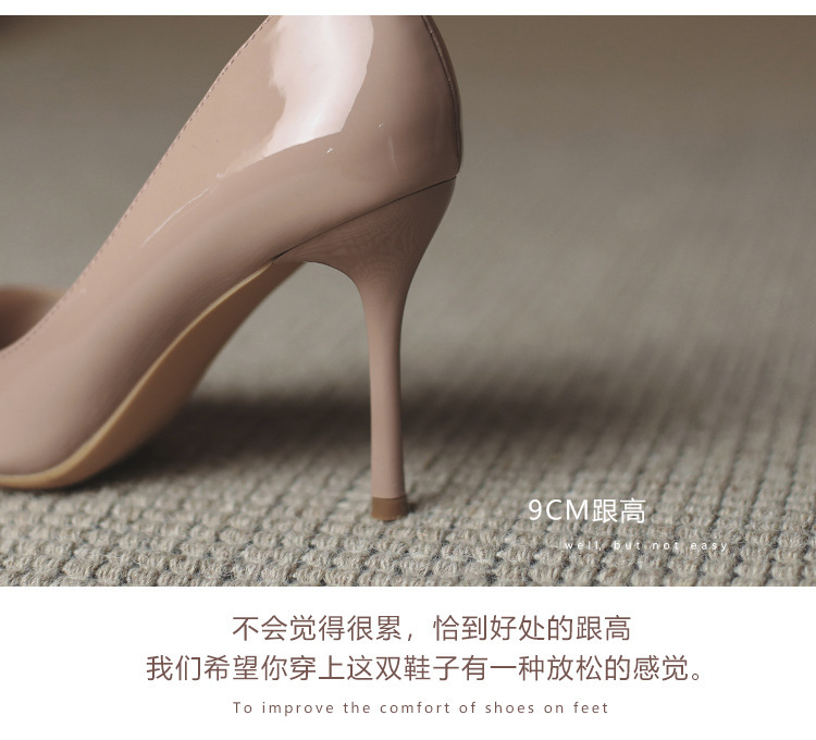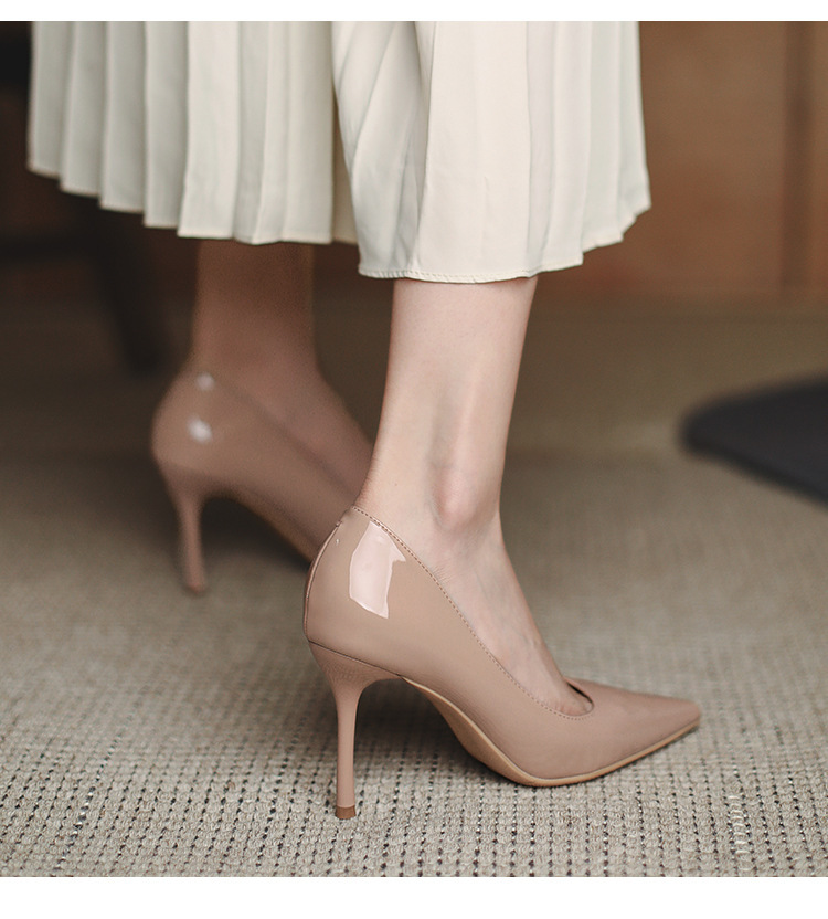누드 하이힐 스틸레토 힐 2024 새로운 봄과 가을 프랑스 뾰족한 발가락 얕은 입 에티켓 여성용 전문 기질 단층 신발스토어 가기