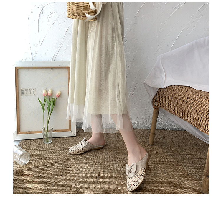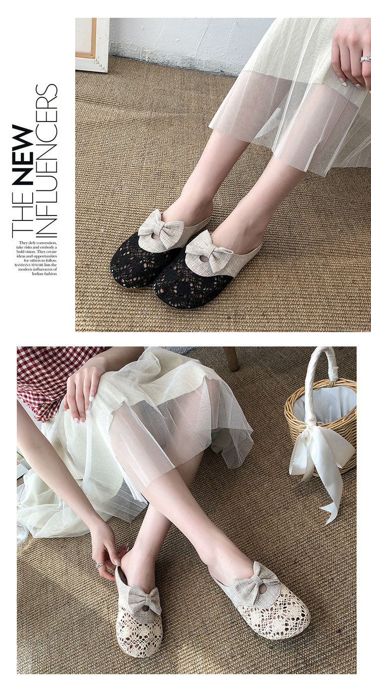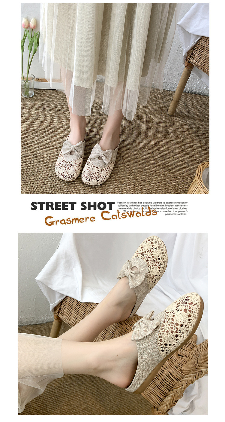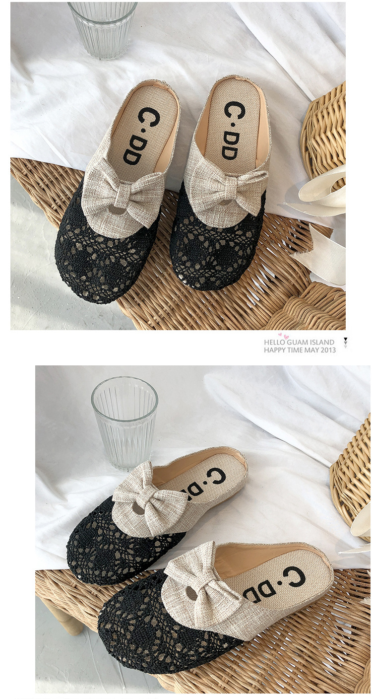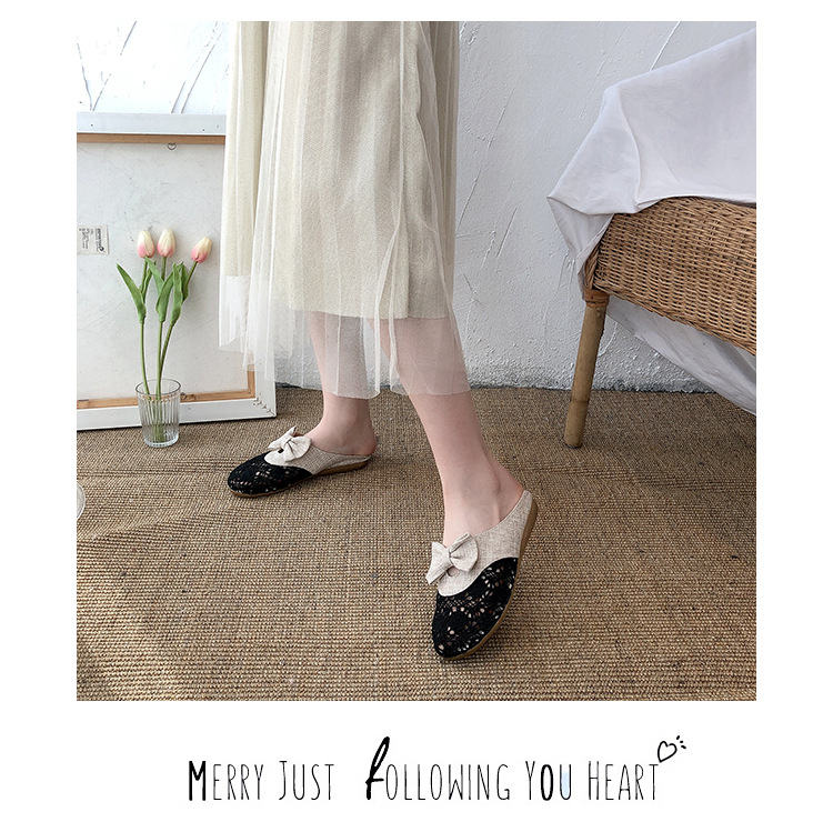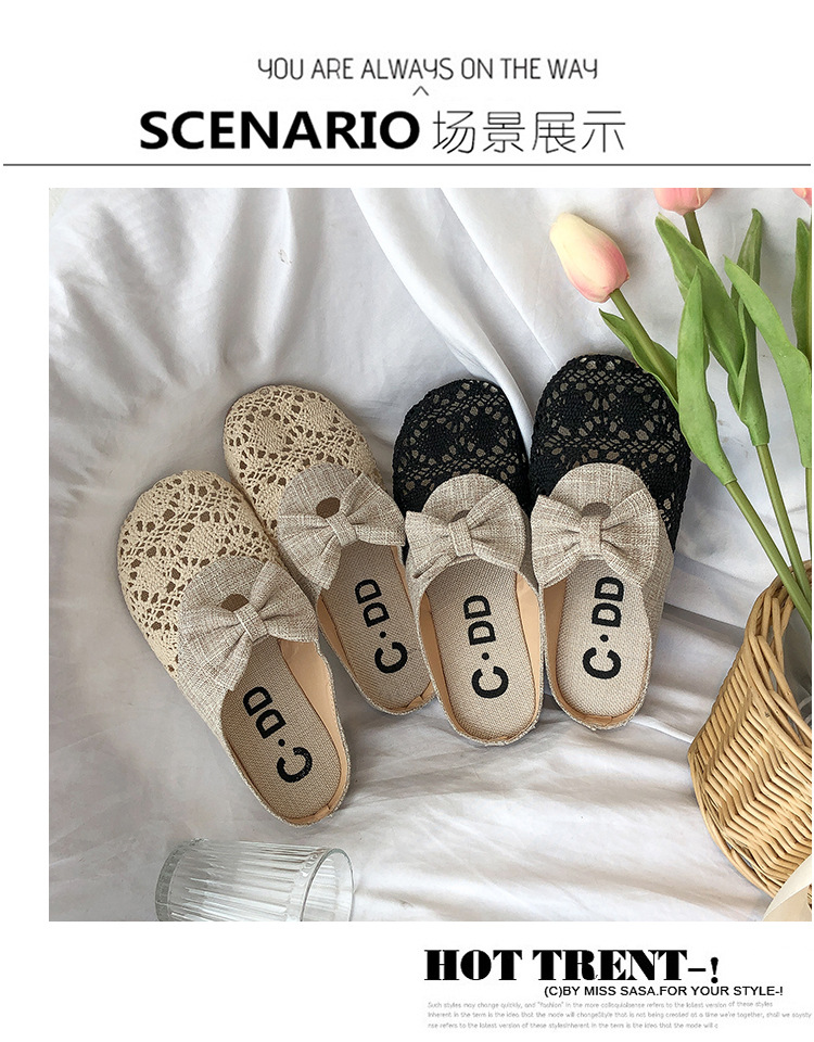 새로운 스타일 활 린넨 통기성 발가락 반 슬리퍼 천 슬리퍼 여성 홈 게으른 신발 실내 및 실외 착용 샌들