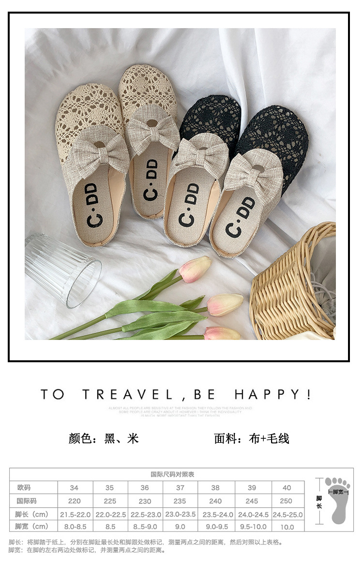 새로운 스타일 활 린넨 통기성 발가락 반 슬리퍼 천 슬리퍼 여성 홈 게으른 신발 실내 및 실외 착용 샌들스토어 가기