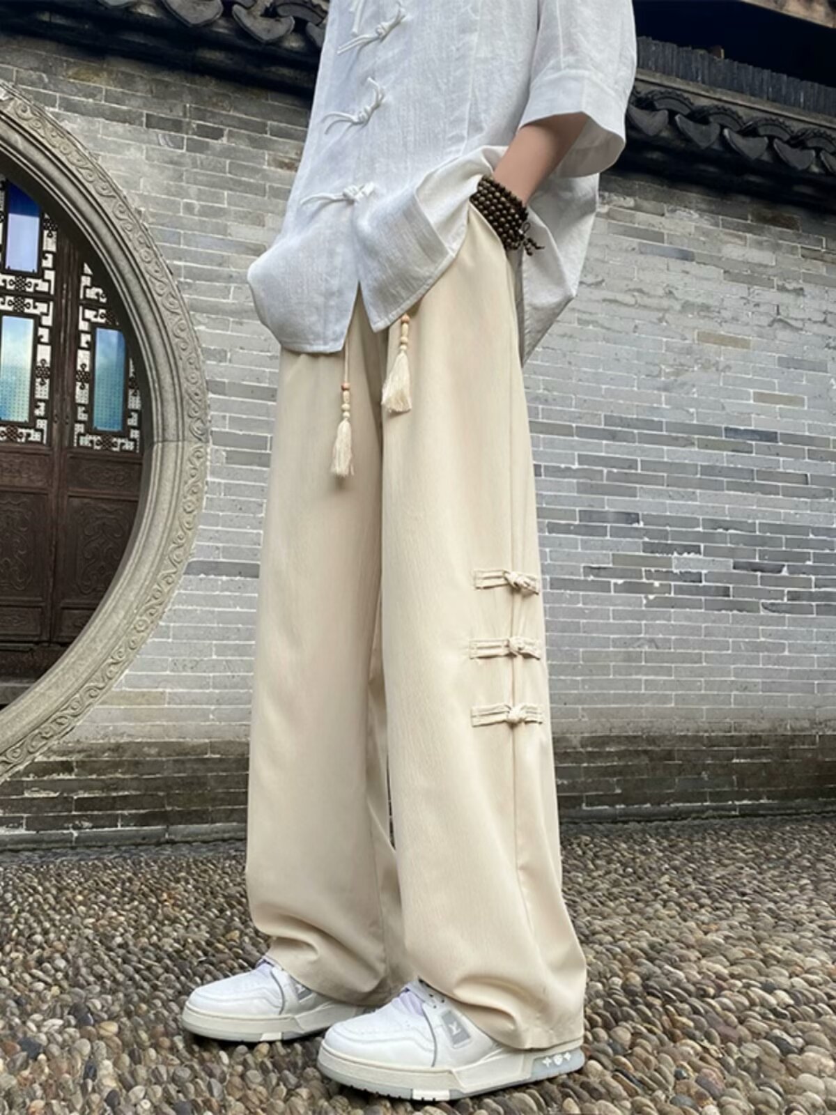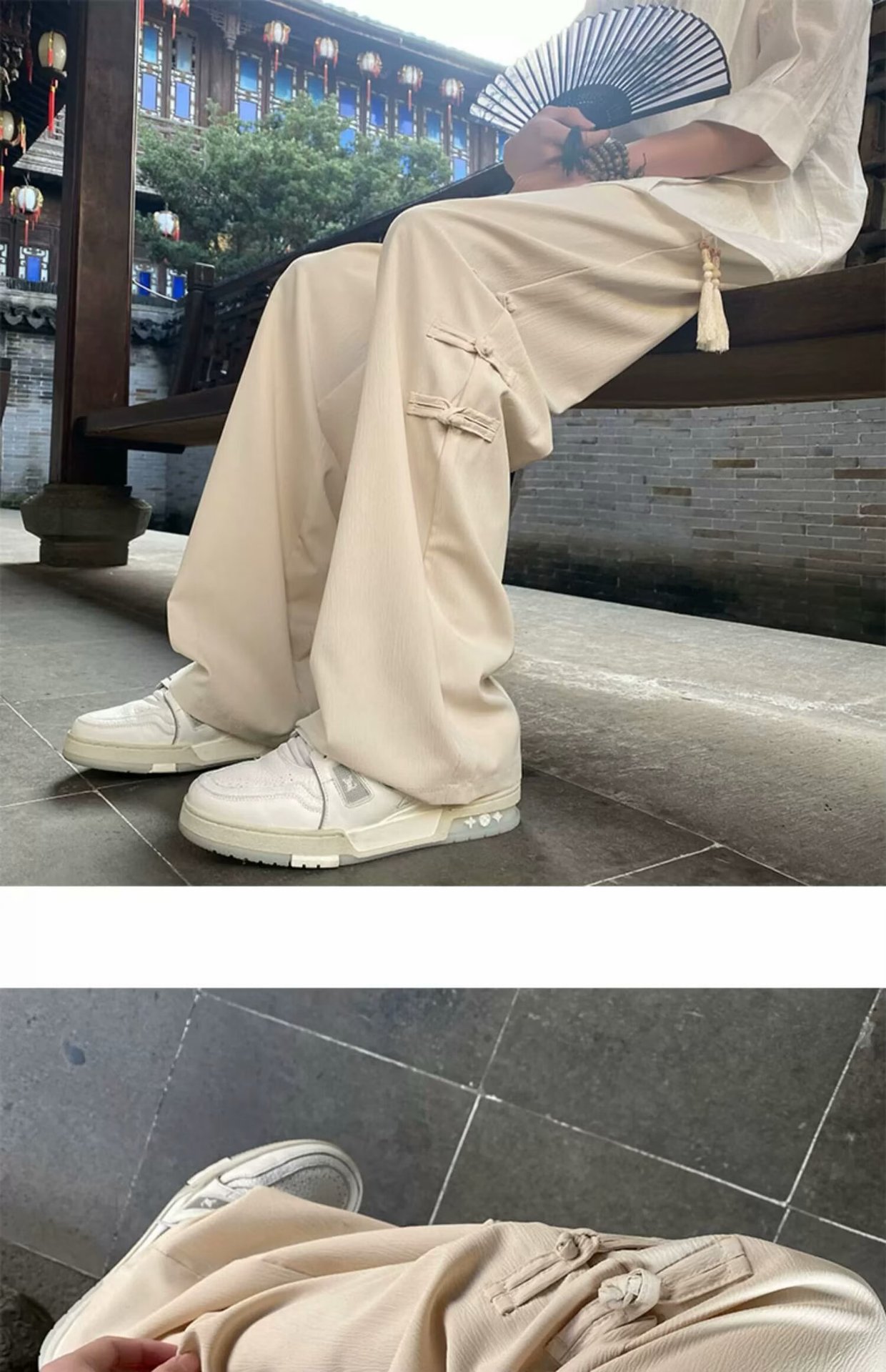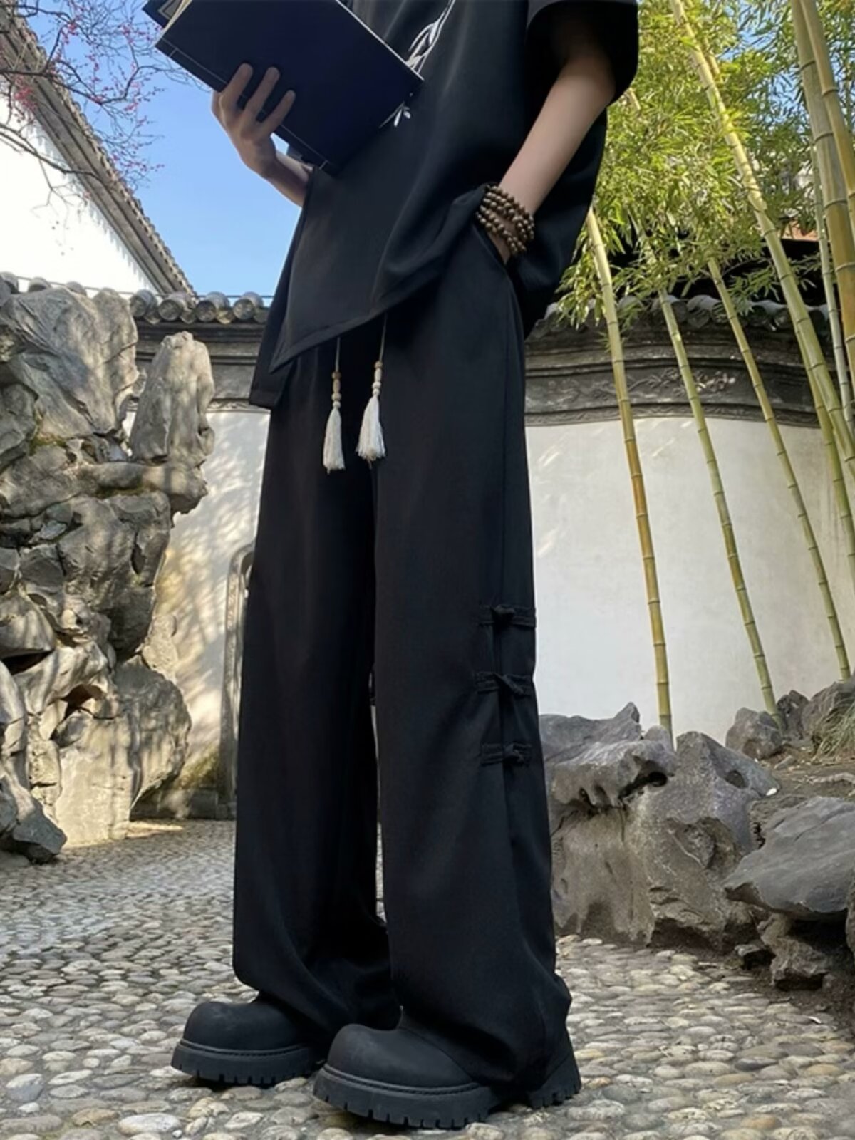 2024 새로운 간단한 느슨한 스트레이트 오버올 봄과 가을 남자 유행 브랜드 올매치 와이드 레그 캐주얼 롱 팬츠
