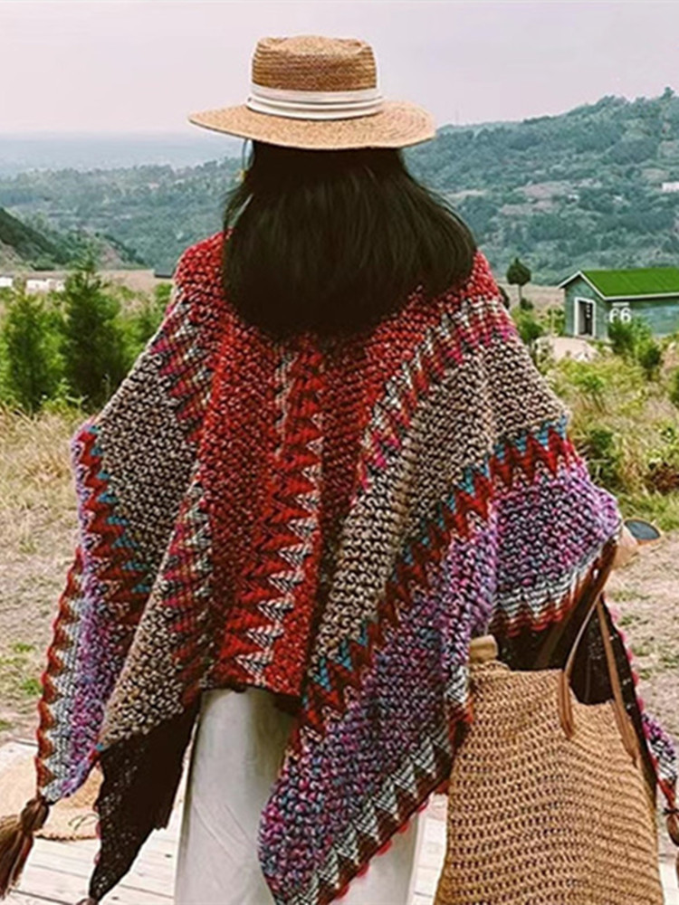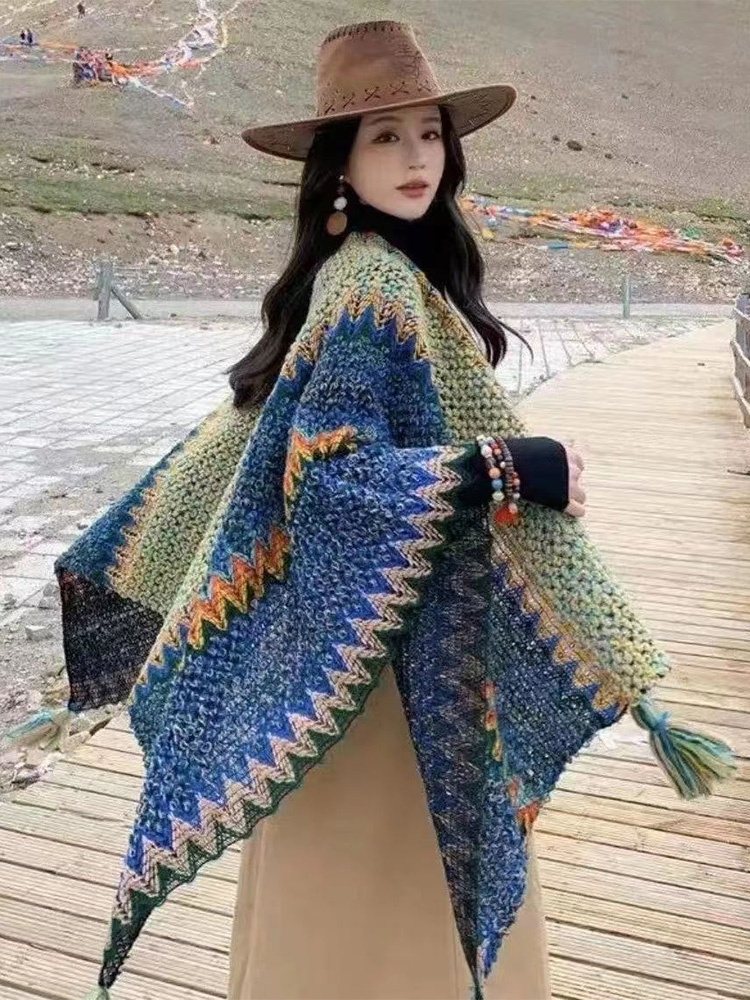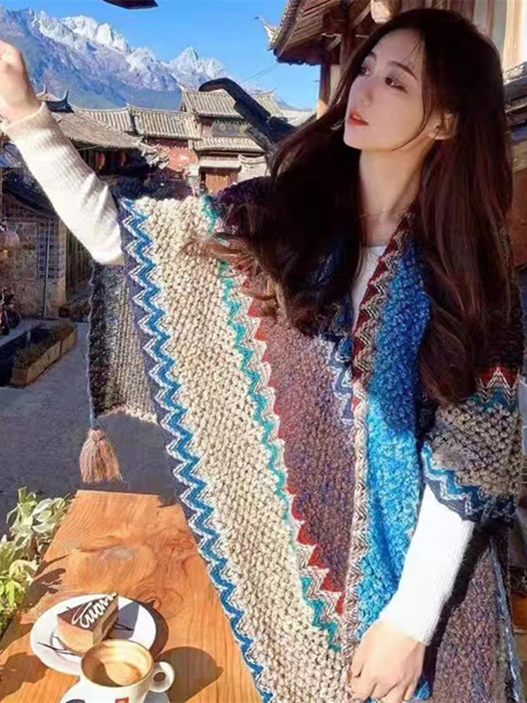 민족 스타일 목도리 윈난 리장 서쪽 사천 여행 신강 티베트 니트 케이프 스카프 여성스토어 가기