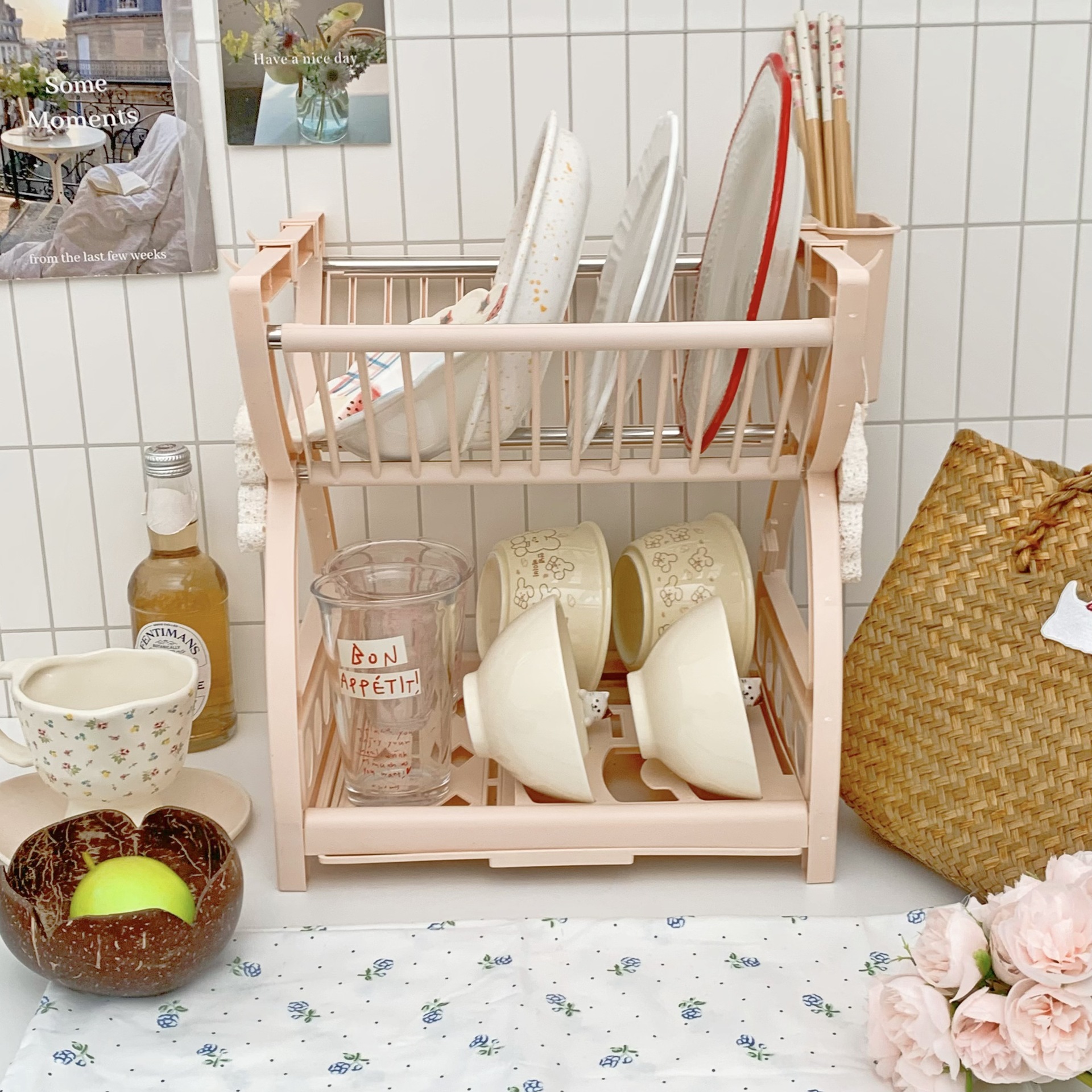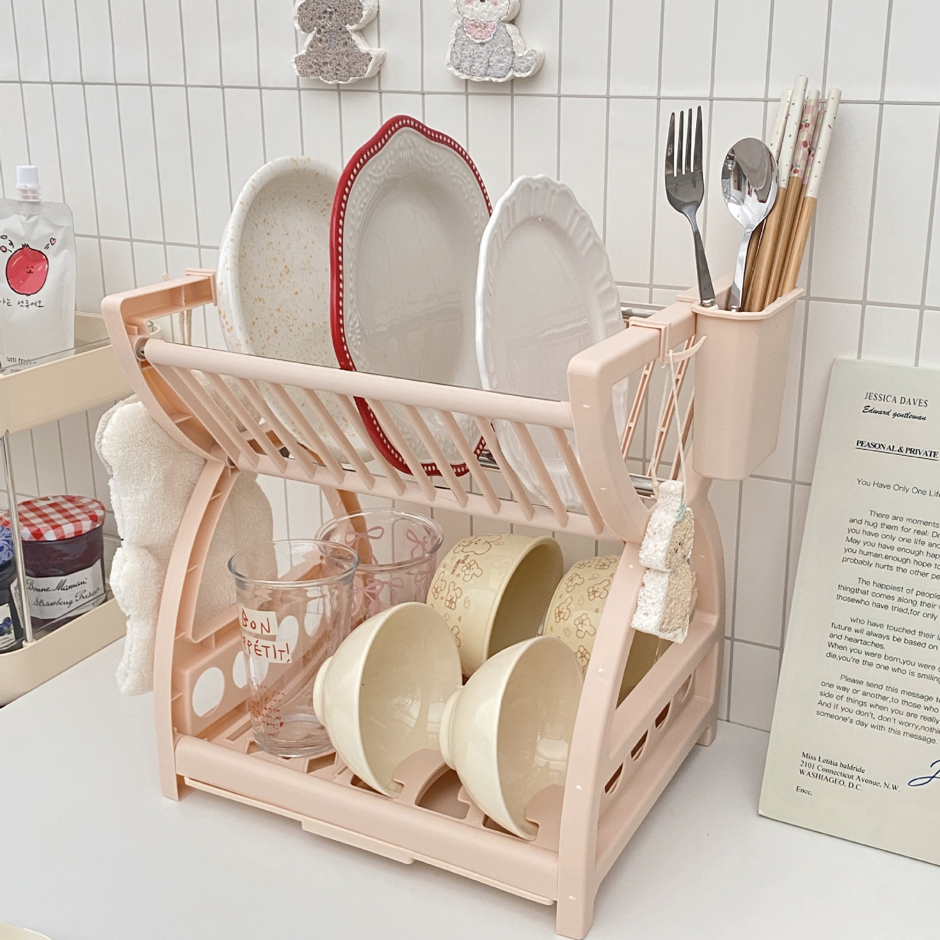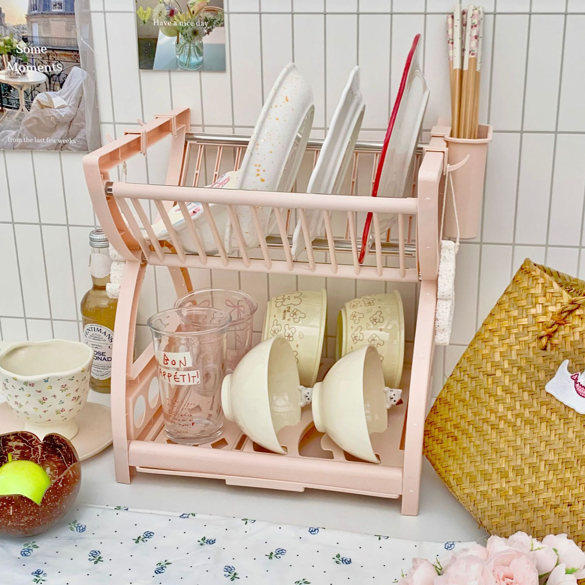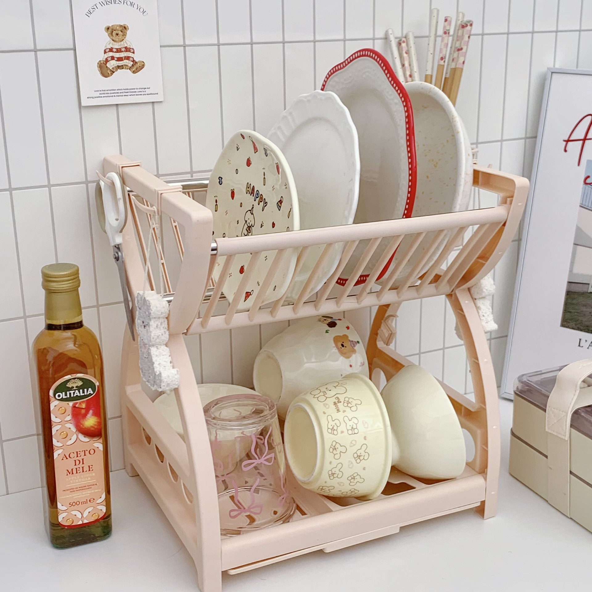 심플한 스타일의 주방 수납 선반, 다기능 접시, 그릇, 젓가락, 칼 수납 선반, 2층 식기 배수 선반 수납 상자