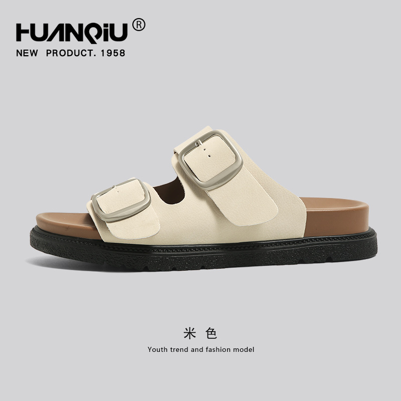 유니버설 버켄 샌들 슬리퍼 여성용 여름 아우터 2024 새로운 두꺼운 바닥 캐주얼 소프트 하단 버켄 한 단어 비치 슬리퍼