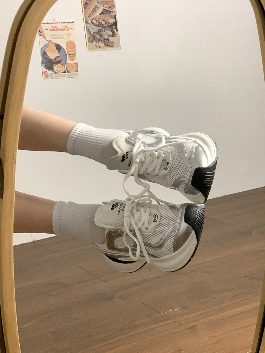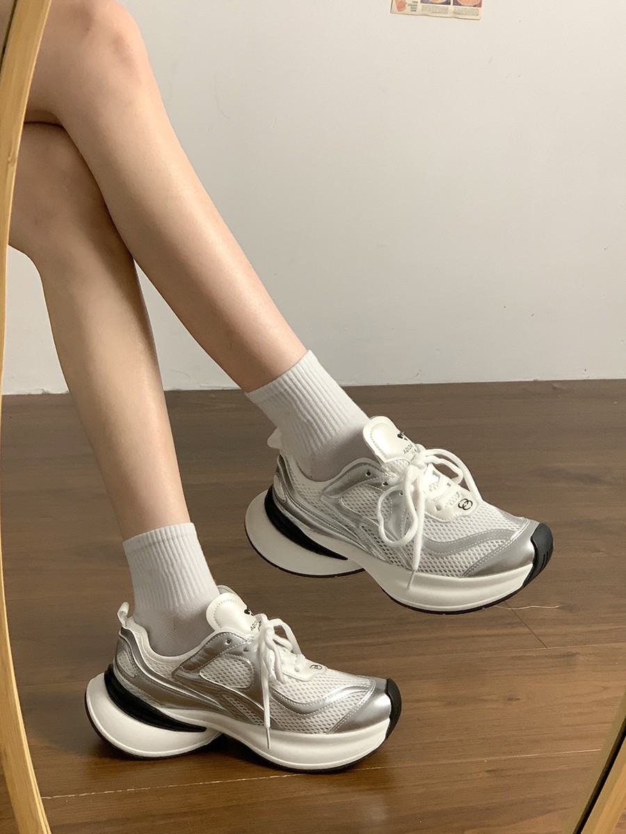 여성용 아빠 신발 2025년 신상 여름 얇은 통기성 메쉬 여성 신발 두꺼운 밑창 실버 스트리트 스타일 스포츠 캐주얼 신발스토어 가기