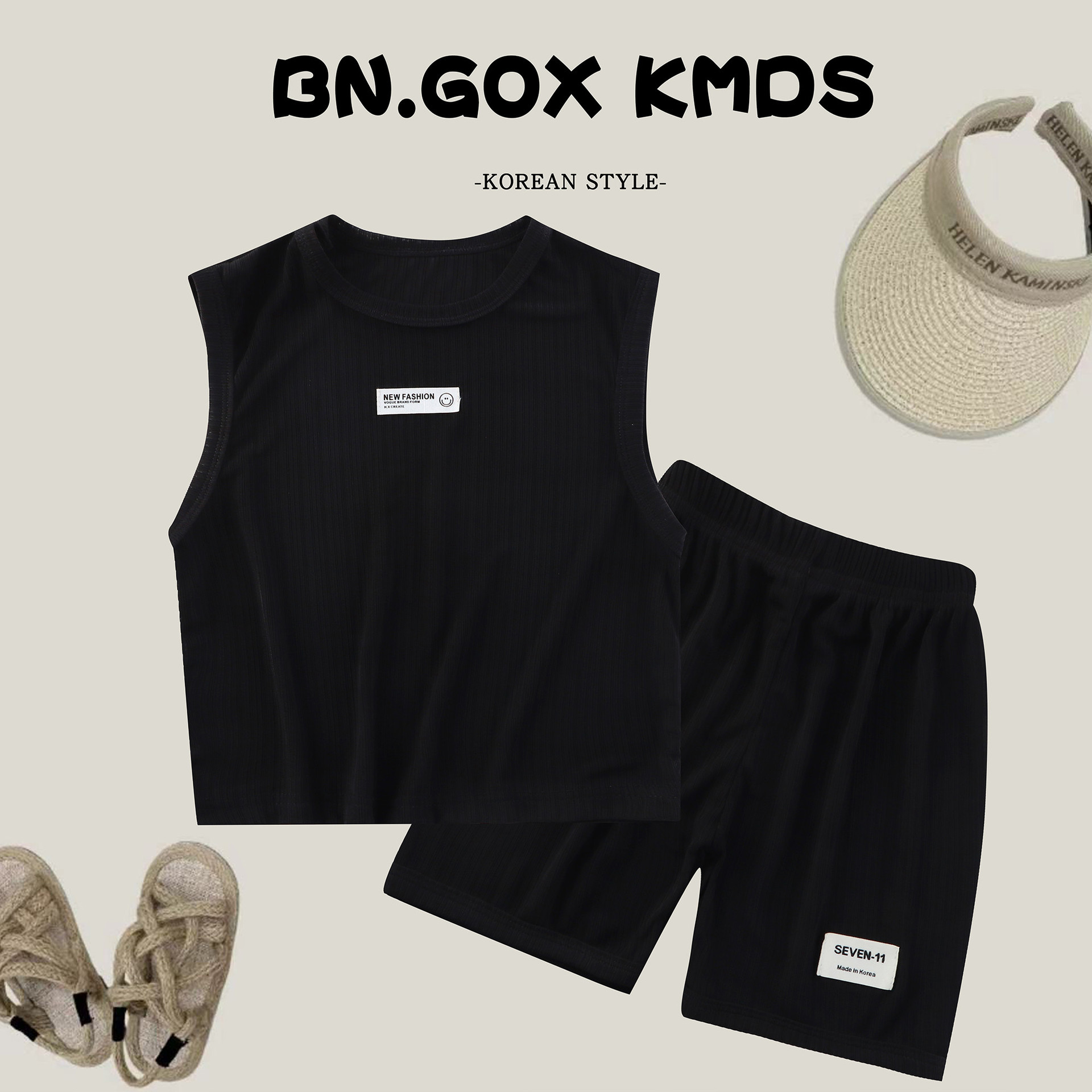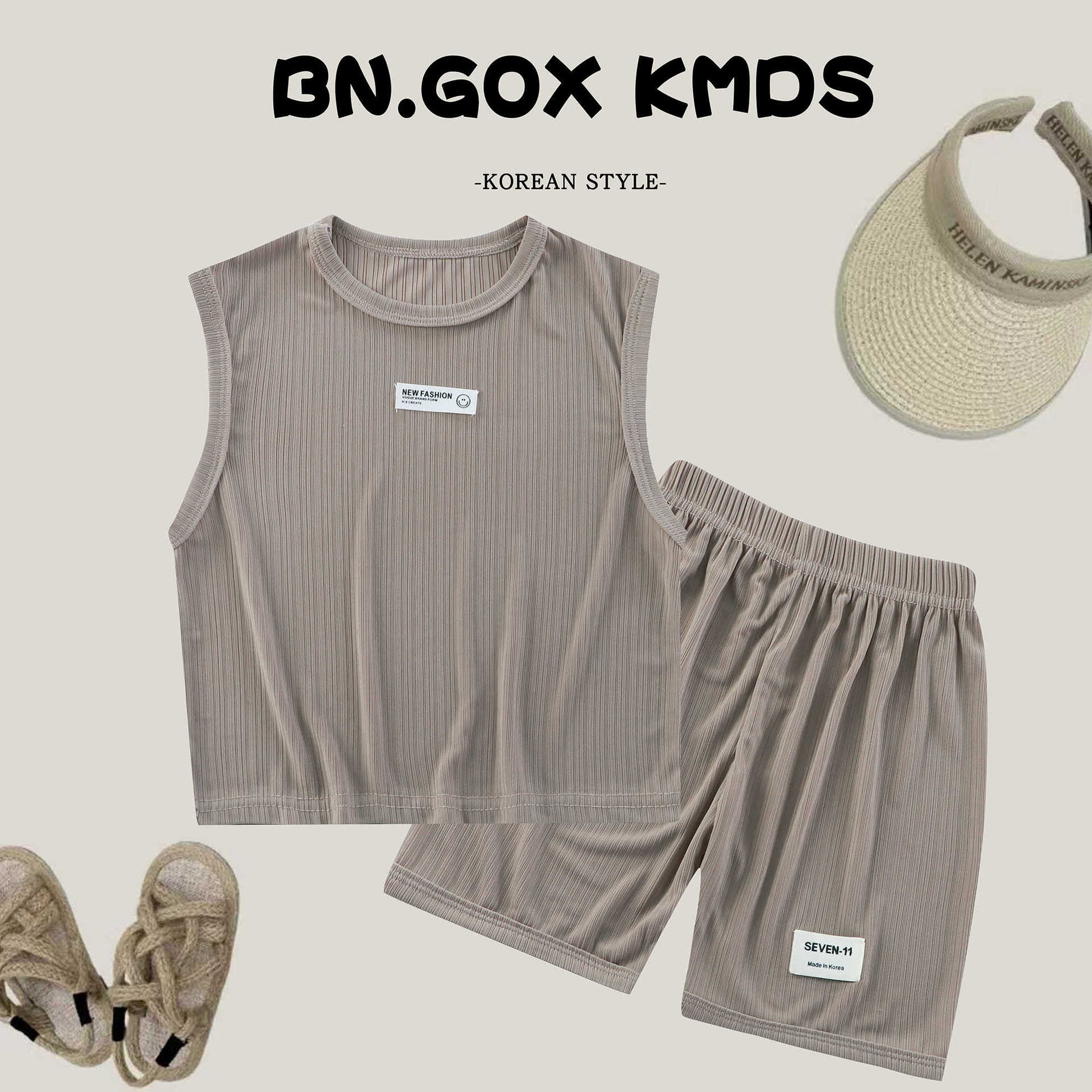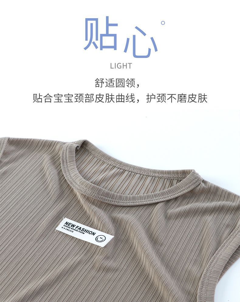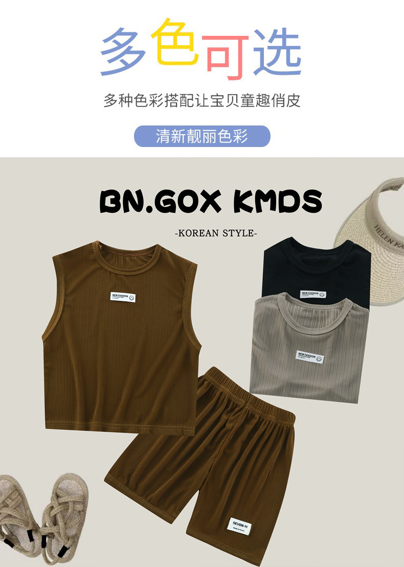 아동복 소년 소녀를위한 여름 새 스타일 얼음 실크 민소매 여름 옷 얇은 패션 멋진 투피스 아동복 세트스토어 가기