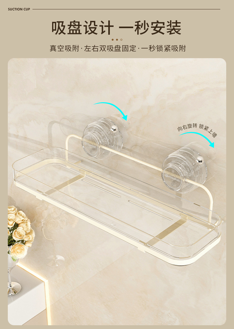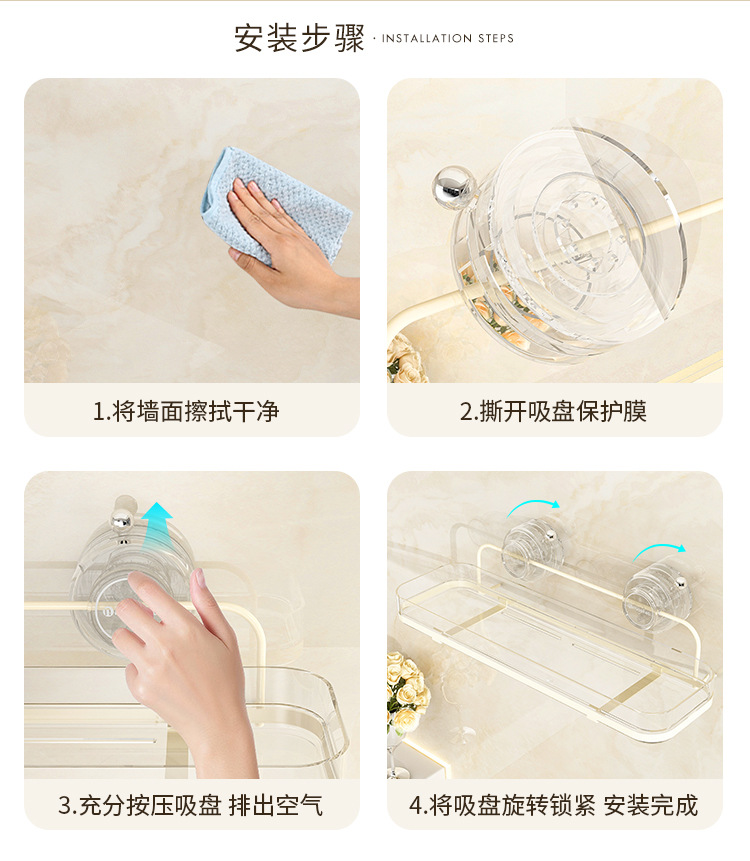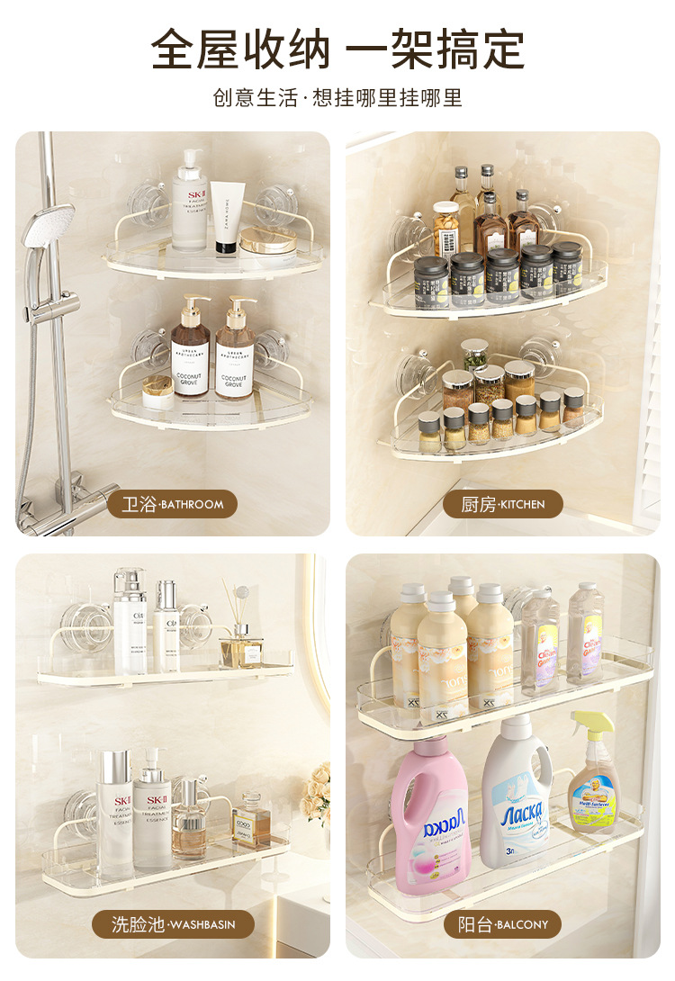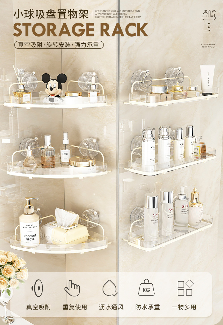 송타이 강력한 흡입 컵 스토리지 랙 화장실 휴대용 벽 장착 주방 욕실 선반 펀치 프리 스토리지 랙스토어 가기