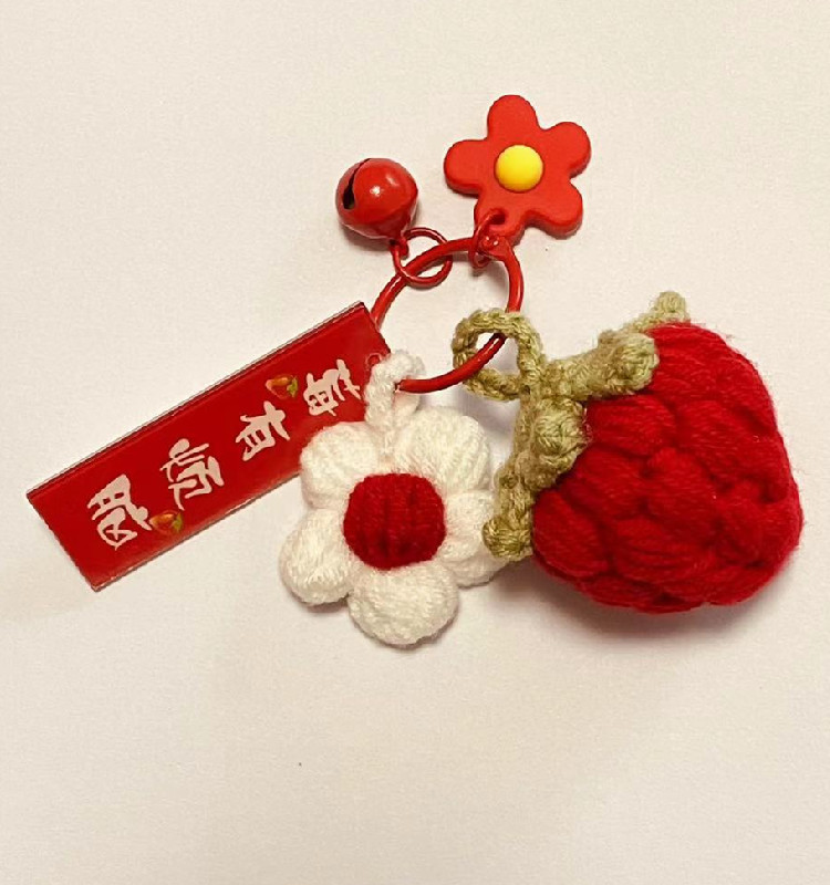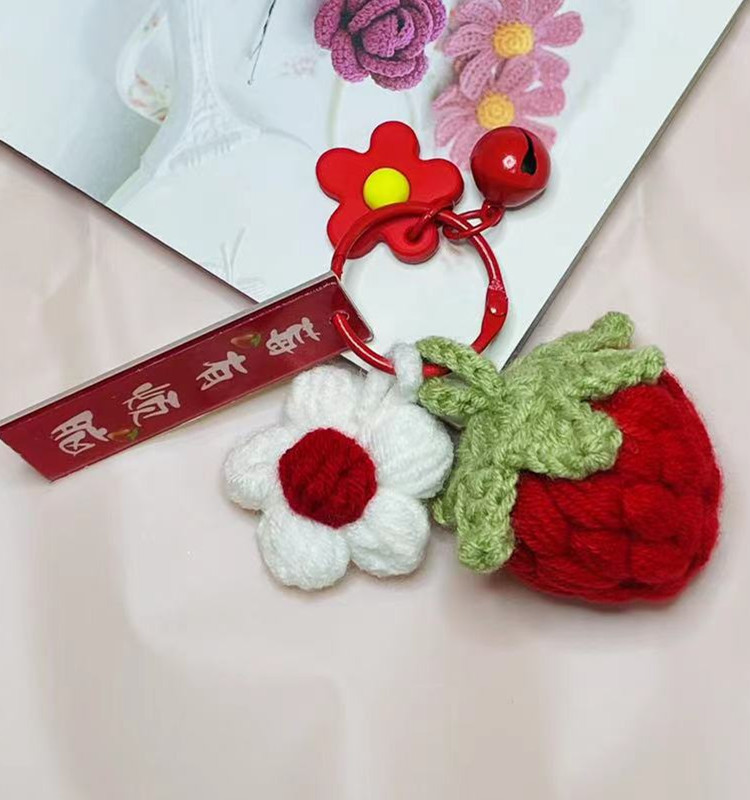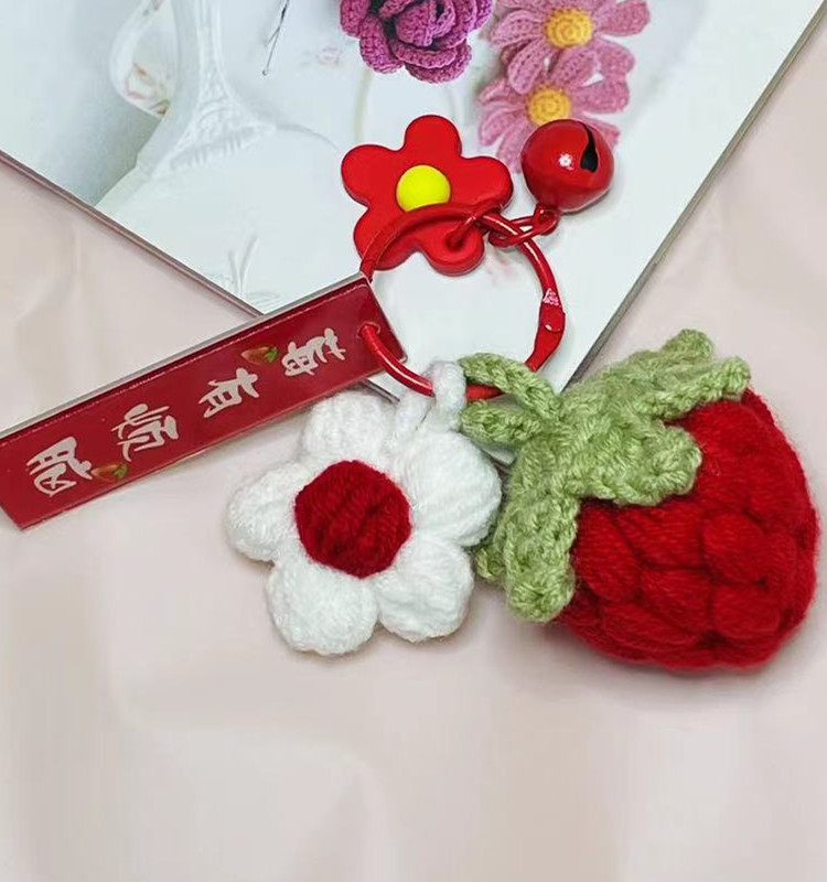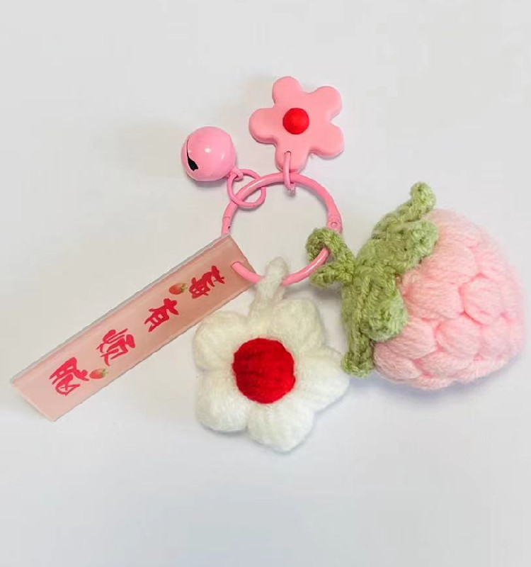 크로 셰 뜨개질 양모 매달려 국경 퍼프 딸기 걱정 펜던트 블라인드 박스 손으로 짠 인형 펜던트 완제품