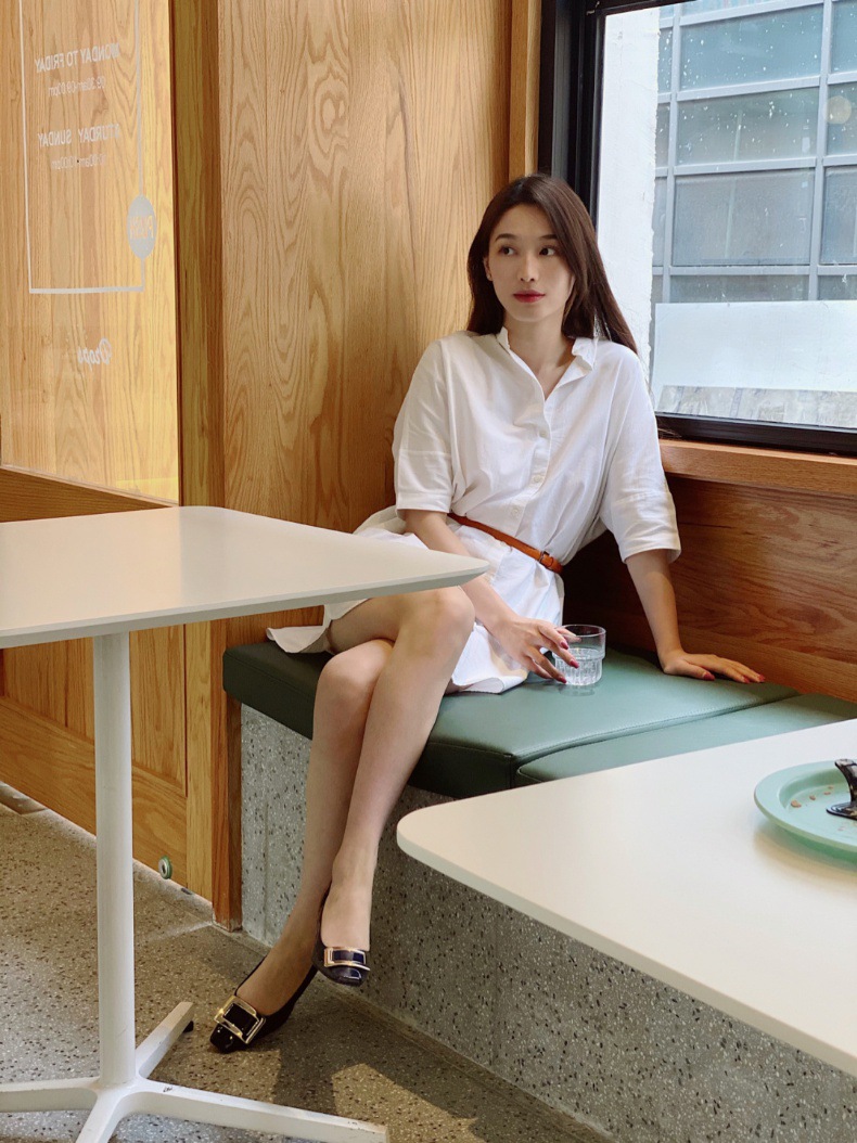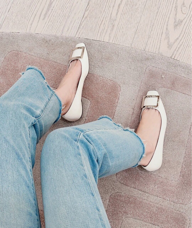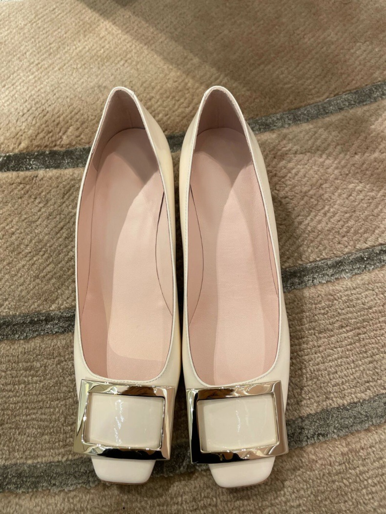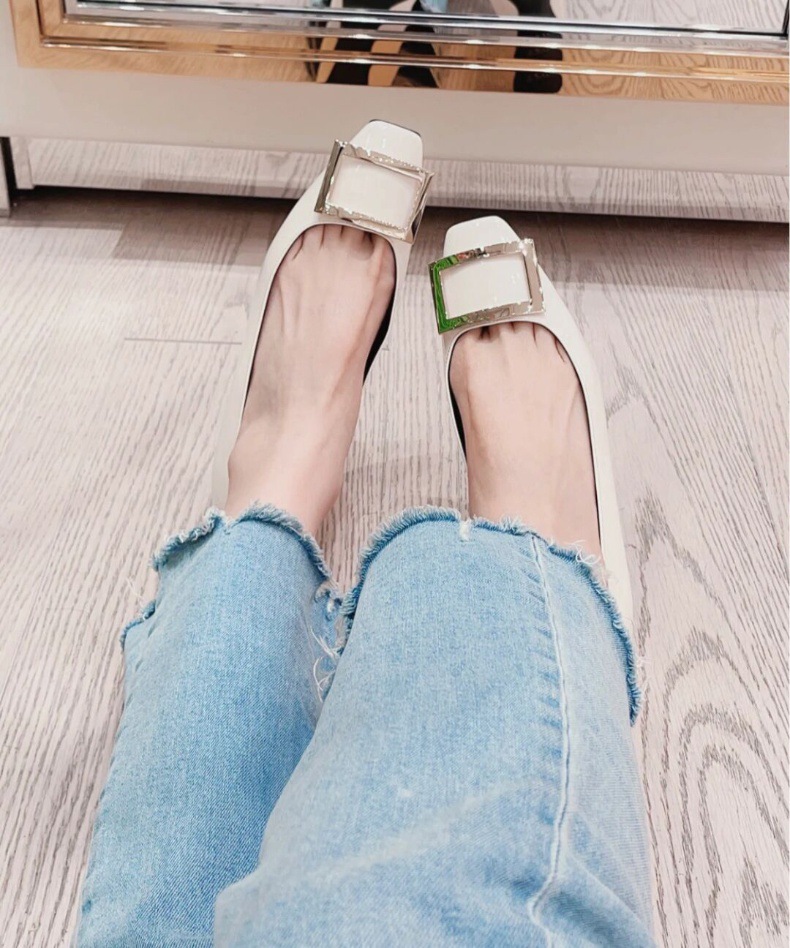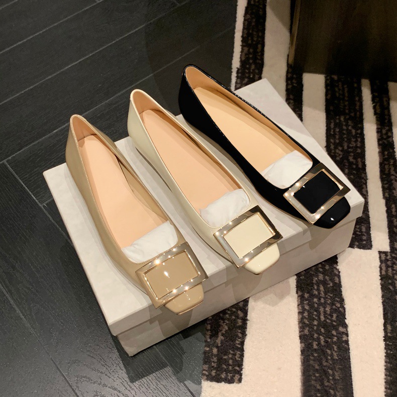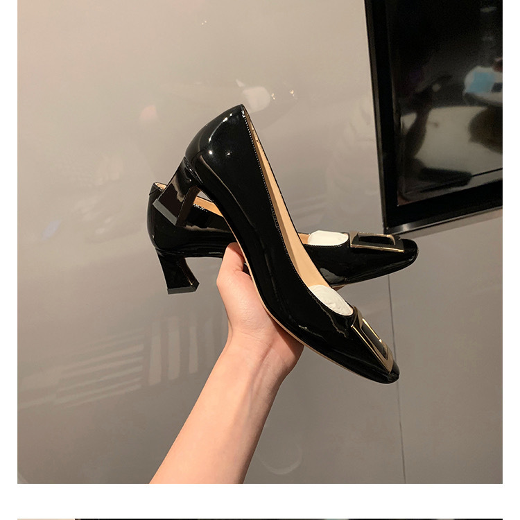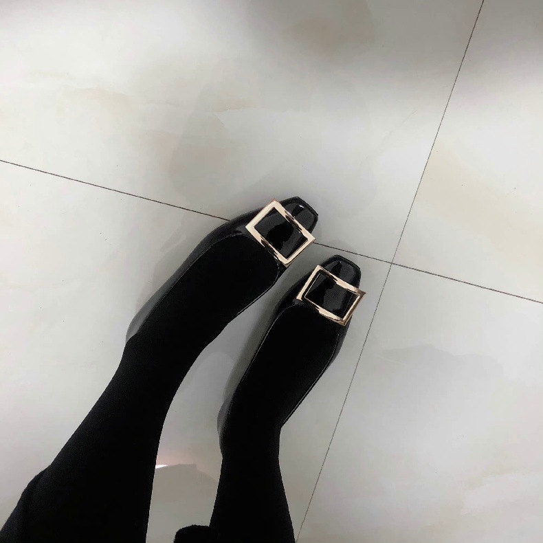 양가죽 판 ~ 클래식 스퀘어 버클 작은 광장 머리 얕은 입 하이힐 여성의 여름 두꺼운 힐 플랫 통근 신발 가죽 펌프