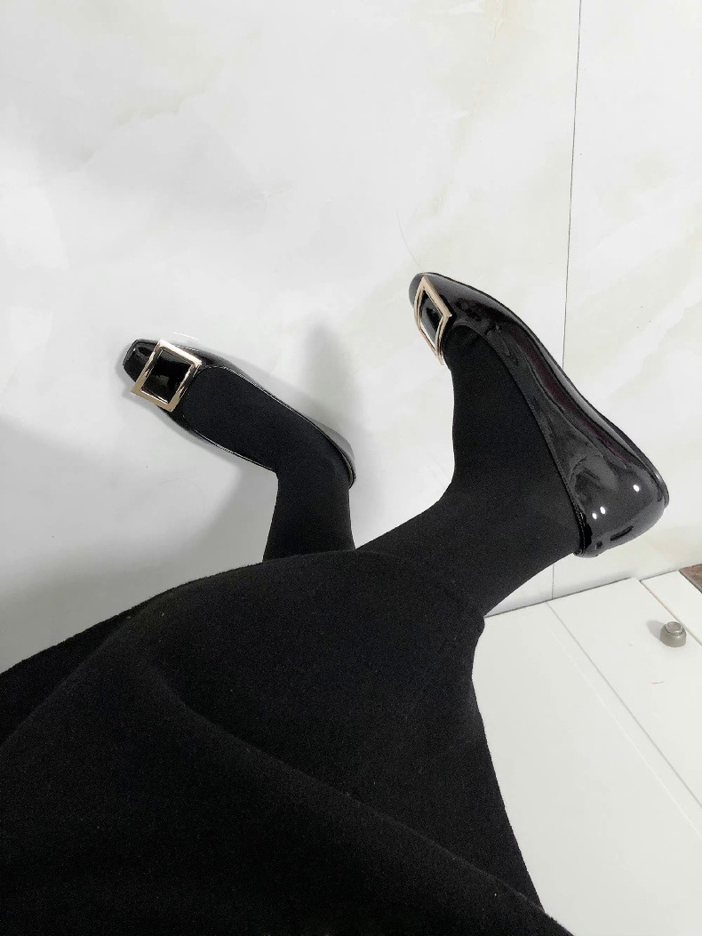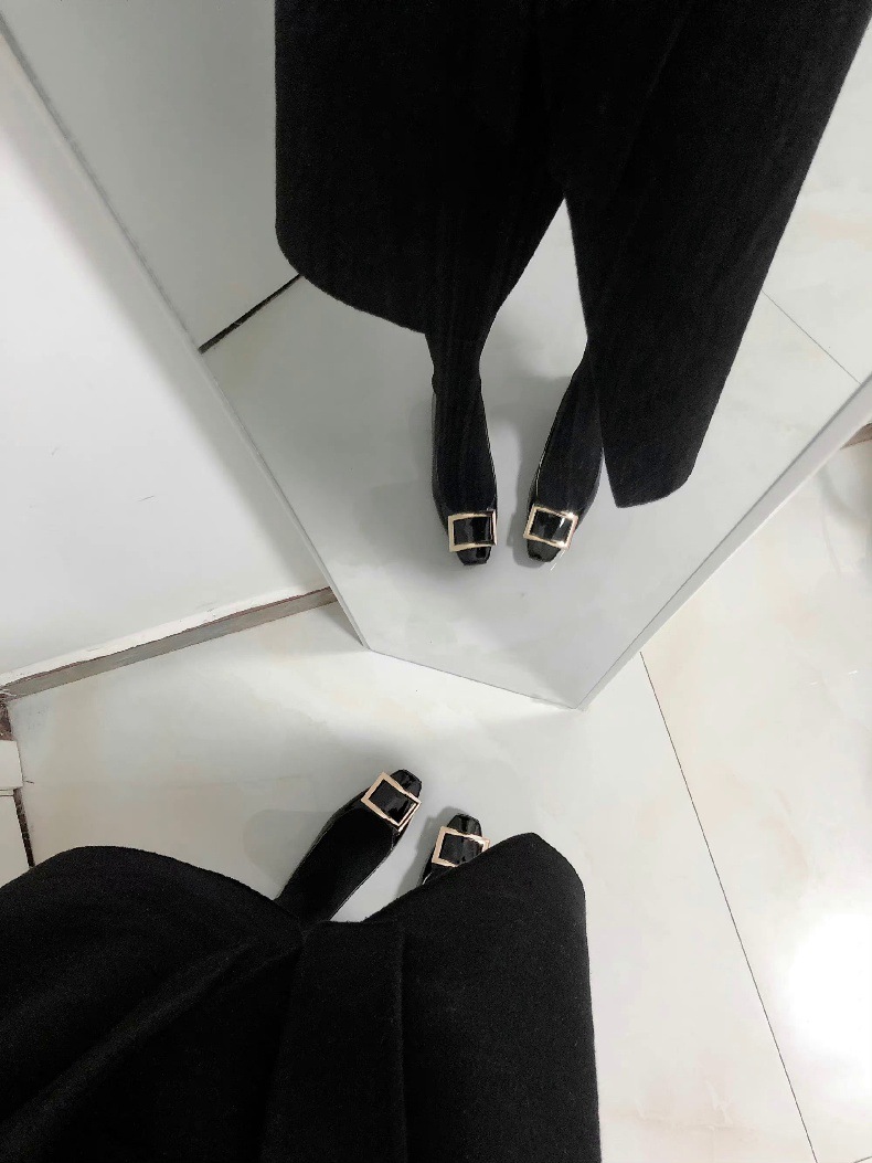 • 검은 두꺼운 뒤꿈치 (발 뒤꿈치 높이 4.5cm)