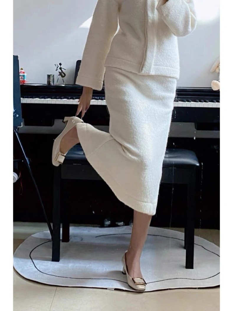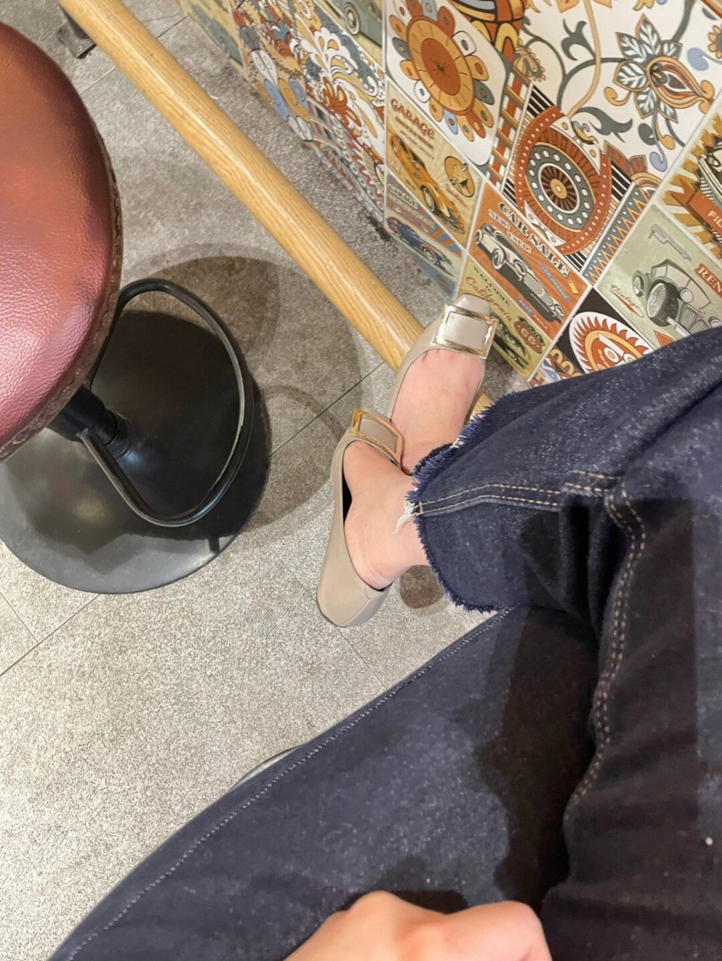 • 크림 같은 흰색 두꺼운 발 뒤꿈치 (발 뒤꿈치 높이 4.5cm)