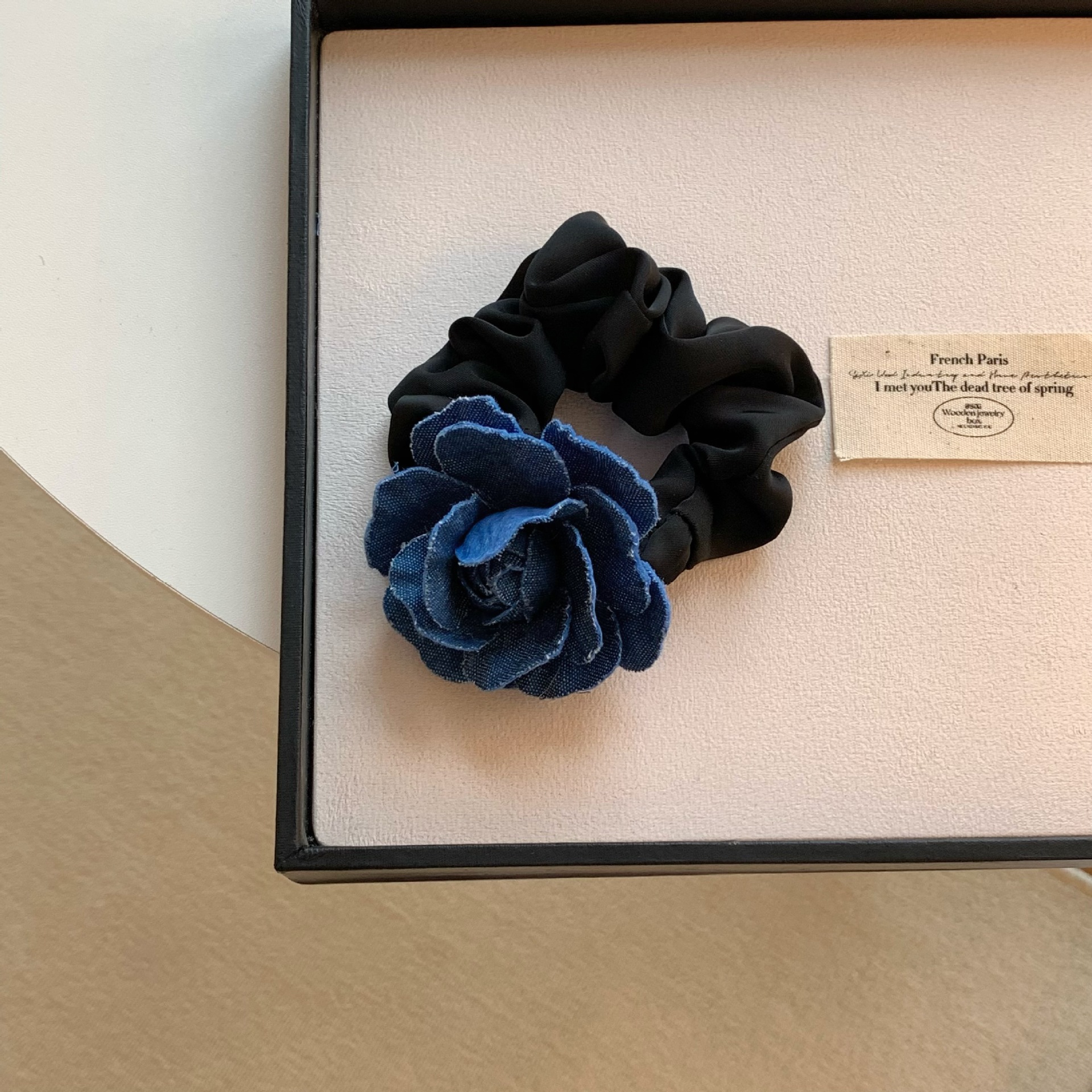 절묘한 높은 상품! 전체 데님 블루 동백 고무 텐더 여성용 볼 헤어 액세서리 헤어 로프 꽃 클립 헤드웨어스토어 가기