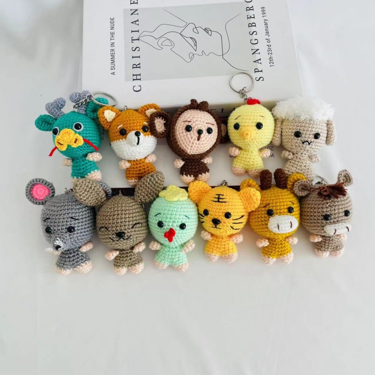 국경 간 손 니트 인형 펜던트 크로 셰 뜨개질 인형 블라인드 박스 완성 손 니트 양모 12 조디악 인형