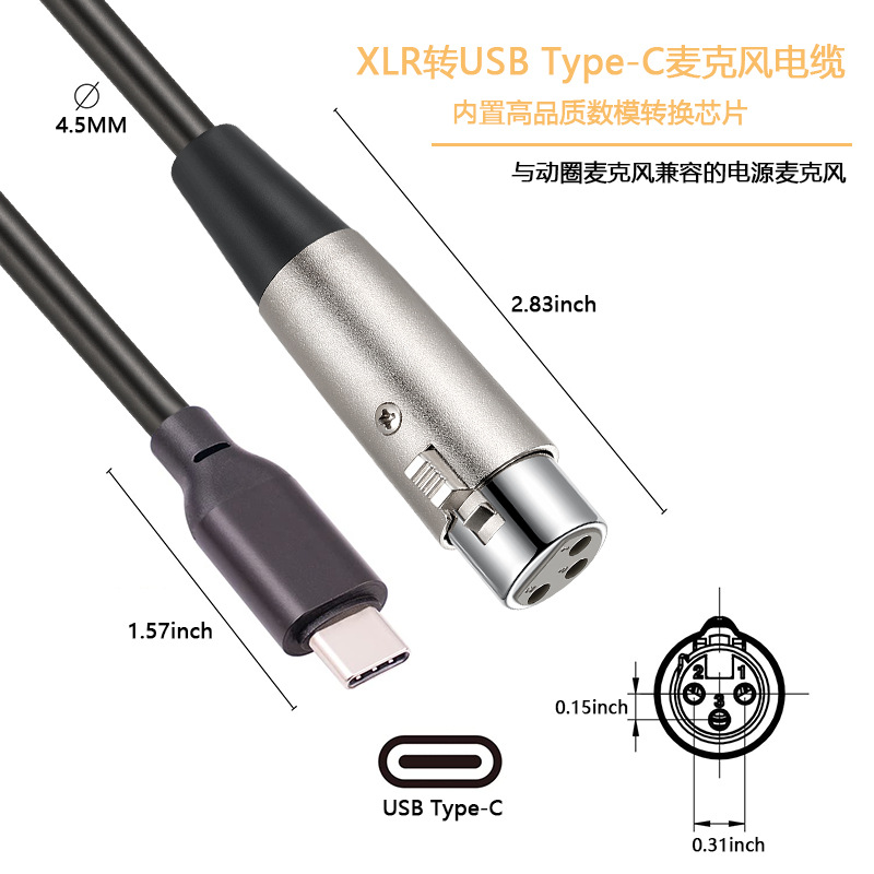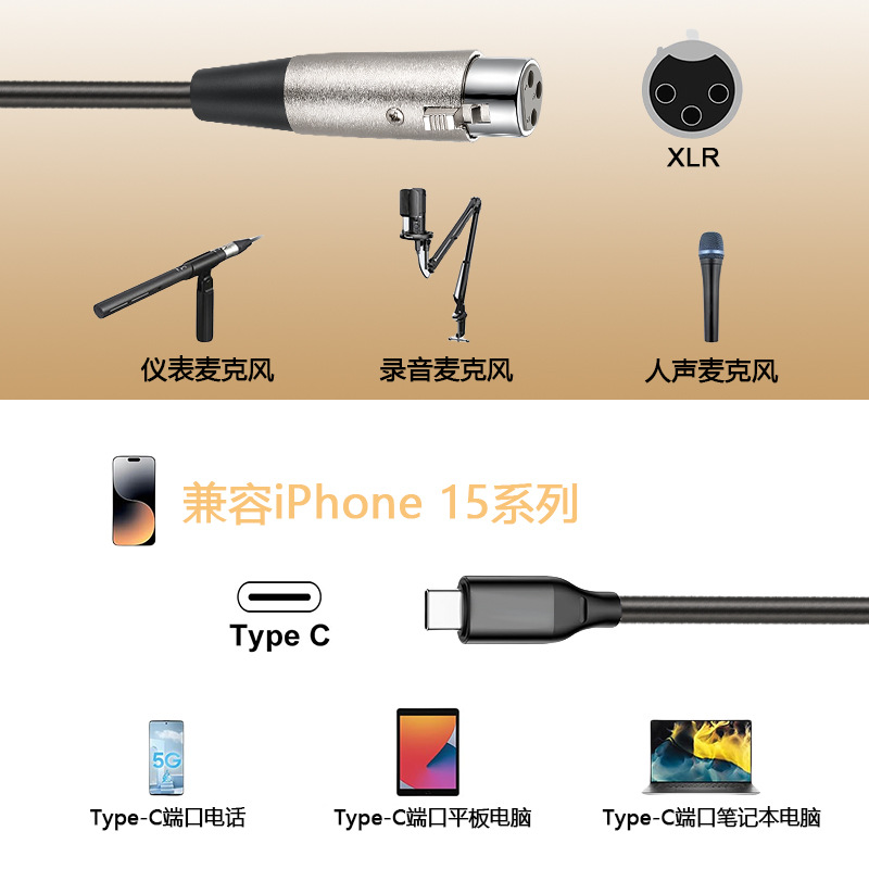 국경 도매 유형-c xlr 케이블 산소없는 구리 24AWG 캐논에서 유형 c 휴대 전화 녹음 케이블스토어 가기