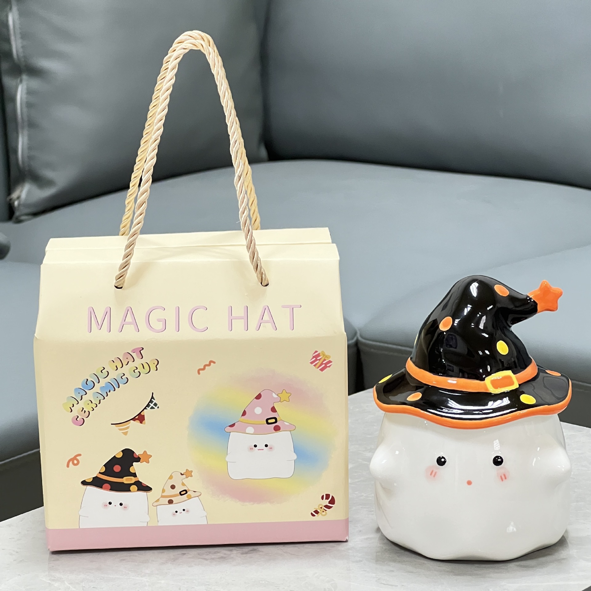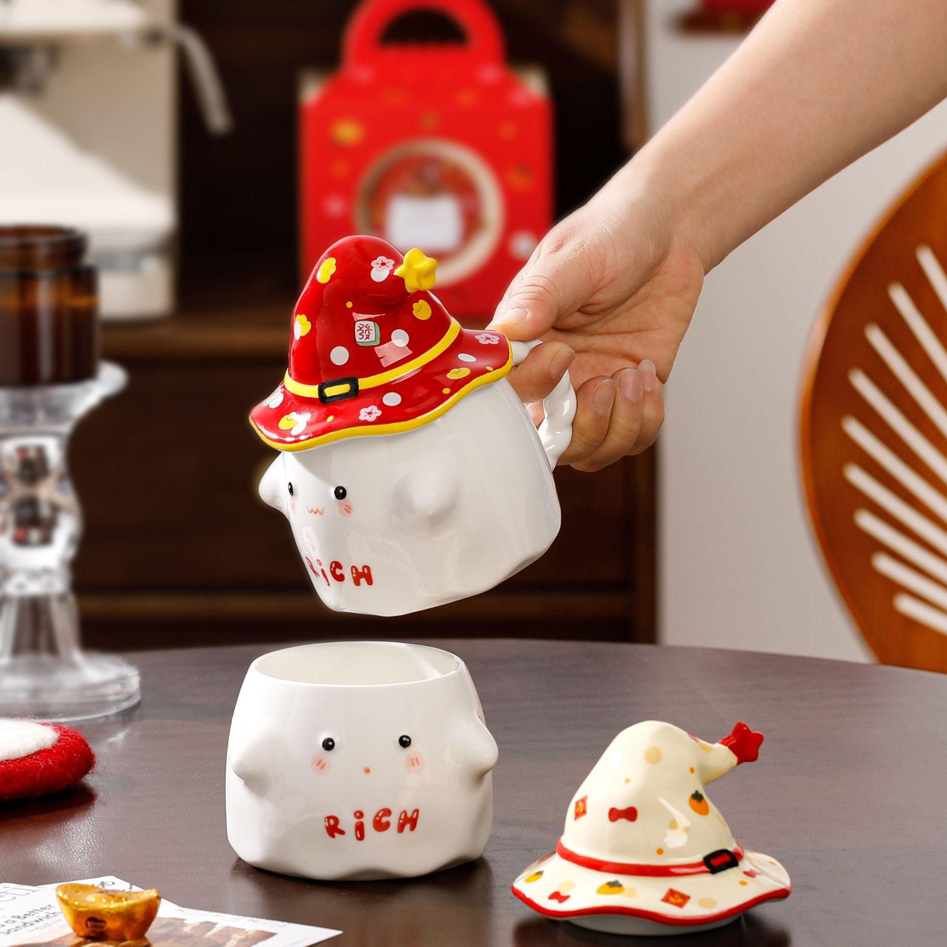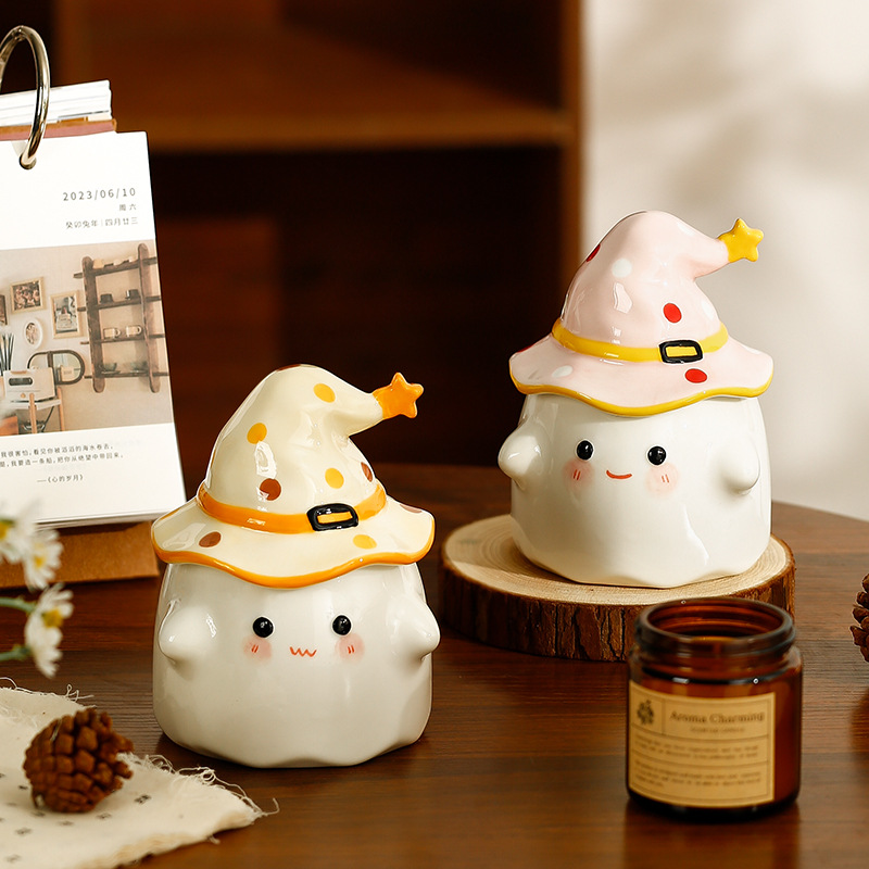 소녀 여자 친구 선물 만화 유령 세라믹 컵을위한 뚜껑과 함께 귀여운 물 컵스토어 가기