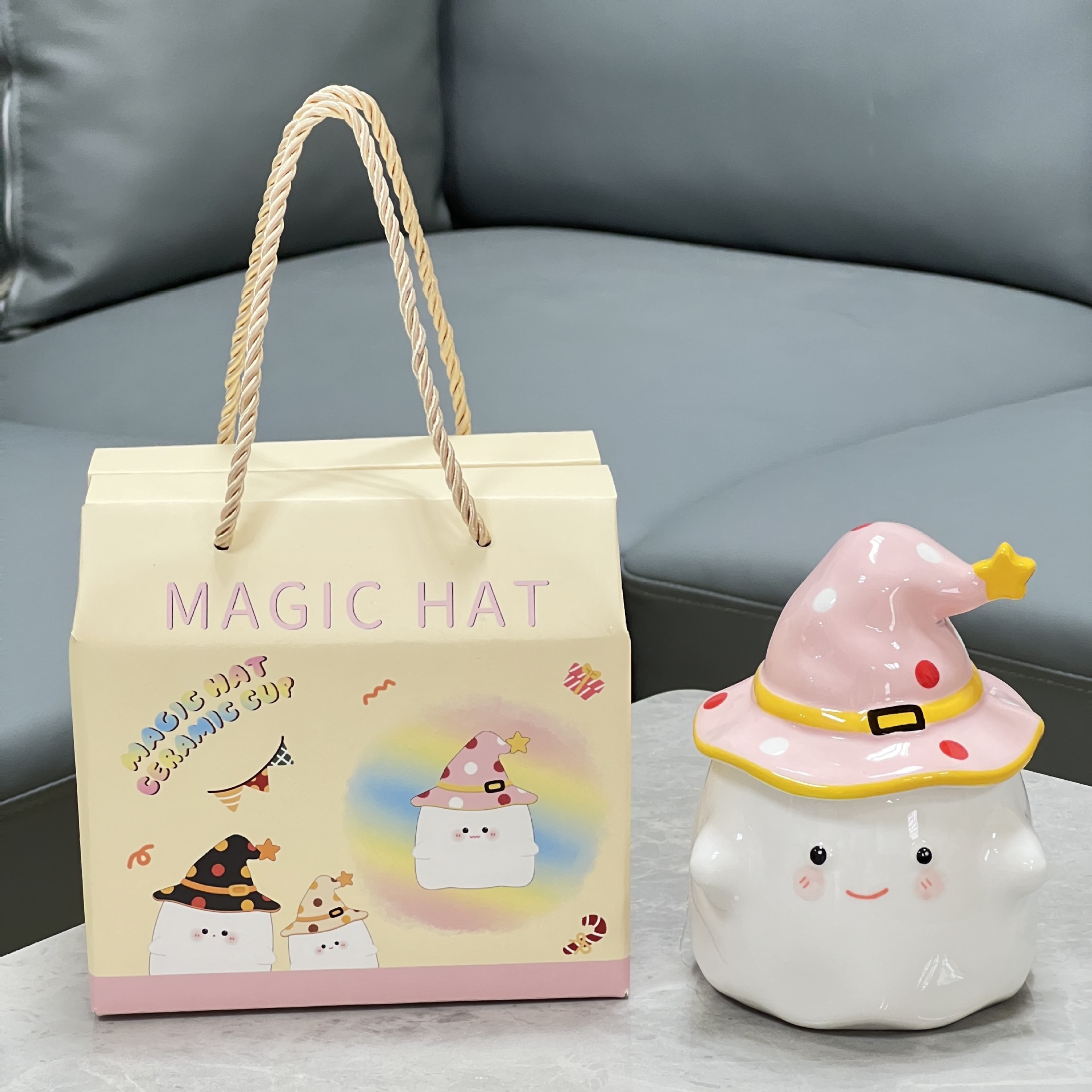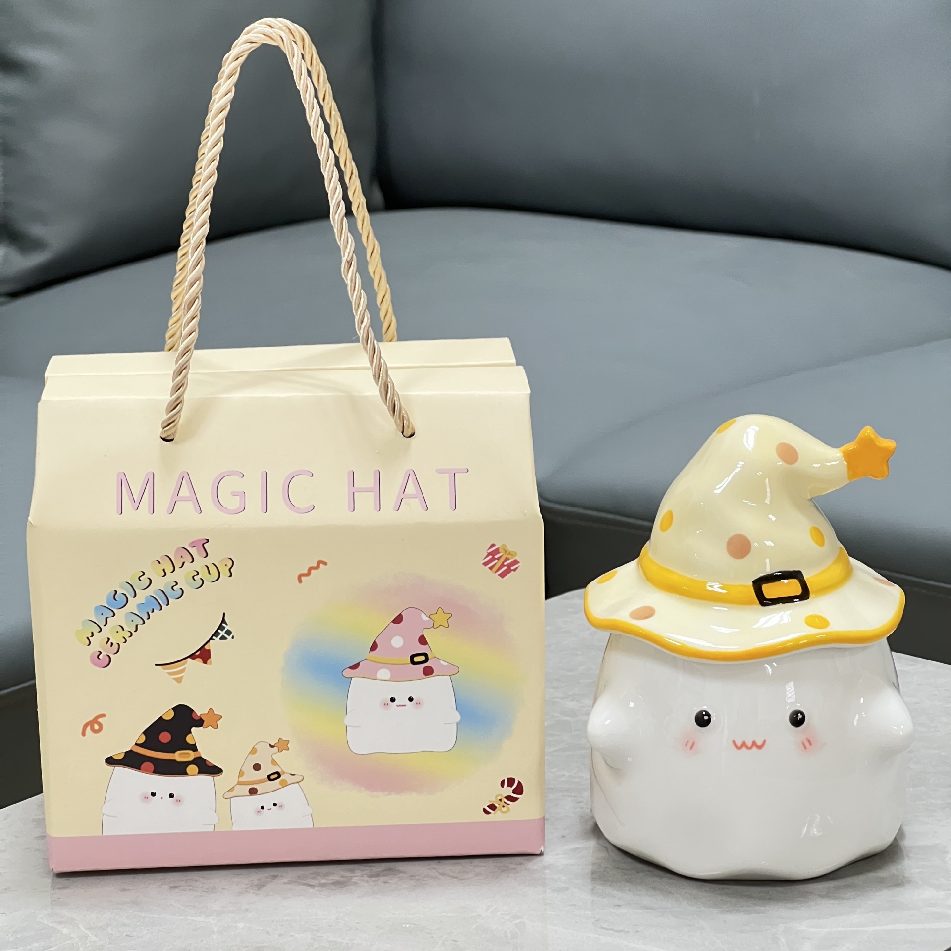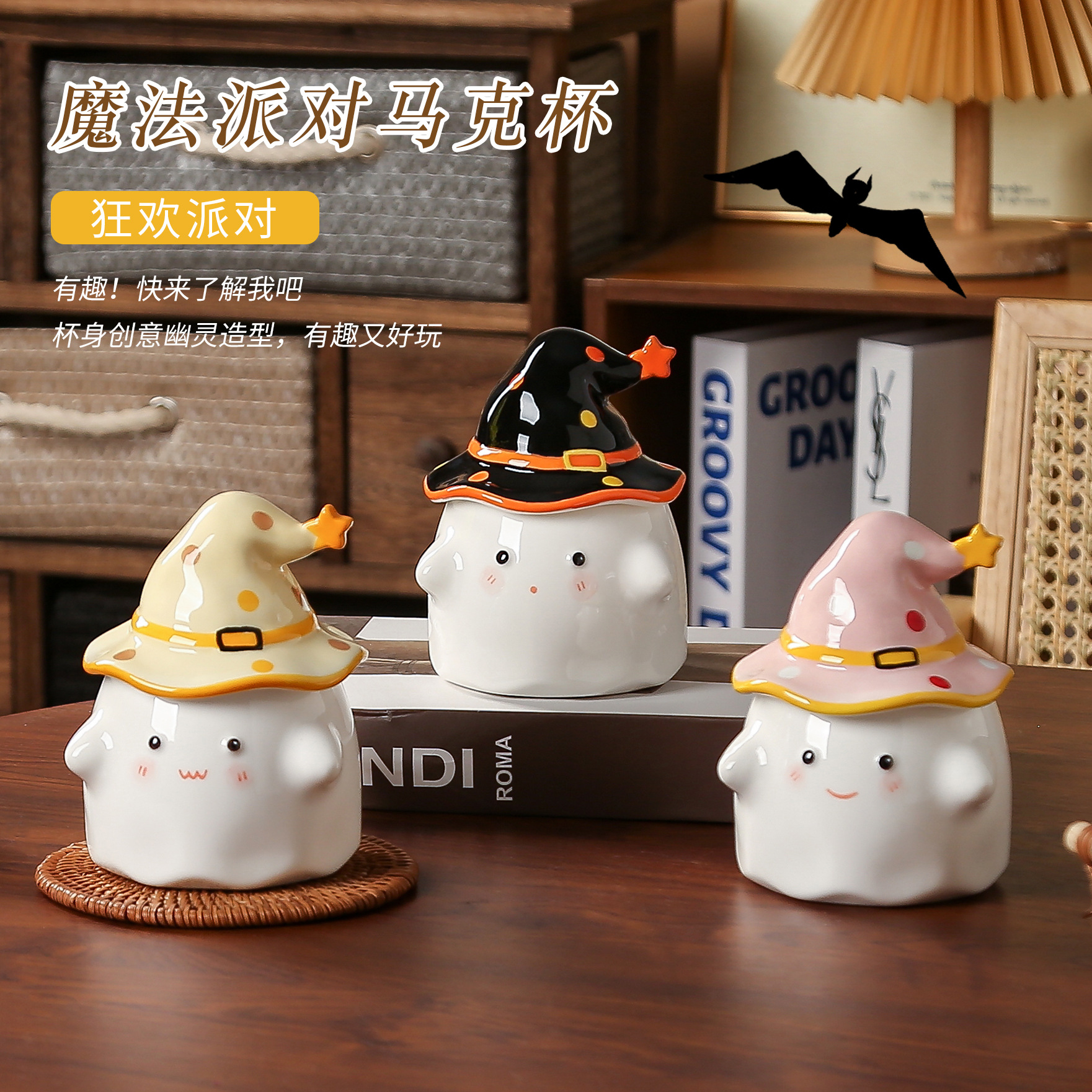 소녀 여자 친구 선물 만화 유령 세라믹 컵을위한 뚜껑과 함께 귀여운 물 컵스토어 가기