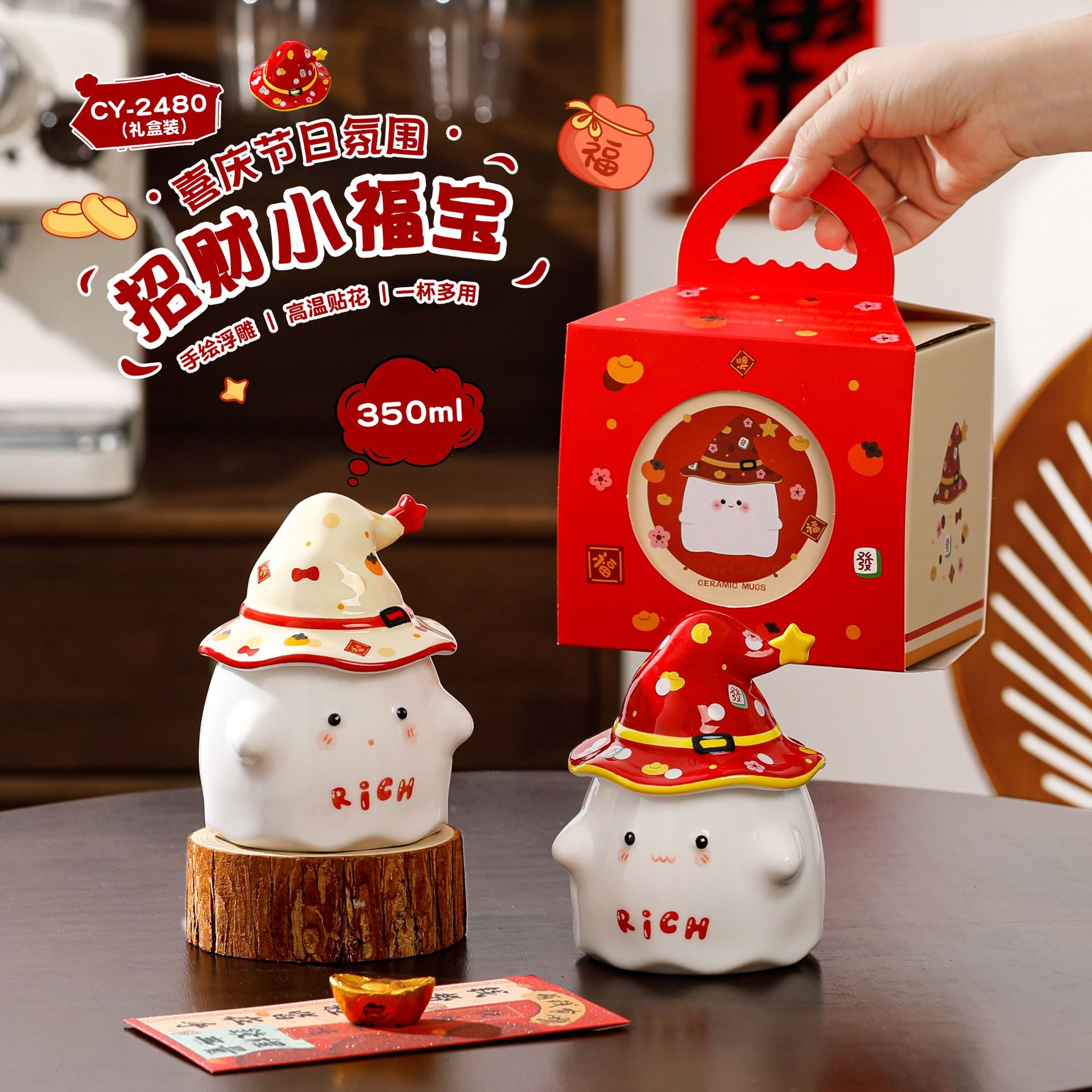 • 레드 RICH [컵+뚜껑+골판지 선물상자]