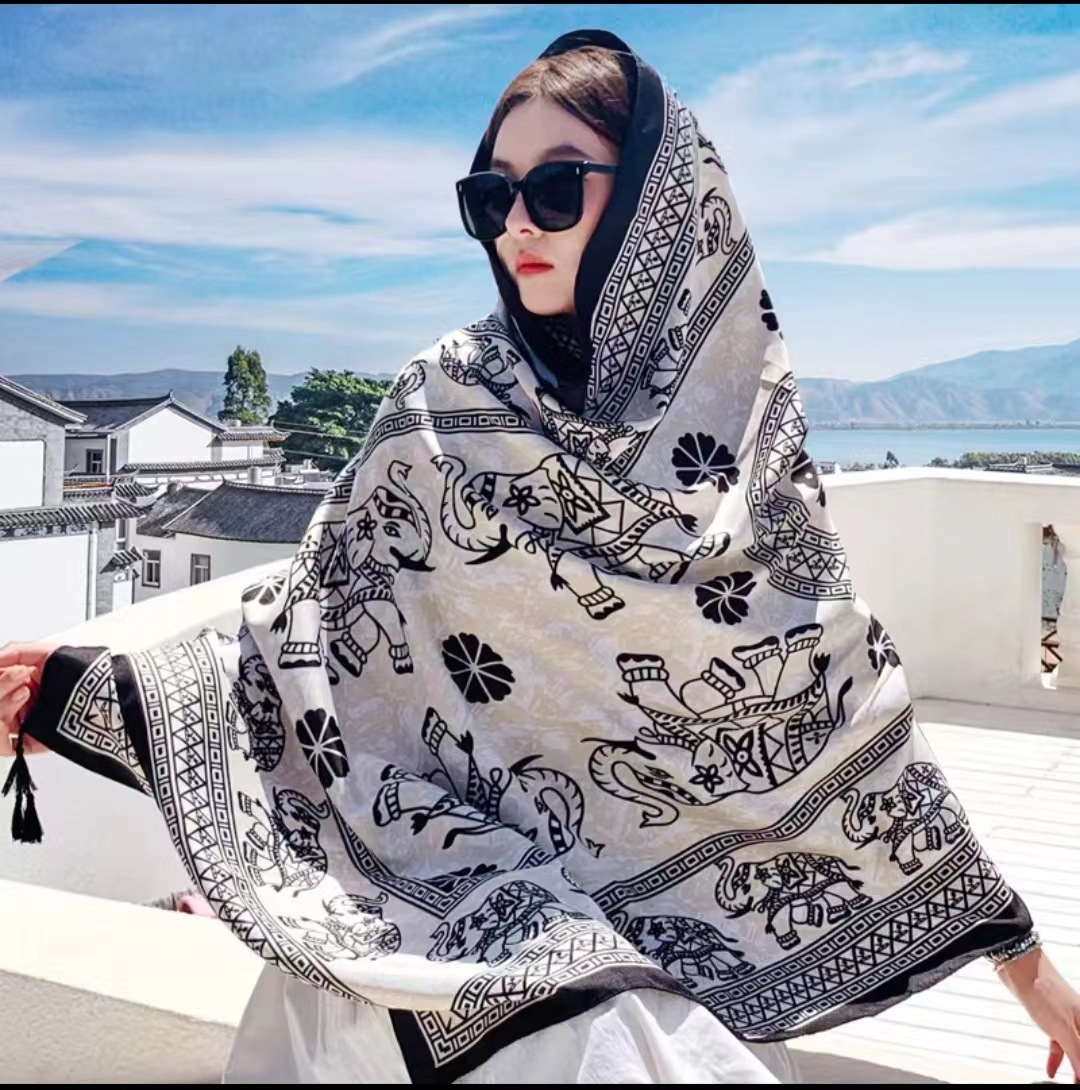 Mesi Chen Jixiang Ruyi 90*180 관광 휴일 민족 스타일 스카프 레트로 긴 숄 바오 투스토어 가기