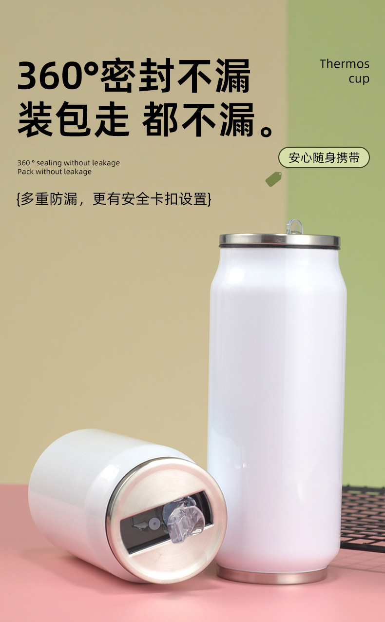 크로스보더 승화 프린팅 스테인리스 스틸 캔 보온병 학생용 콜라병 물컵 휴대용 빨대 물병
