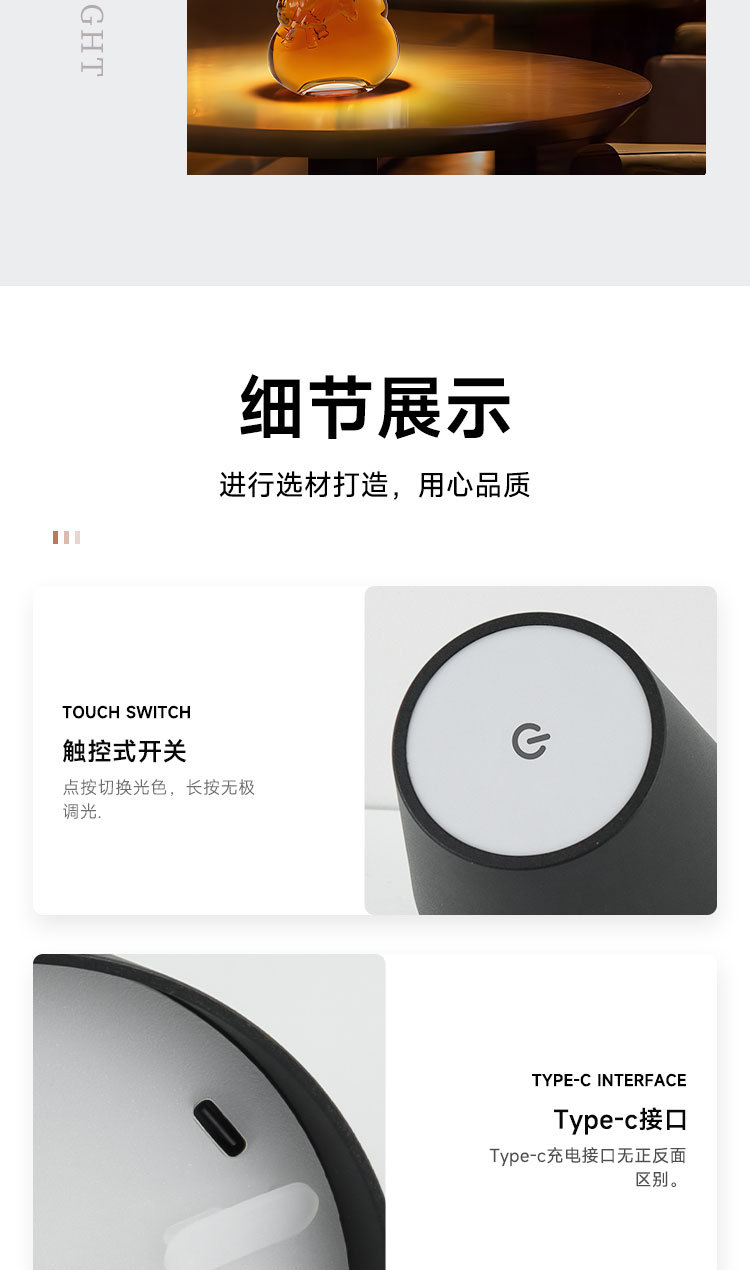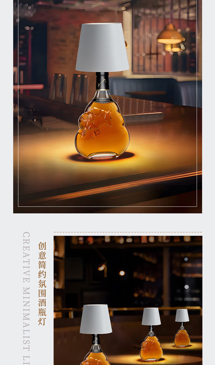국경 간 LED 충전식 와인 테이블 램프 레스토랑 바 침대 옆 분위기 USB 간단한 창조적 인 터치 와인 병 테이블 램프
