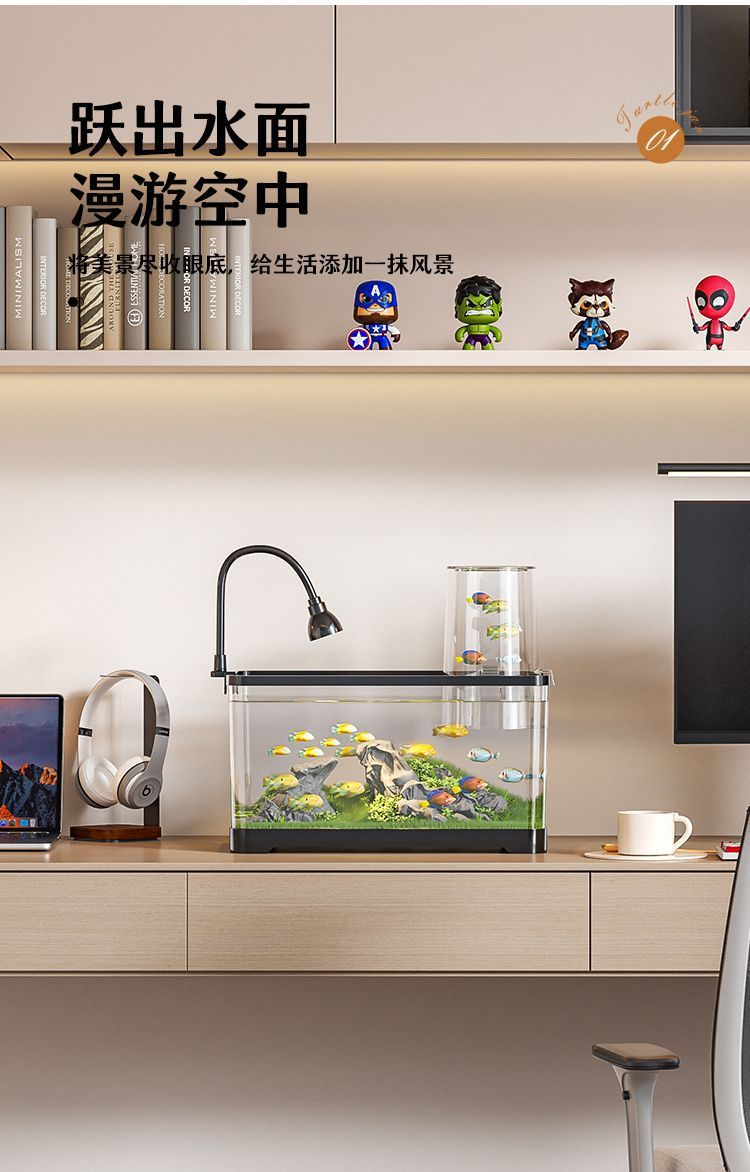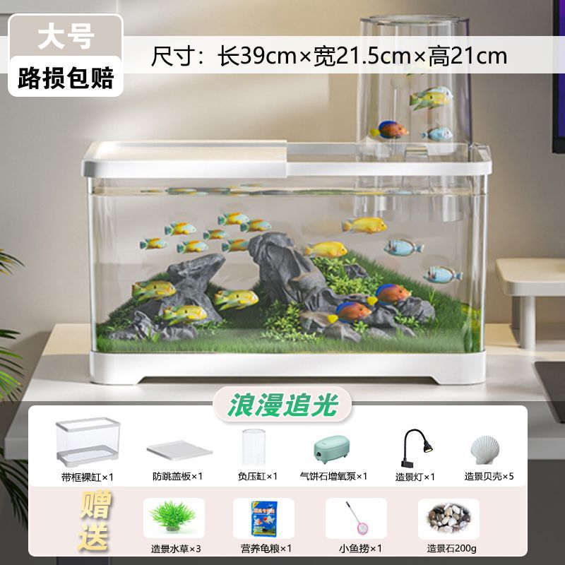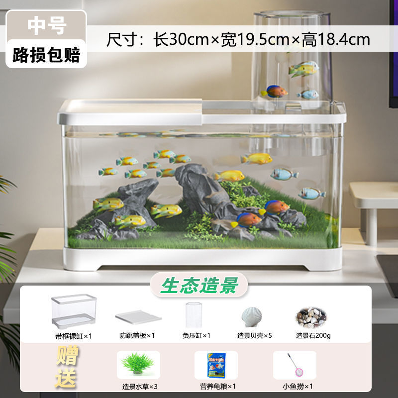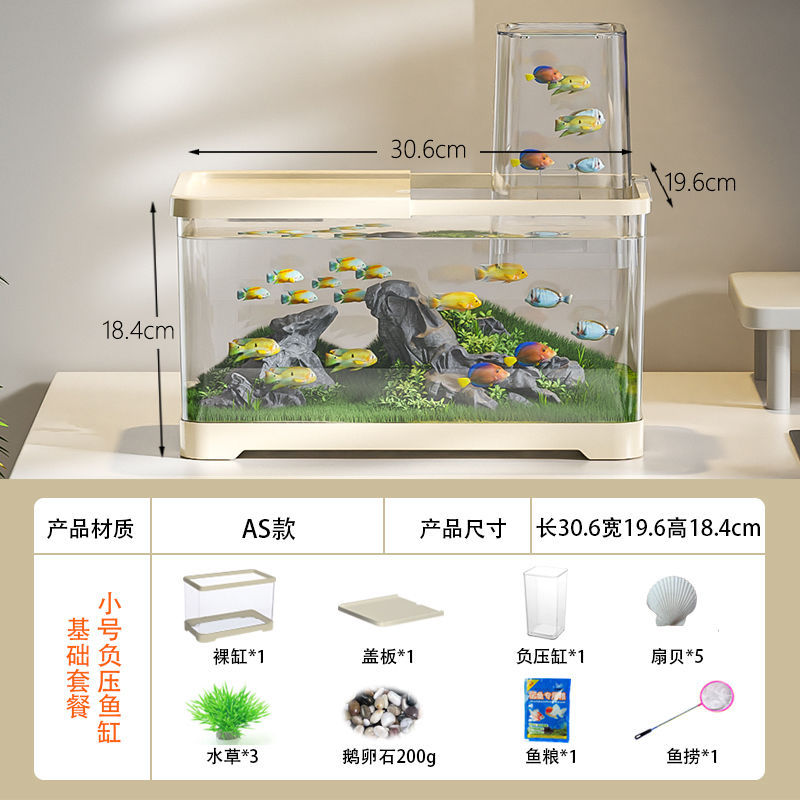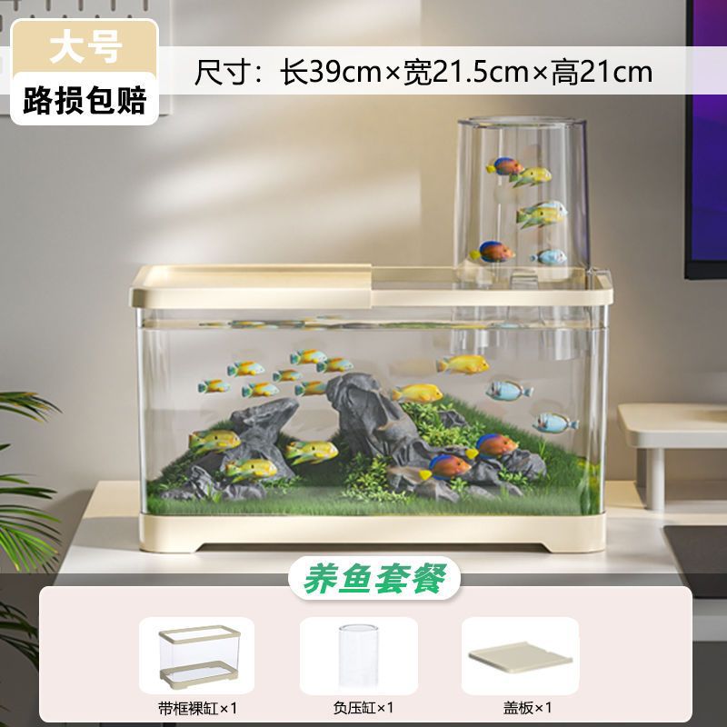 음압 어항 진공 서스펜션 작은 창조적 인 금붕어 탱크 생태 조경 탱크 플라스틱 거실 데스크탑 어항 수족관스토어 가기