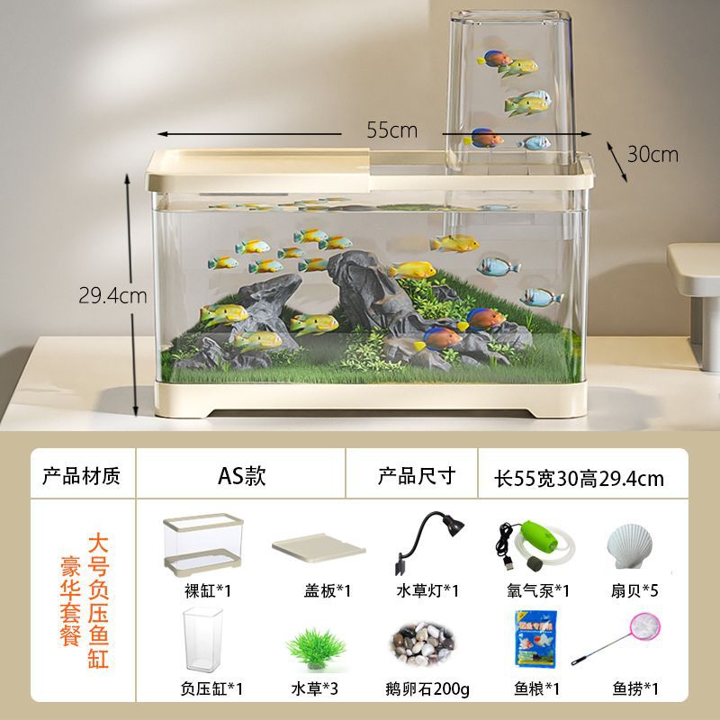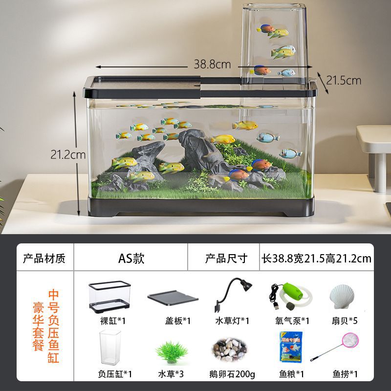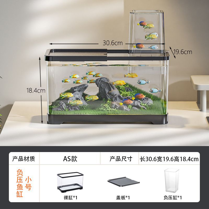 음압 어항 진공 서스펜션 작은 창조적 인 금붕어 탱크 생태 조경 탱크 플라스틱 거실 데스크탑 어항 수족관