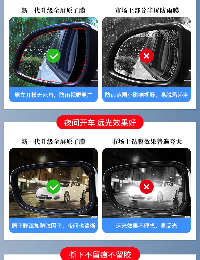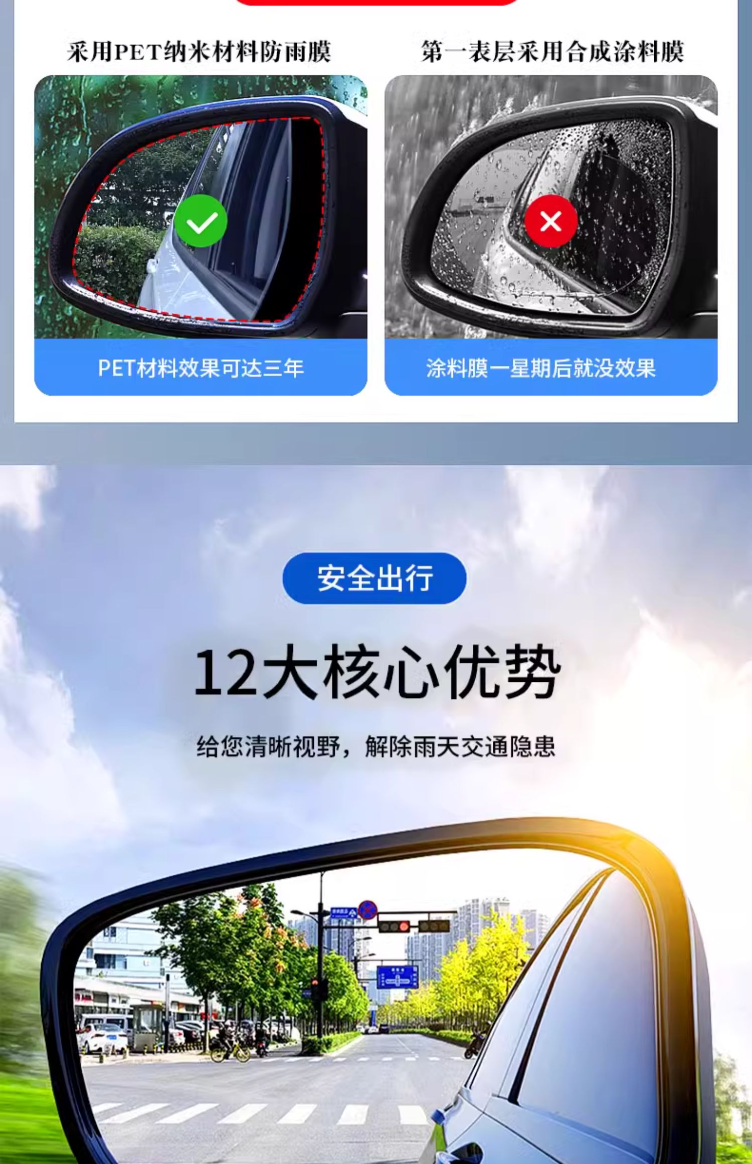 백미러 방비 필름 필름 반전 거울 반사 자동차 유물 방수 방수 유리 안개 방지 비오는 날스토어 가기
