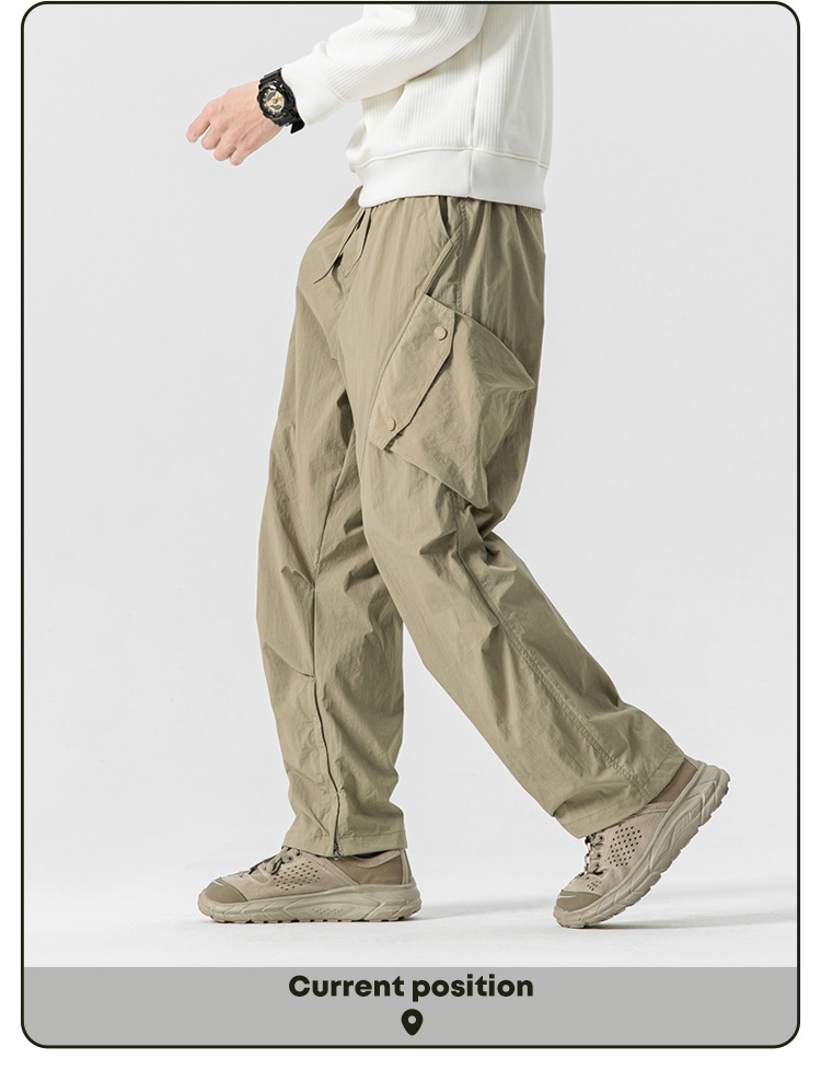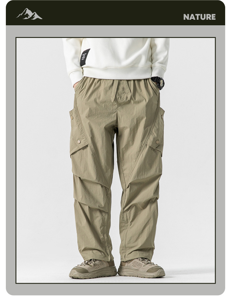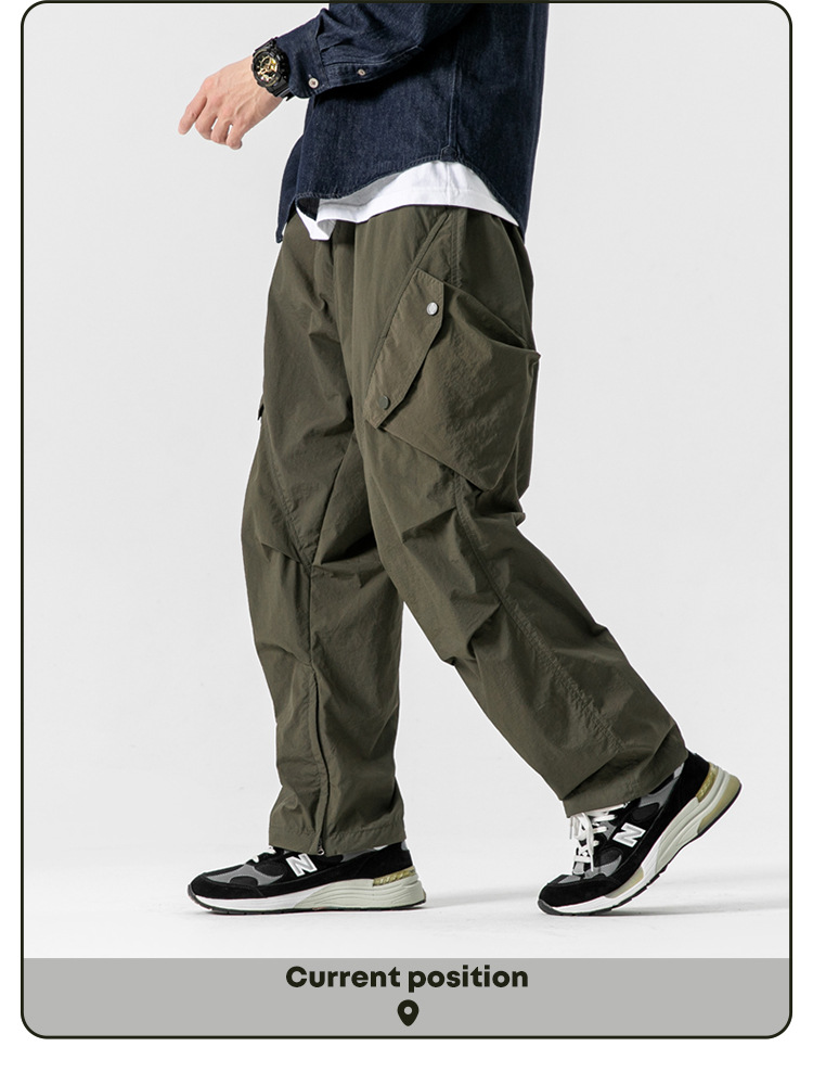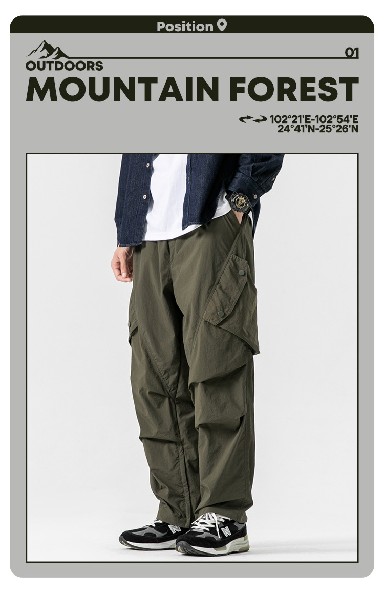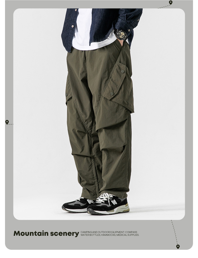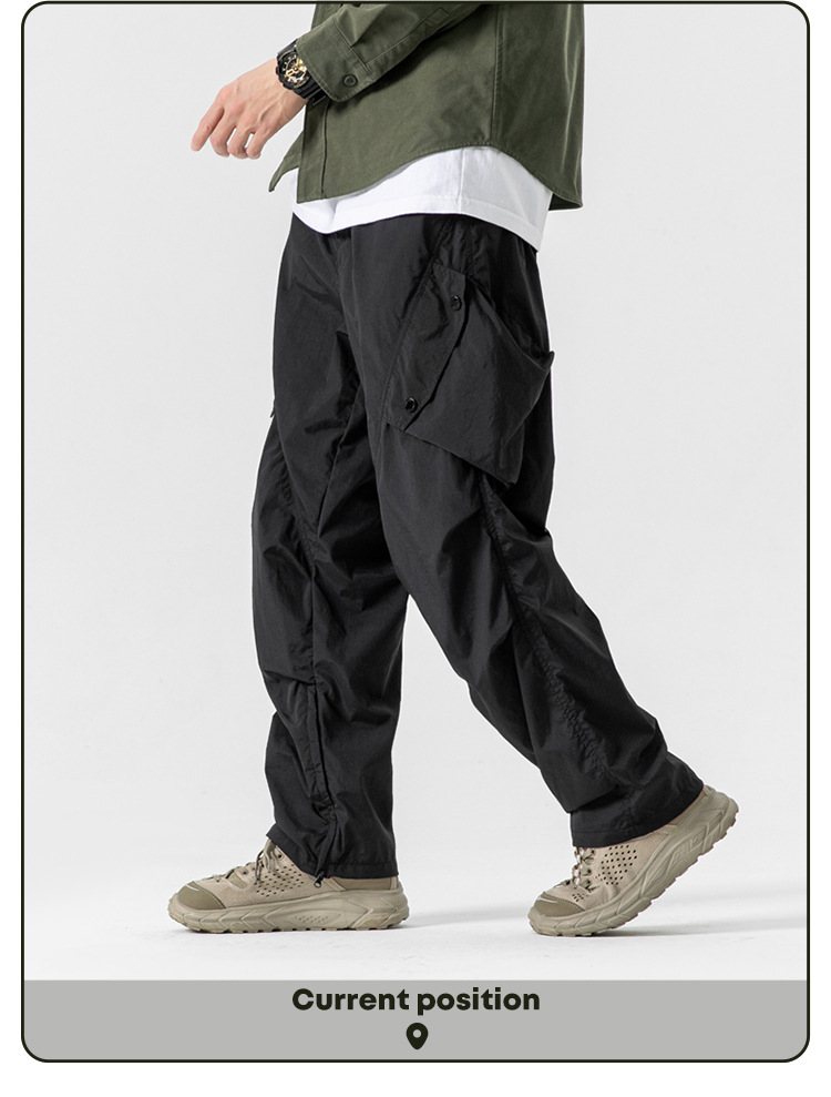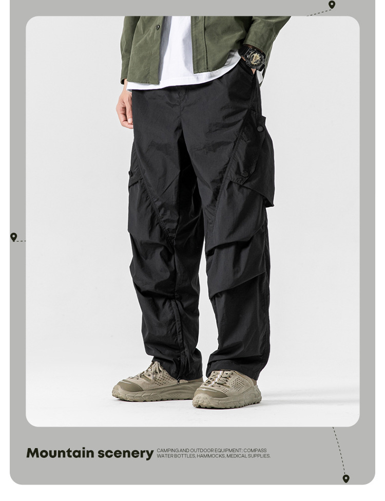 Ru Meng 남성용 주름 낙하산 바지 봄과 가을 느슨한 캐주얼 바지 야외 스포츠 등산 툴링 남성복
