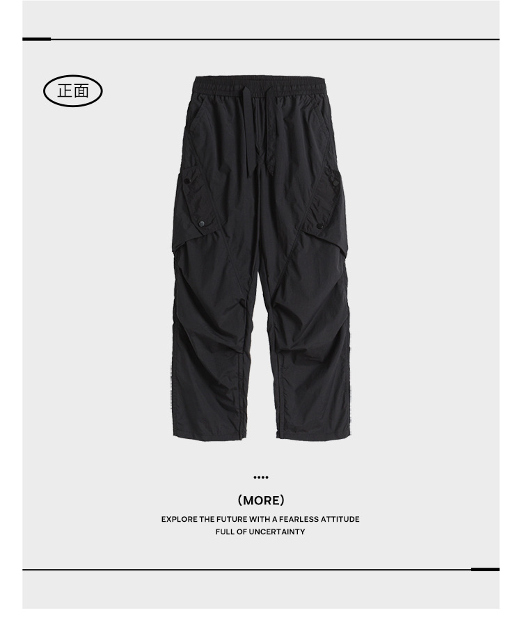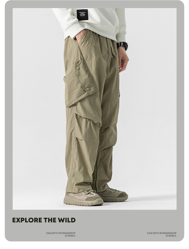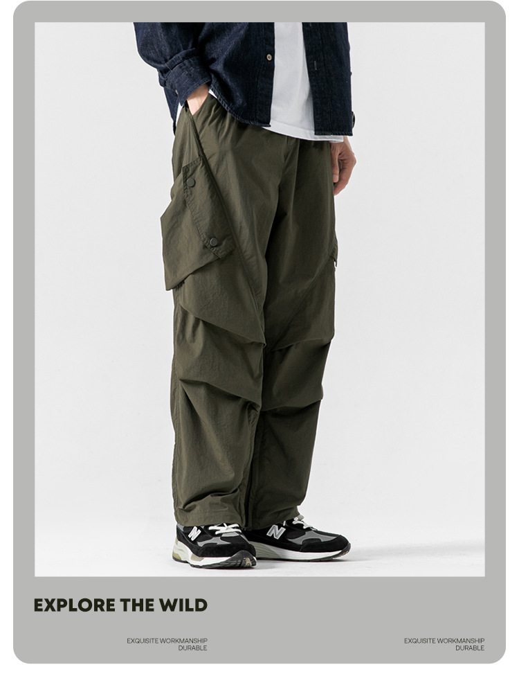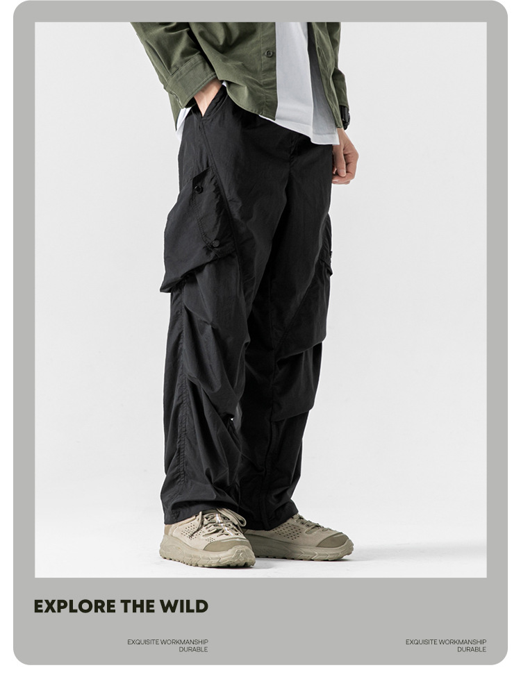Ru Meng 남성용 주름 낙하산 바지 봄과 가을 느슨한 캐주얼 바지 야외 스포츠 등산 툴링 남성복스토어 가기