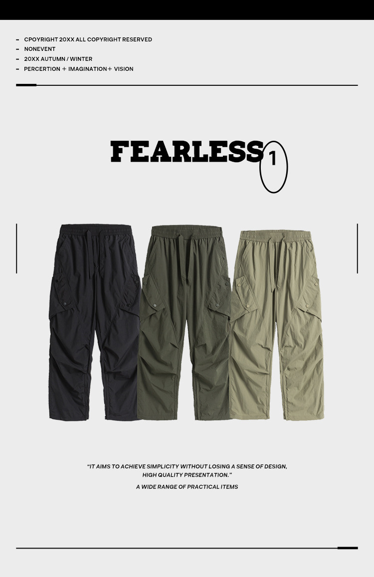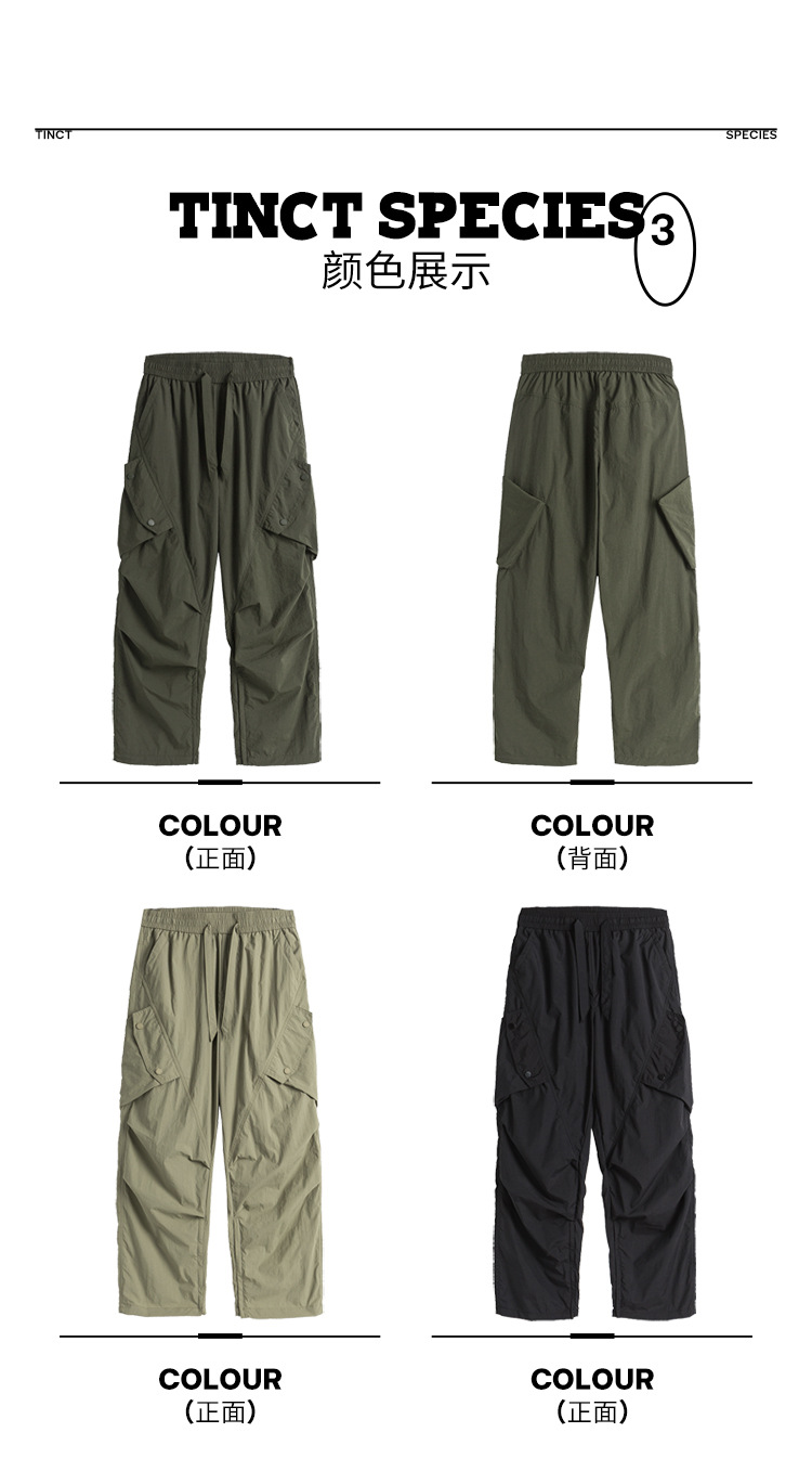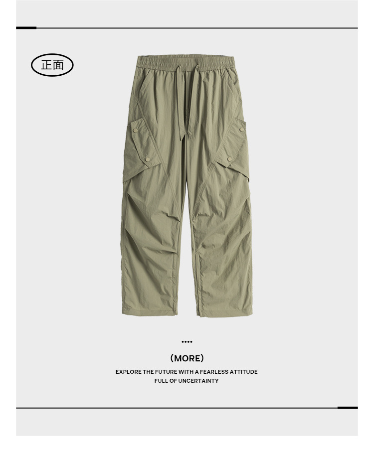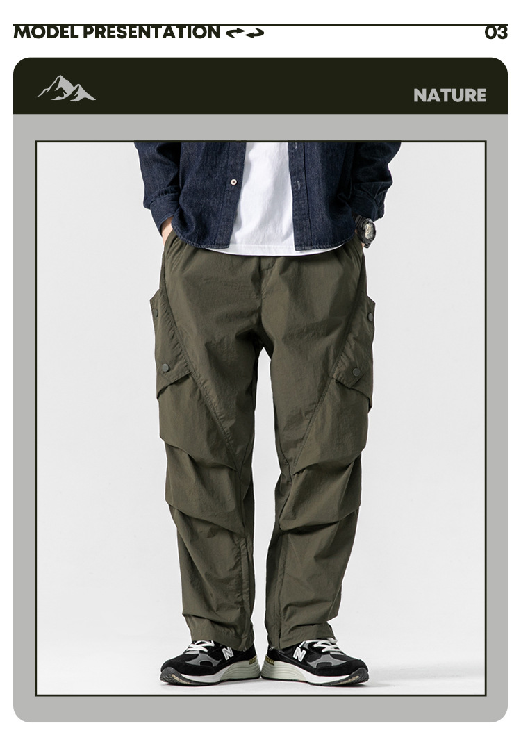 Ru Meng 남성용 주름 낙하산 바지 봄과 가을 느슨한 캐주얼 바지 야외 스포츠 등산 툴링 남성복스토어 가기