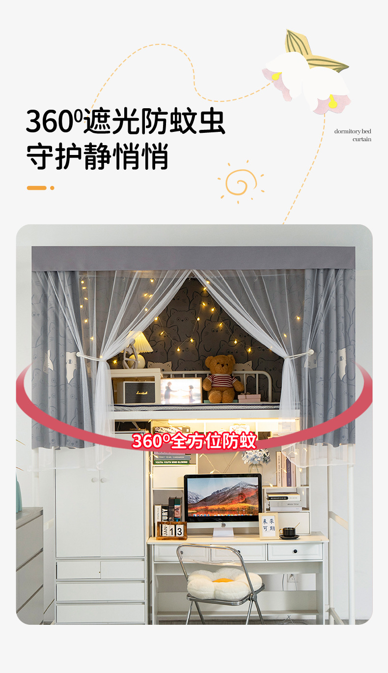 침대 커튼 강한 음영 두꺼운 학생 기숙사 상부 침대 여성용 기숙사 커튼 방진 단열 간단한 음영 커튼스토어 가기