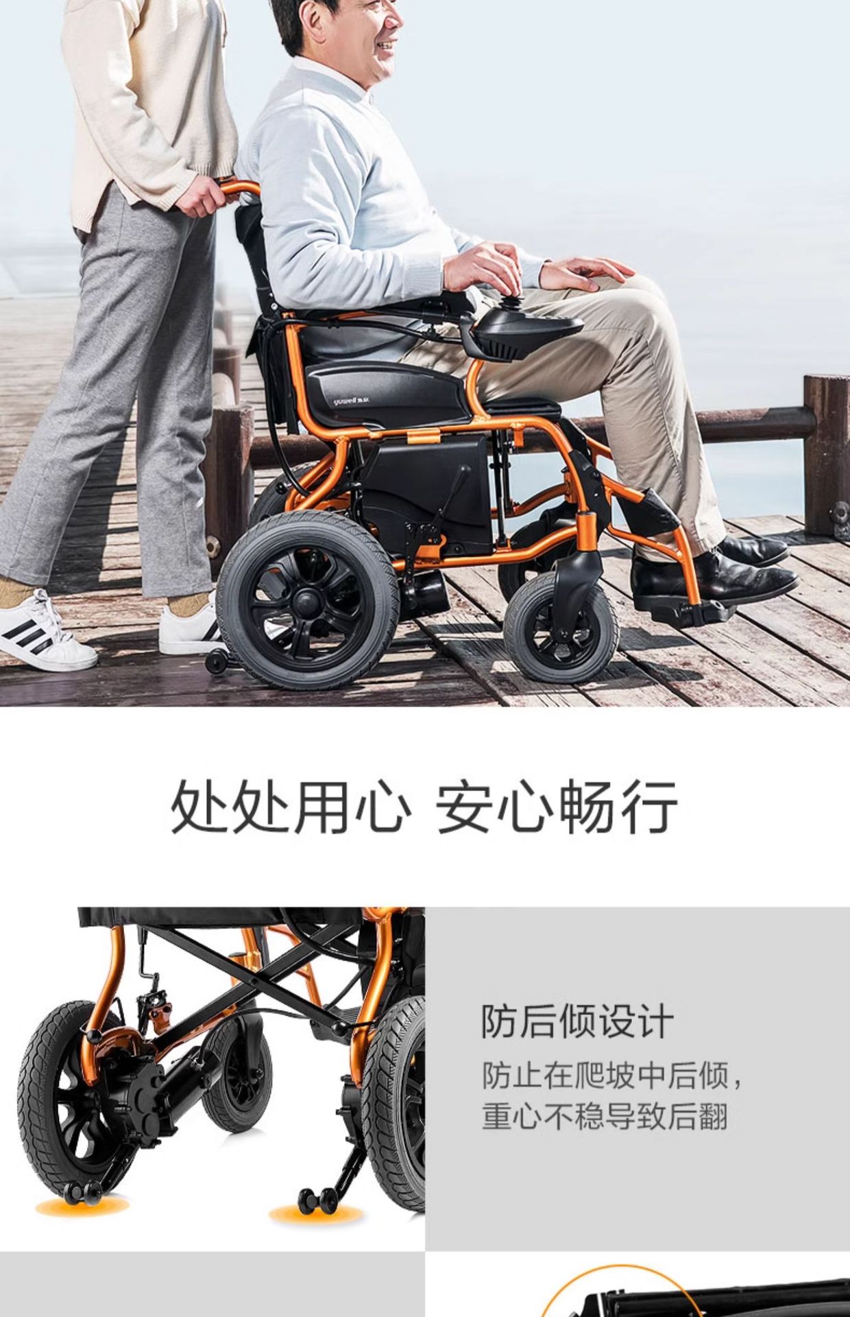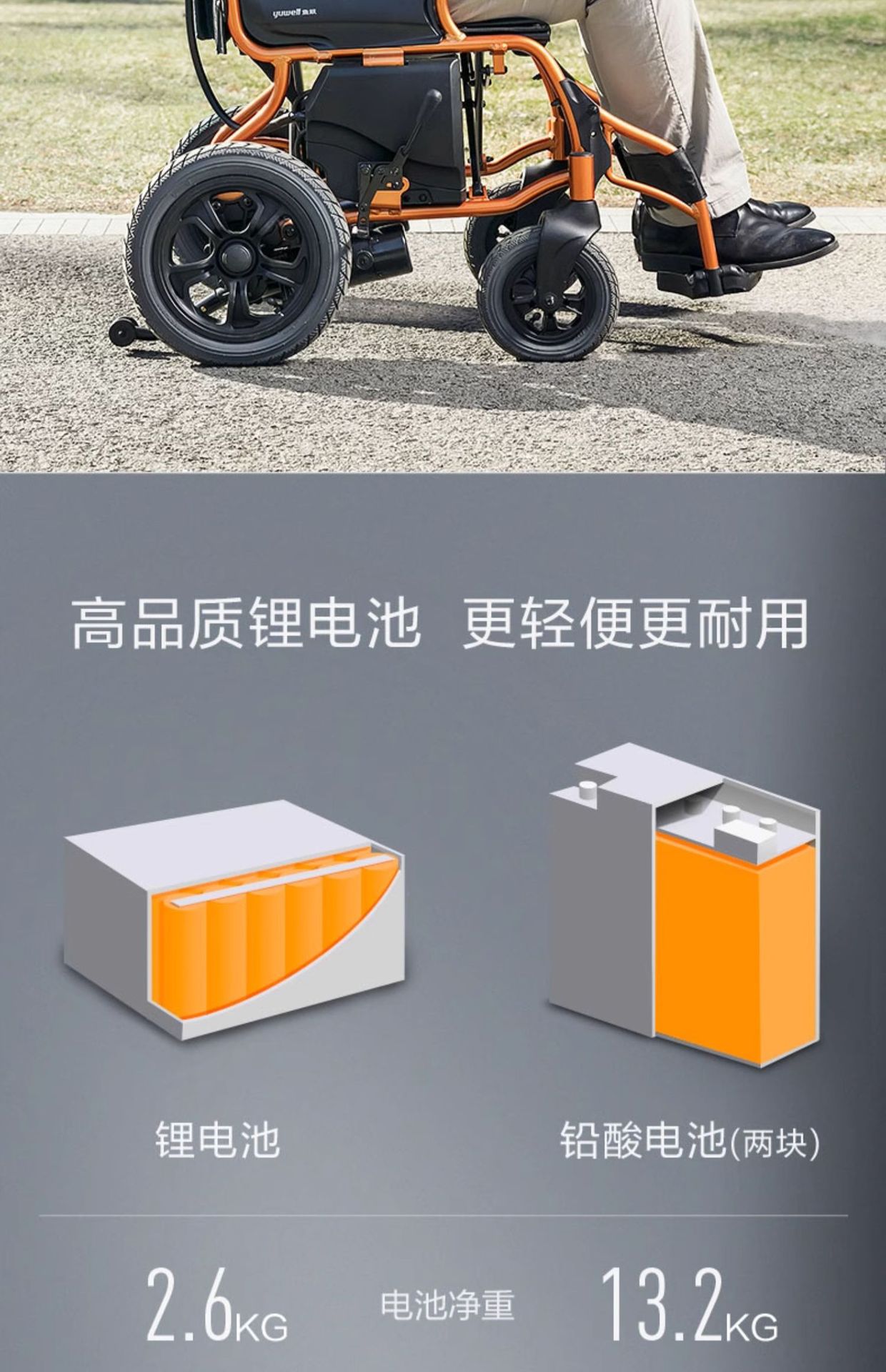 Yuyue 전기 휠체어 접힌 알루미늄 합금 빛 노인 장애인 지능형 전기 자동 D130HL스토어 가기