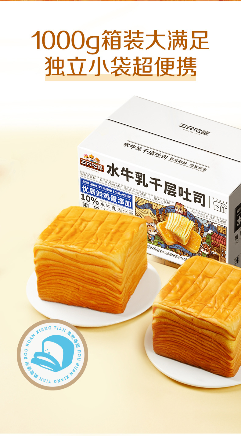 【19.9 20개입】다람쥐3마리_ 1.0kg 버팔로밀크 밀유 토스트 아침식사 밀키빵