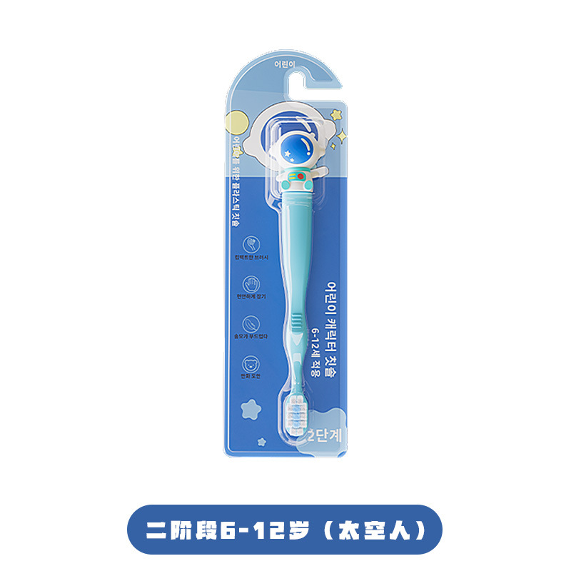 • [2단계 6~12세] 큰 어린이를 위한 만화 칫솔 1팩 - 파란색 우주비행사