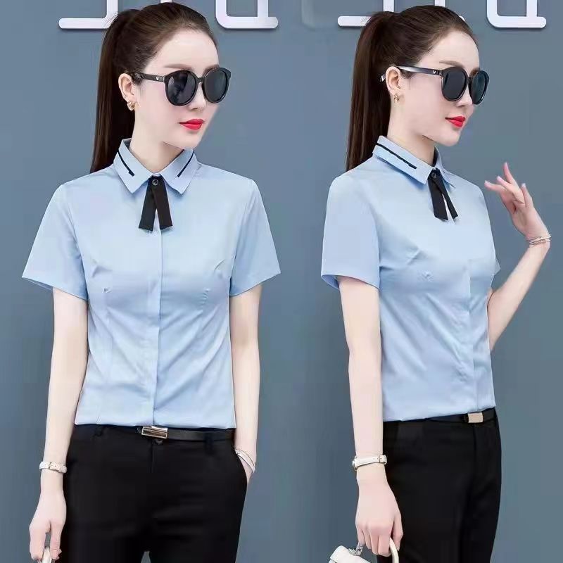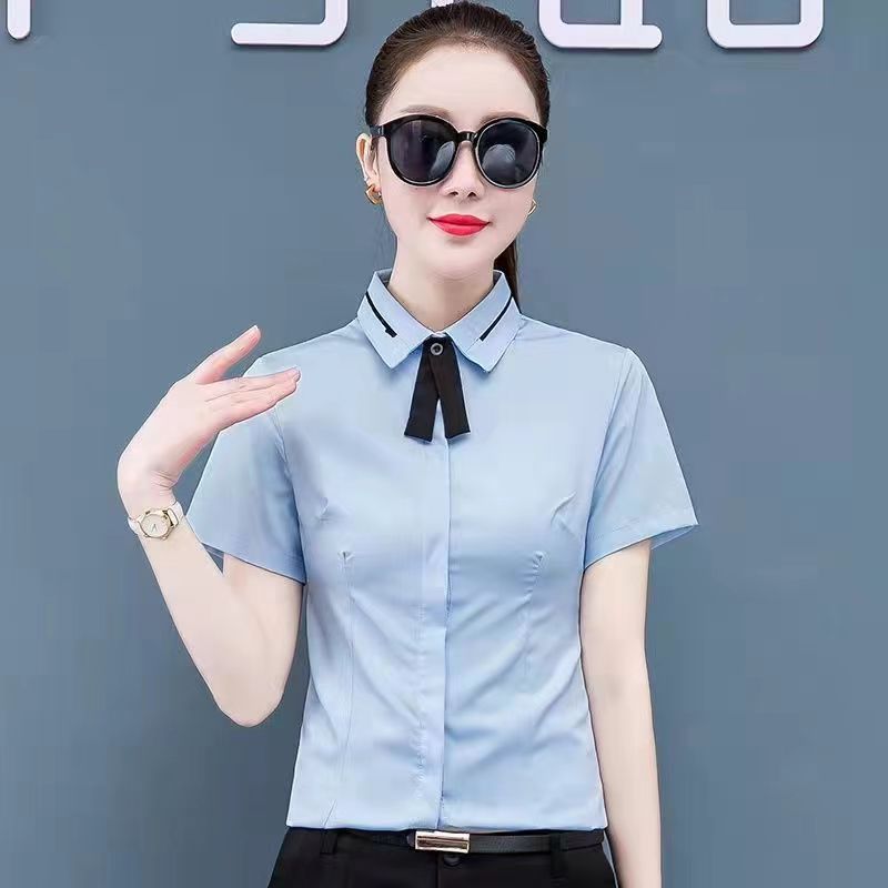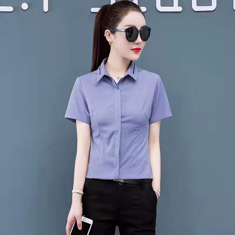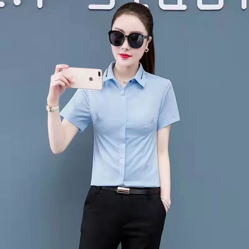 • 855 파란색 반팔 소매 [숨겨진 단추]
