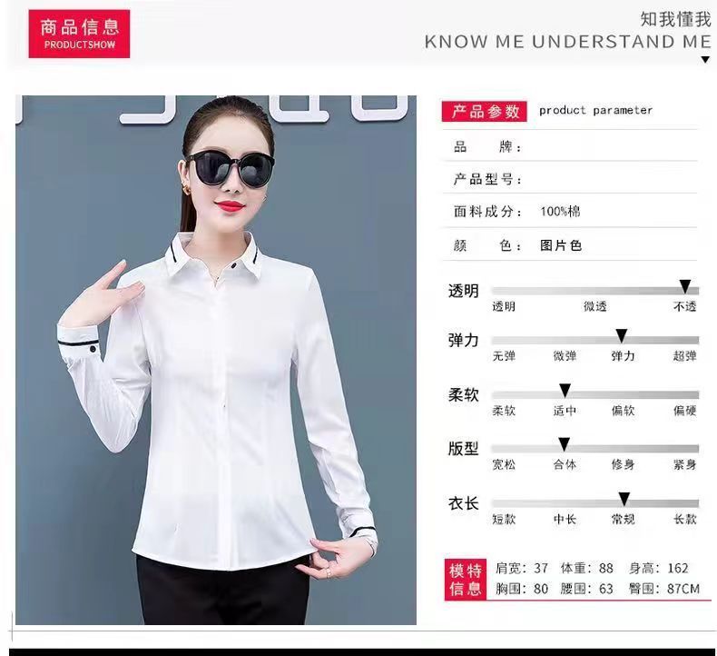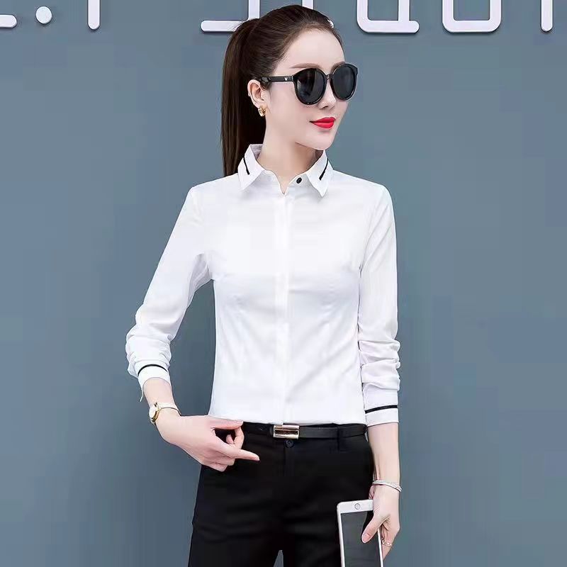 2024 년 새 화이트 셔츠 여성용 긴팔 슬림핏 슬림핏 비즈니스웨어 플러스 사이즈 오버홀 한국식 베이스 라이닝스토어 가기