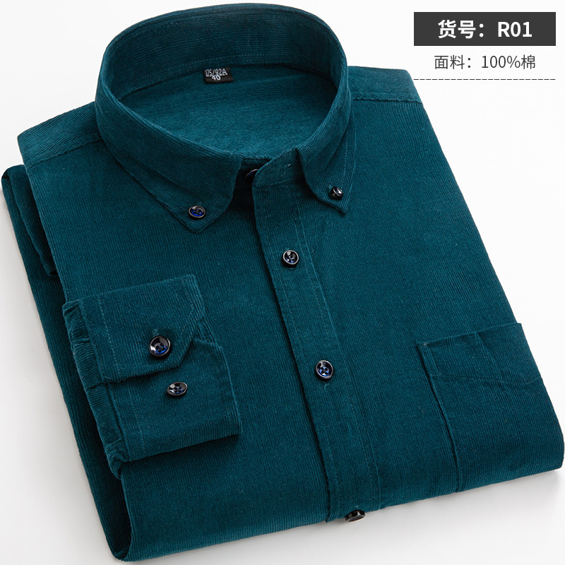 패션 코튼 남자 긴 소매 셔츠 봄과 가을 남자 코튼 코듀로이 단색 셔츠 올 매치 아우터 탑
