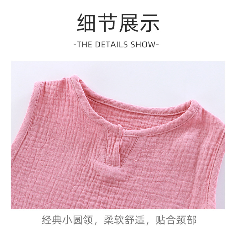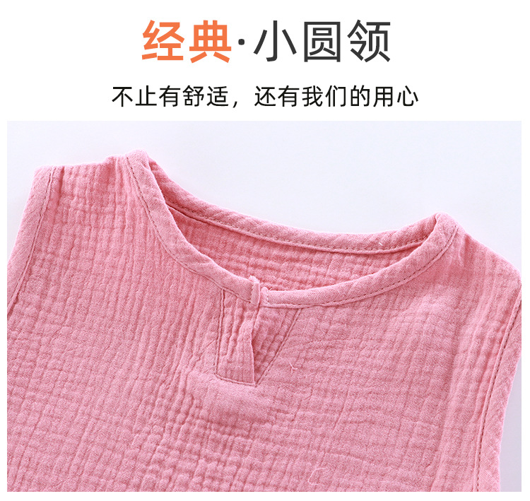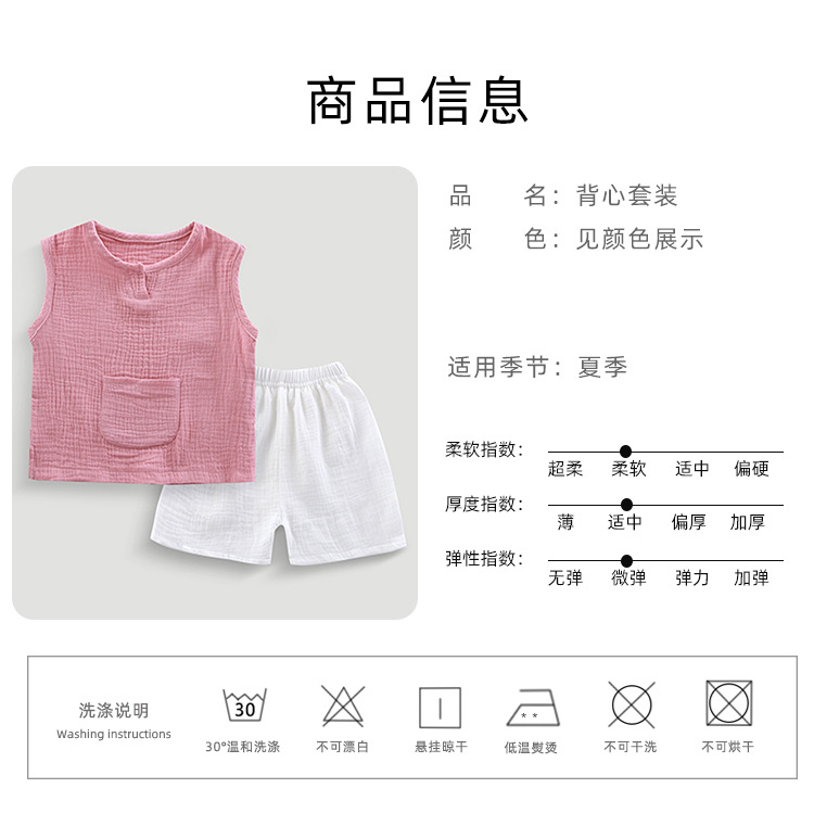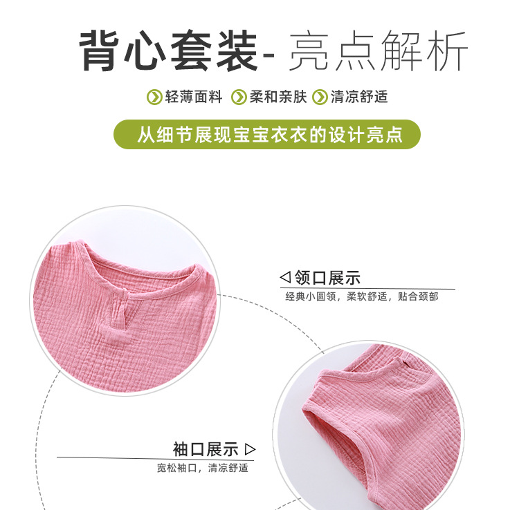 어린이 여름 얇은 세트 단색 더블 레이어 원사 통기성 땀 흡수 배꼽 패드 조끼 홈 의류 2 피스 세트스토어 가기