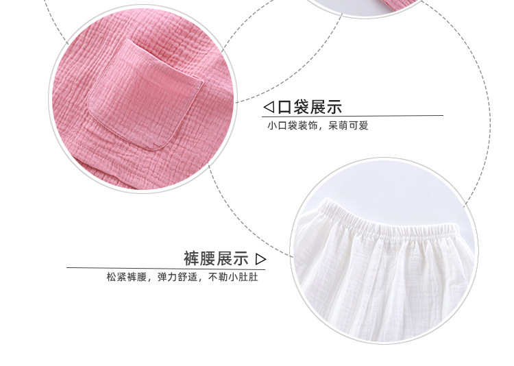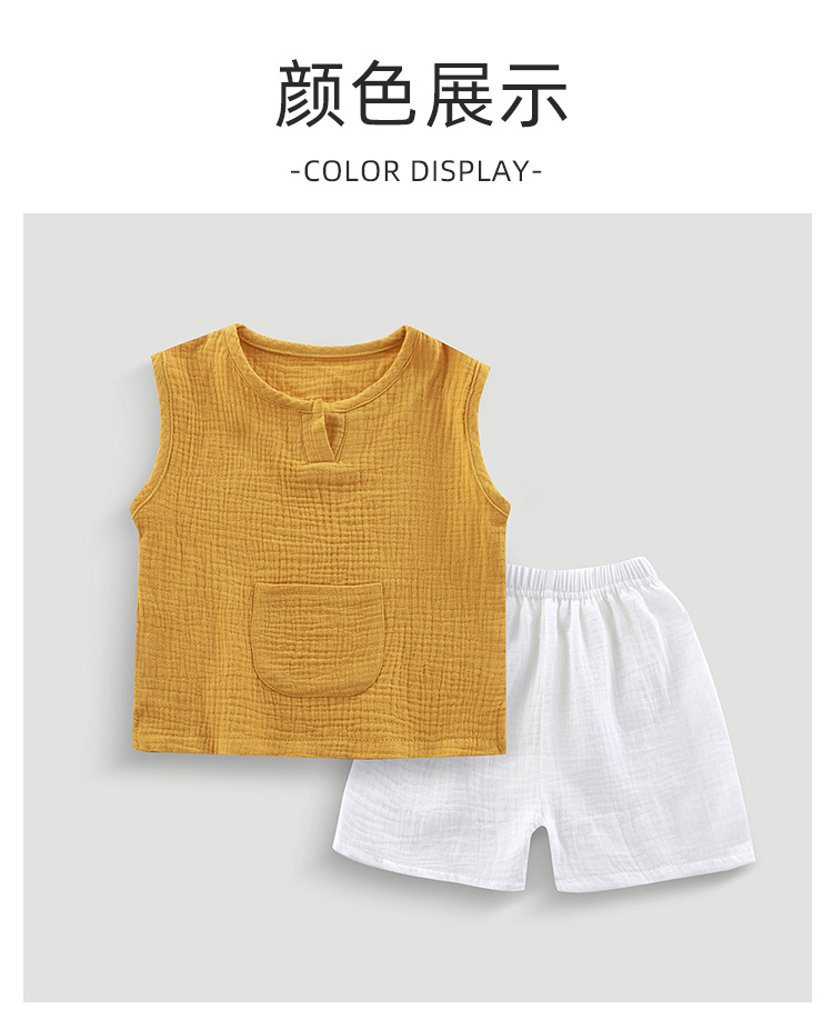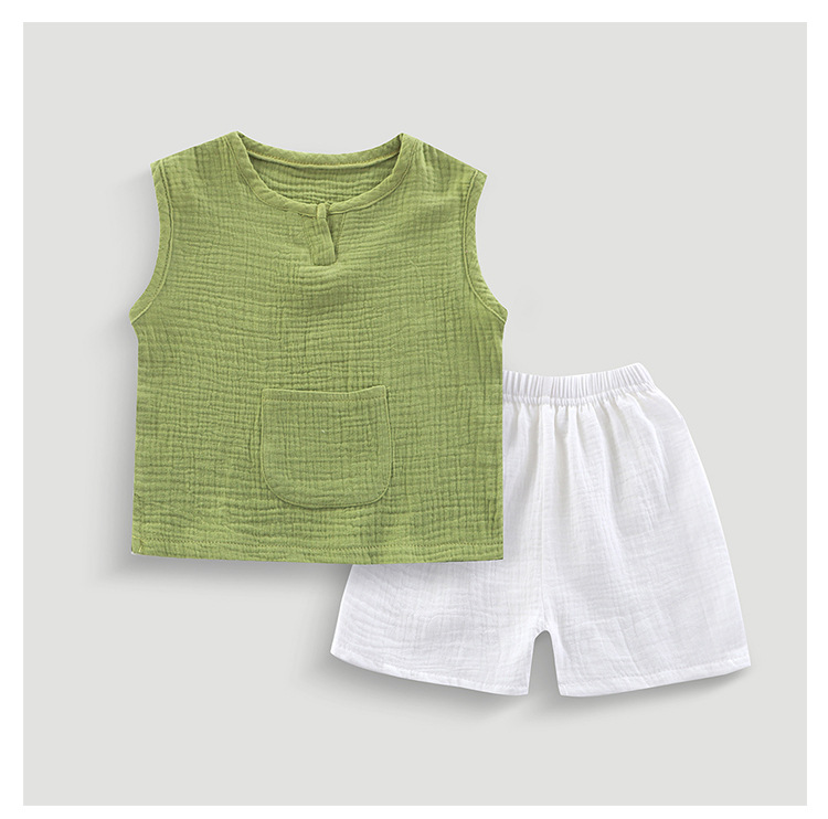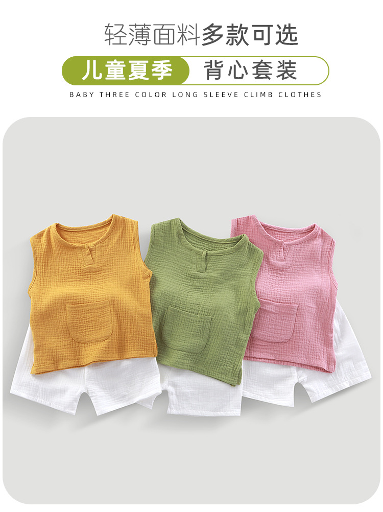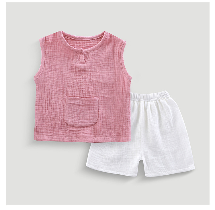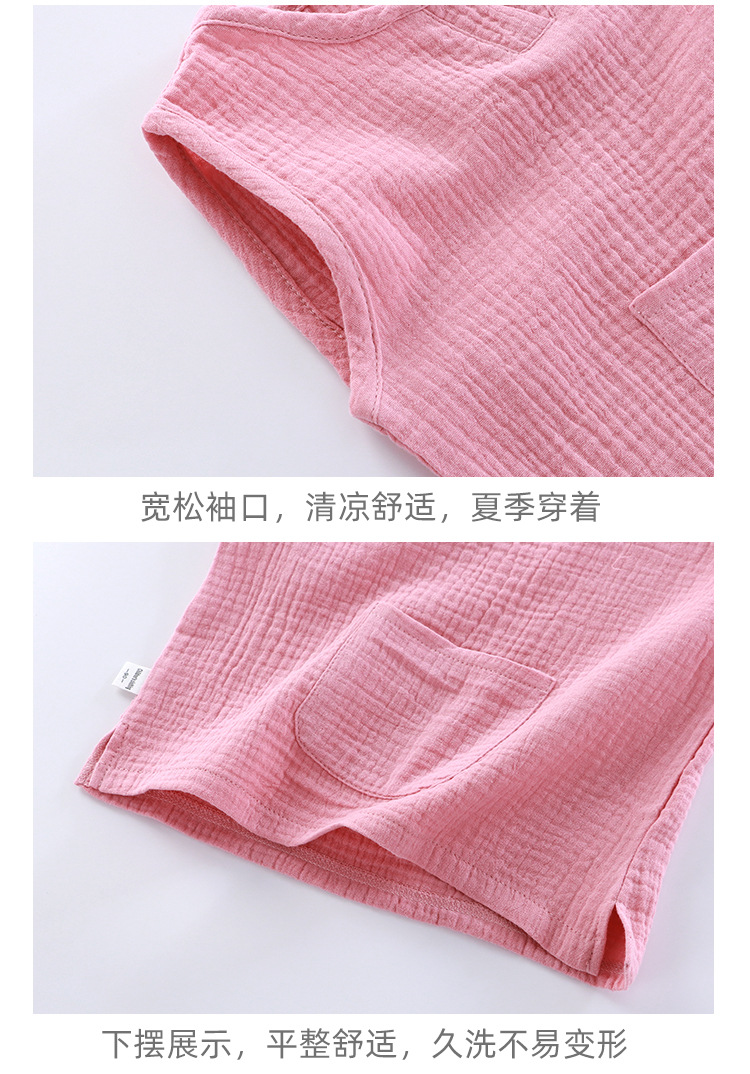 어린이 여름 얇은 세트 단색 더블 레이어 원사 통기성 땀 흡수 배꼽 패드 조끼 홈 의류 2 피스 세트